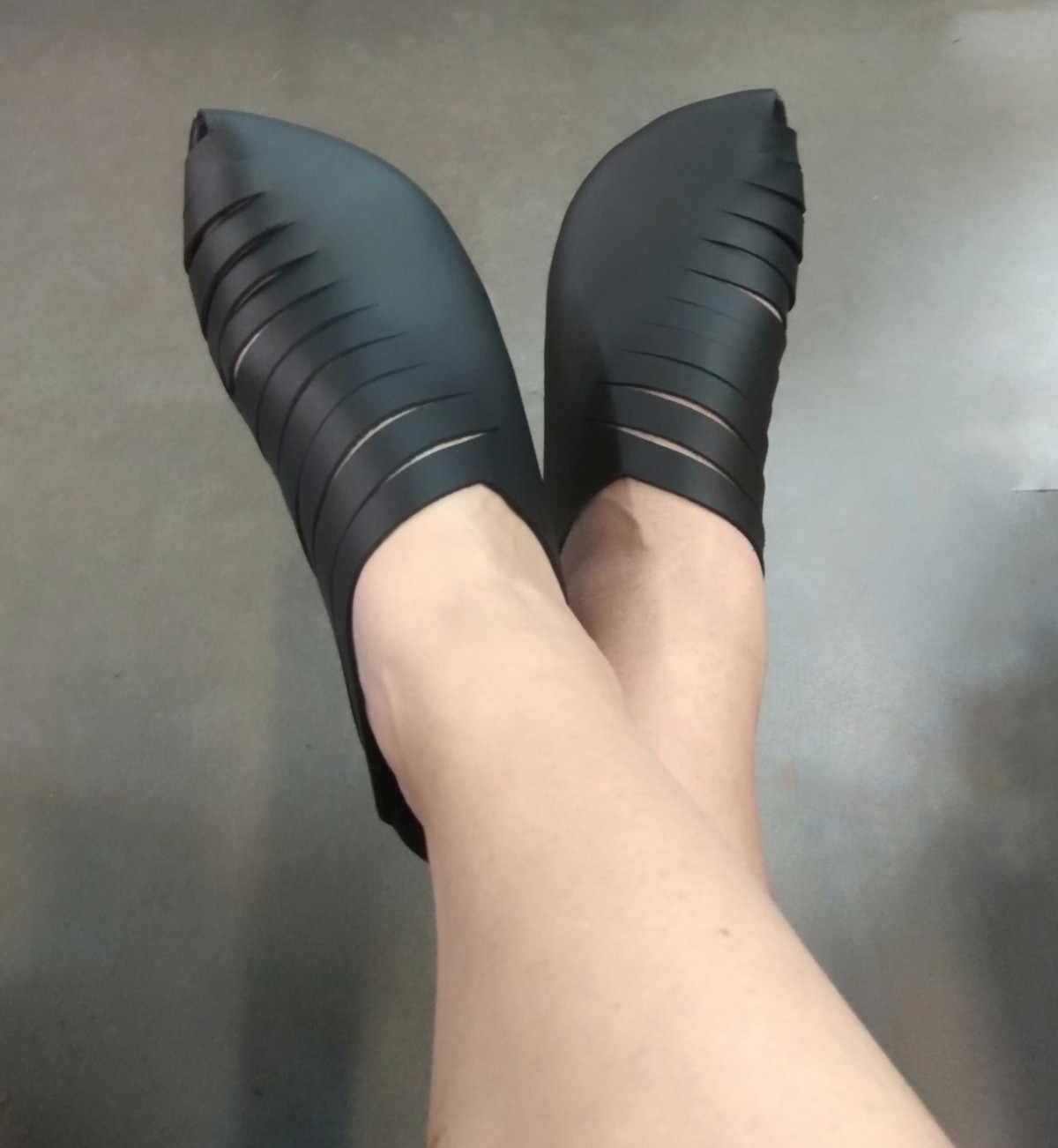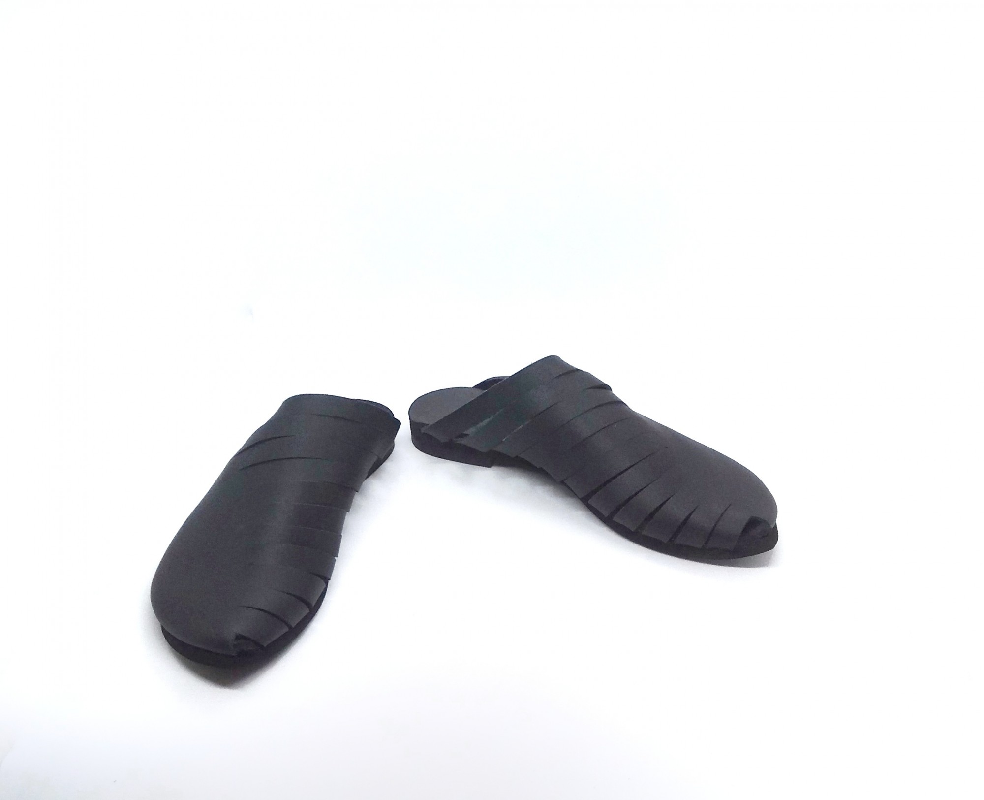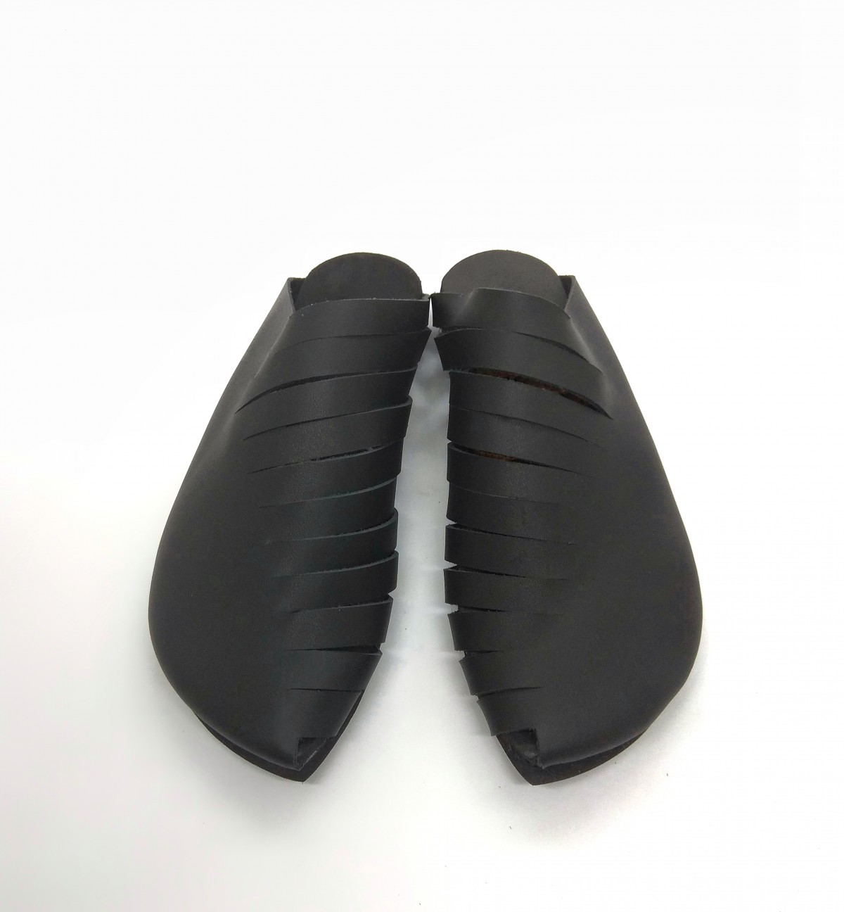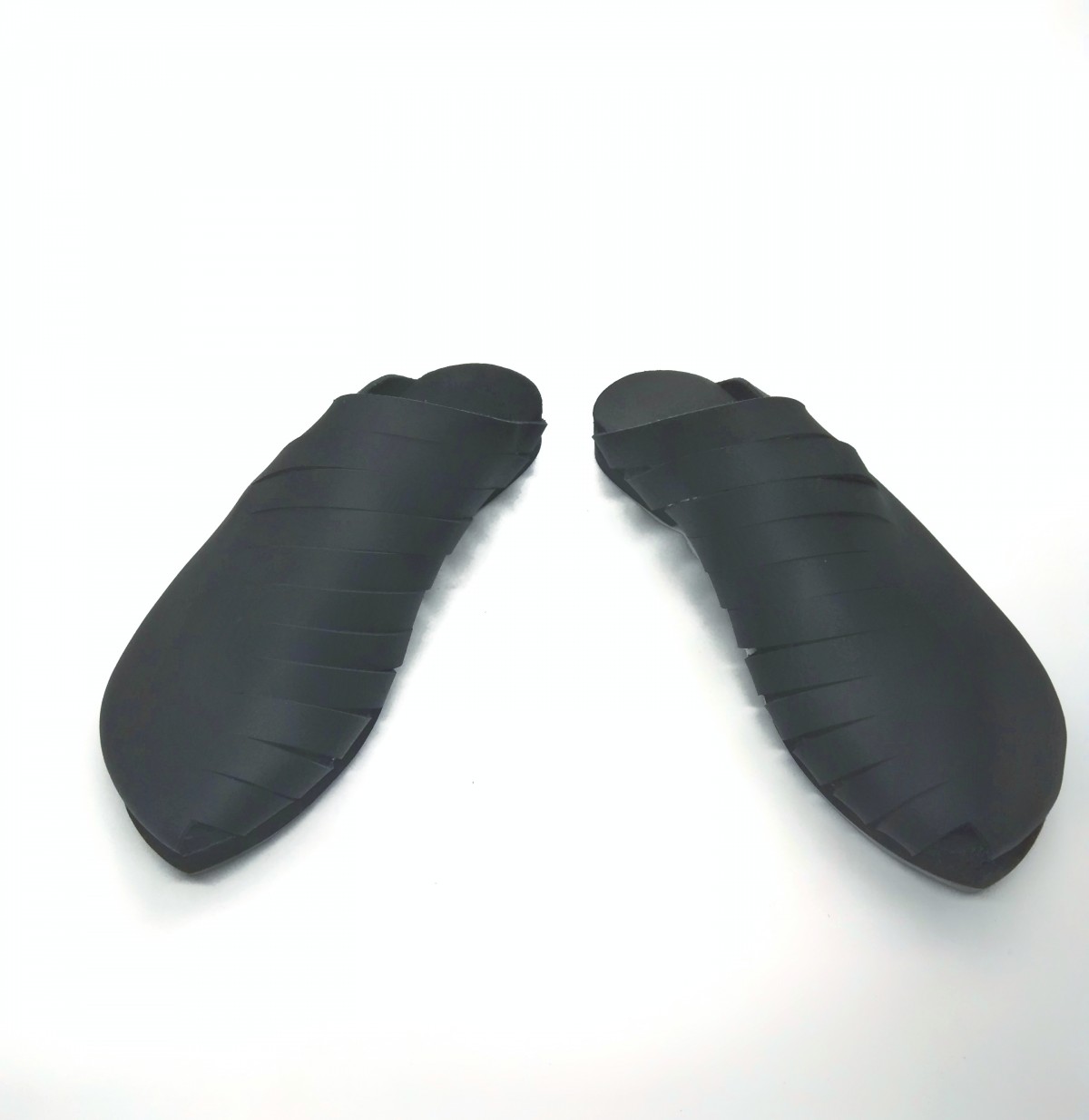 כפכף סגור עם שפיץ מקדימה, מאוורר על ידי חריצים בצד הפנימי. שיקי ואסימטרי. רפידת ספוג גומי.