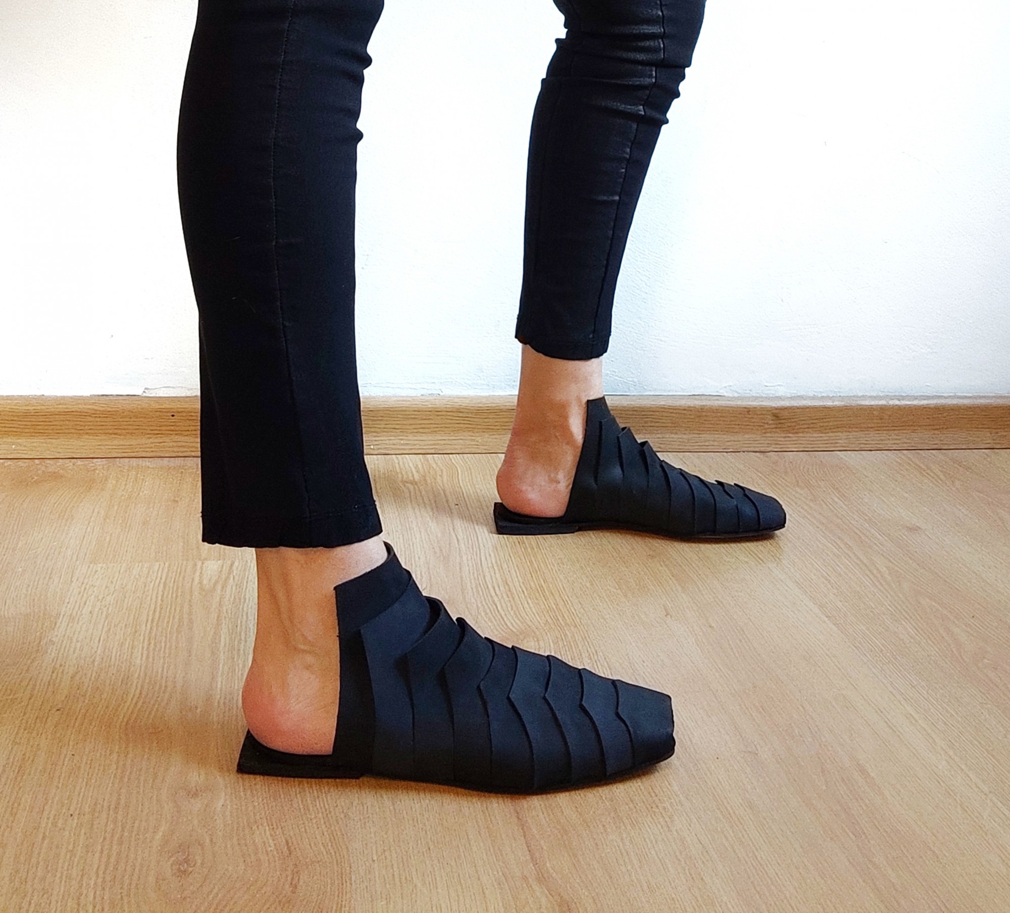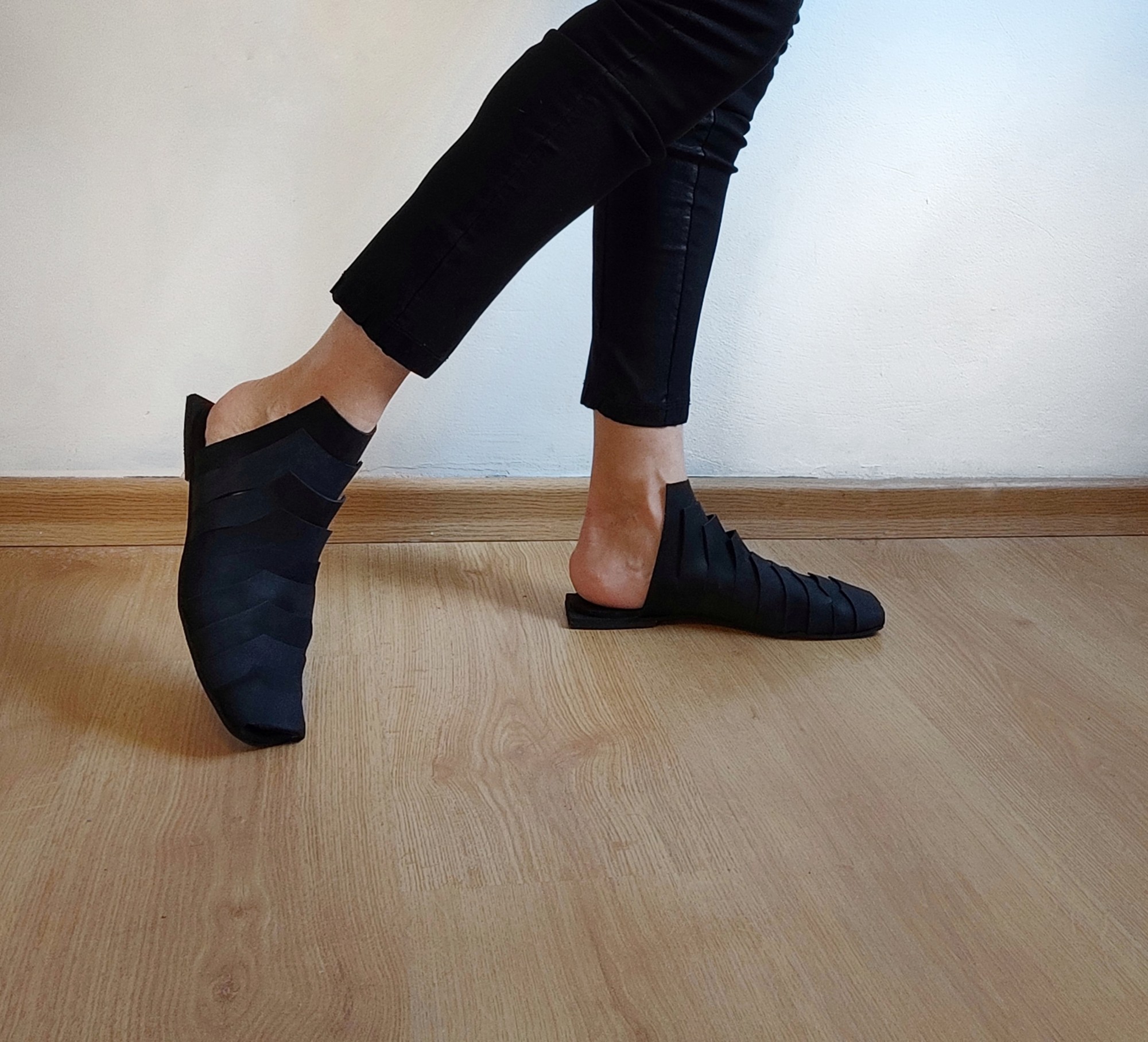 כפכפי מגפון שטוחים, רפידות וסוליות מספוג גומי. לא רואים אצבעות. משלוח תוך שלושה שבועות