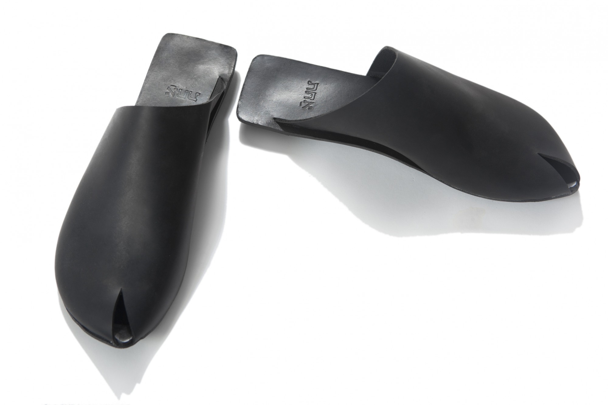 כפכף שטוח על רפידת עור, שפיצי מקדימה, מרובע מאחור, מעור נובוק, עם צוהר קטן בבוהן. משלוח תוך שלושה שבועות