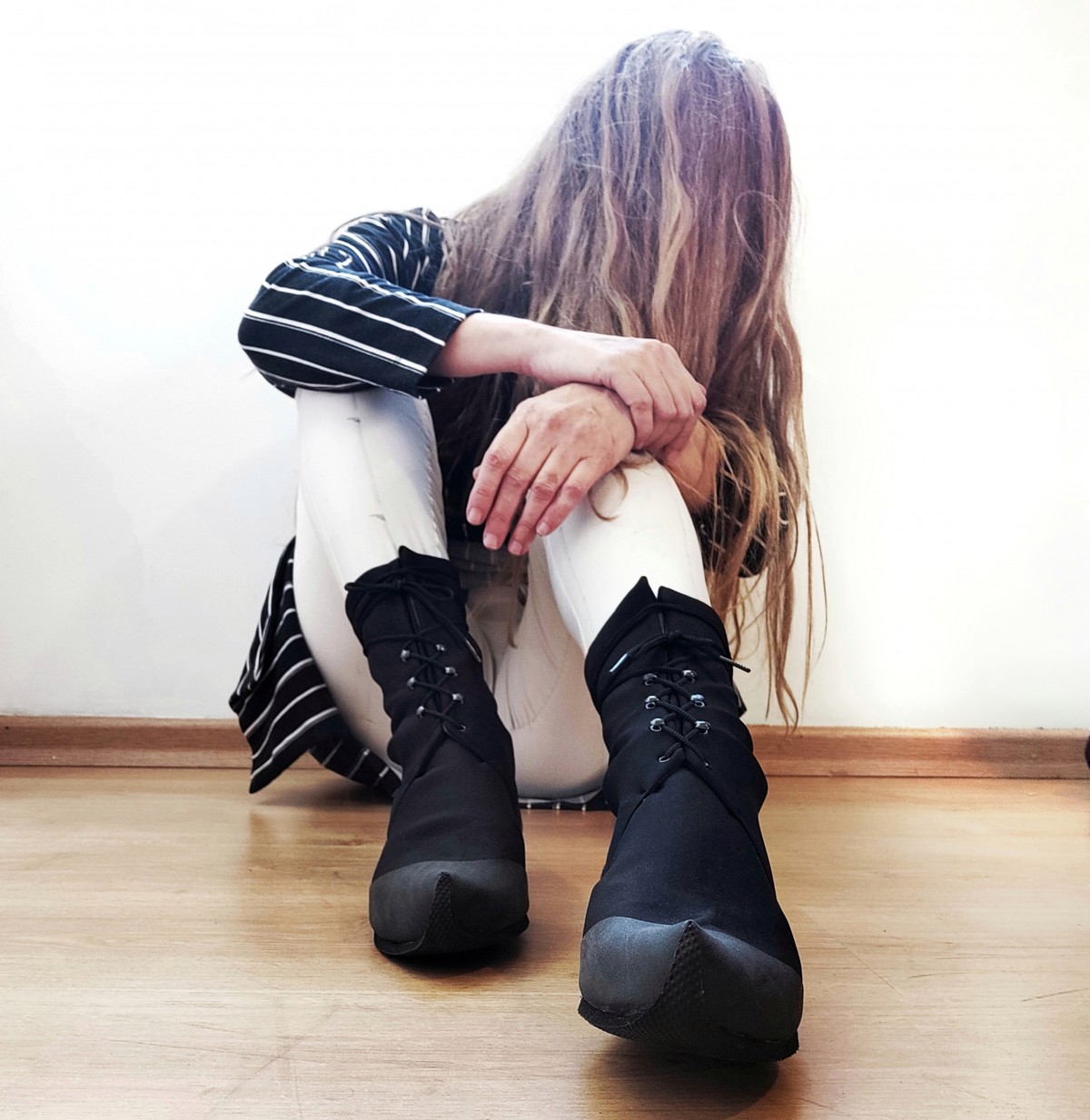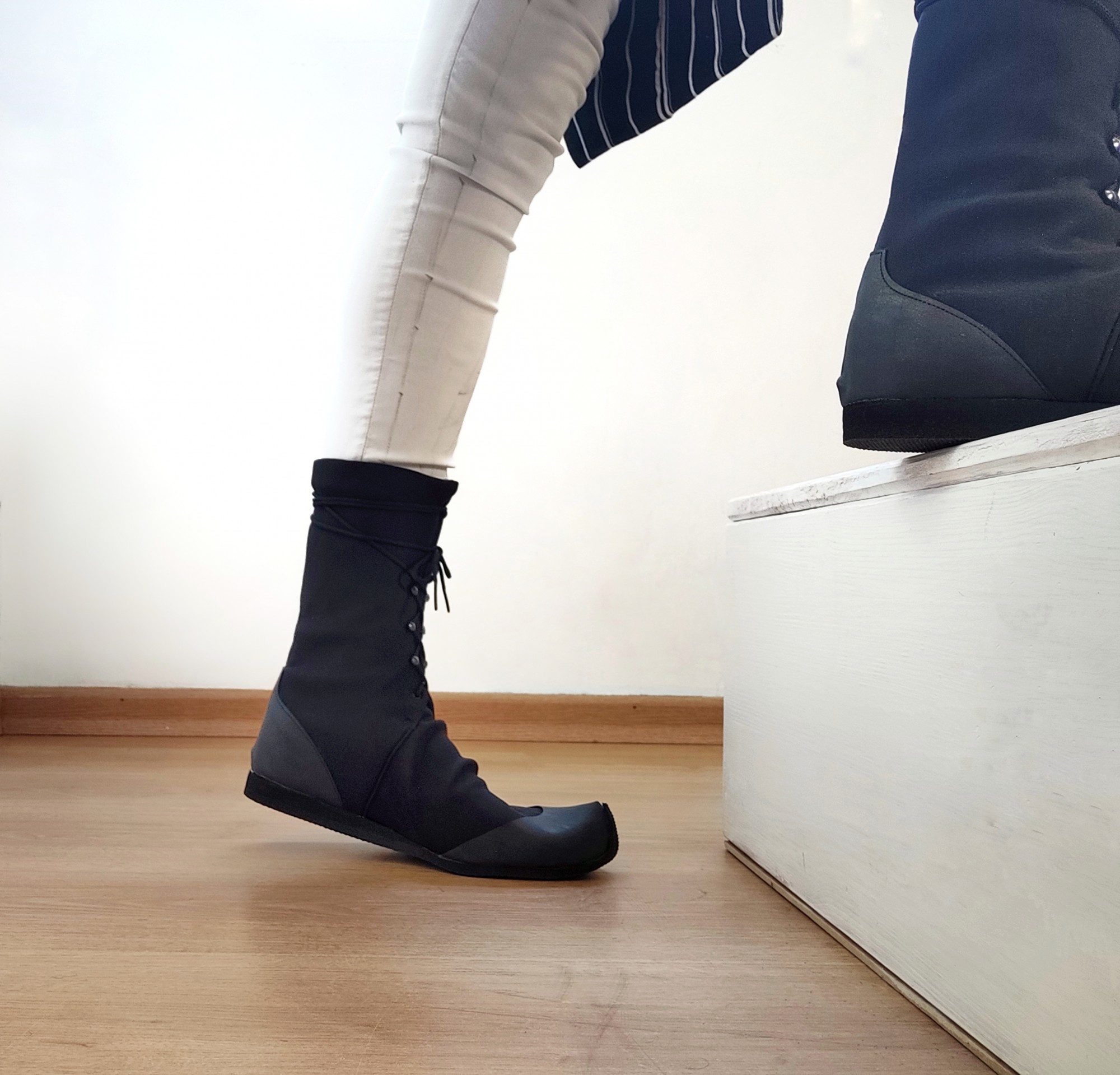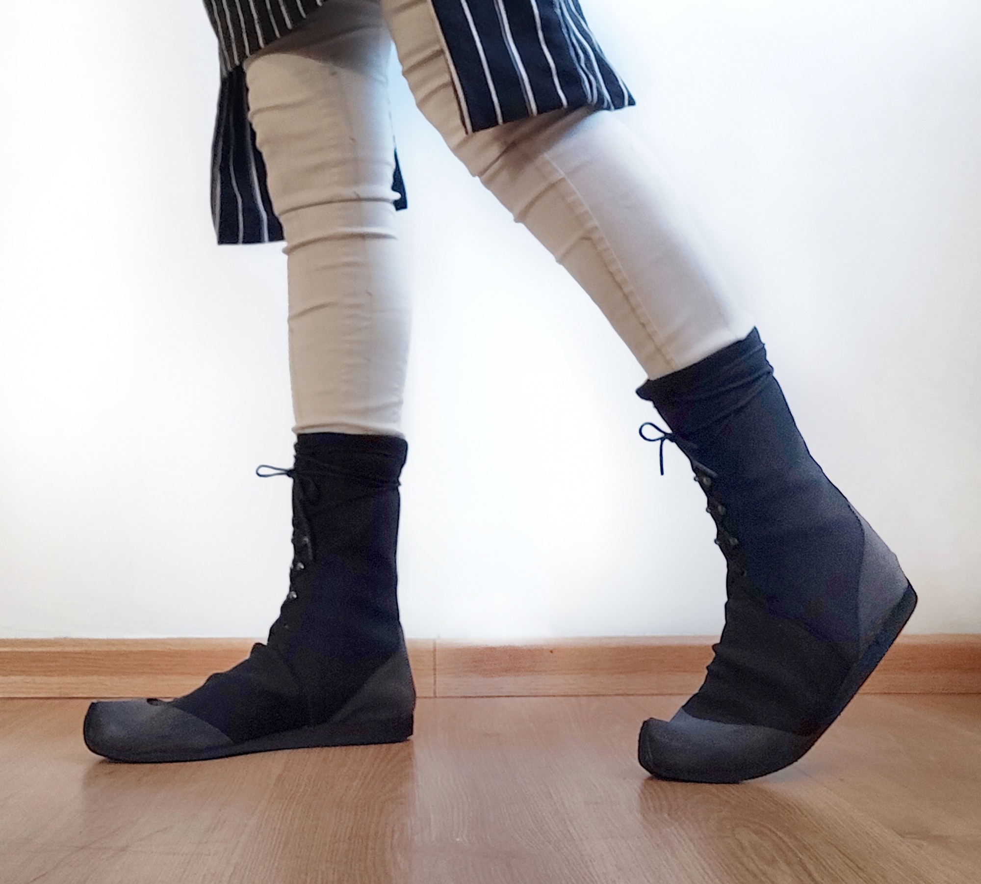 נעל ספורט גבוהה שחורה עם שרוכים - טבעוני