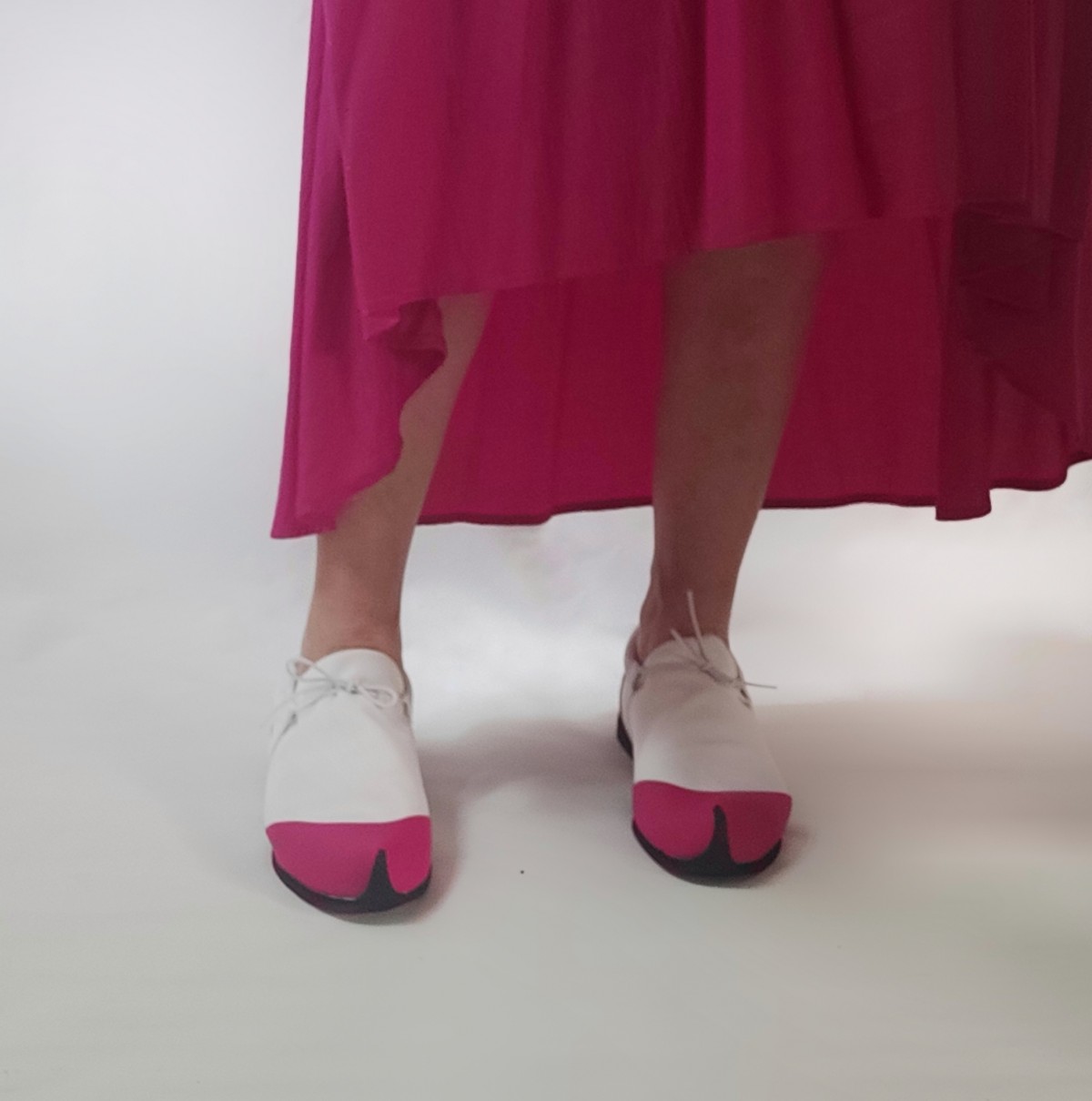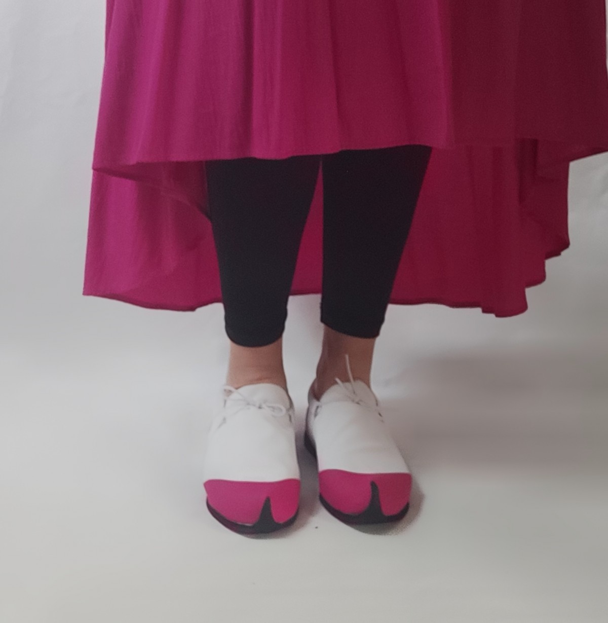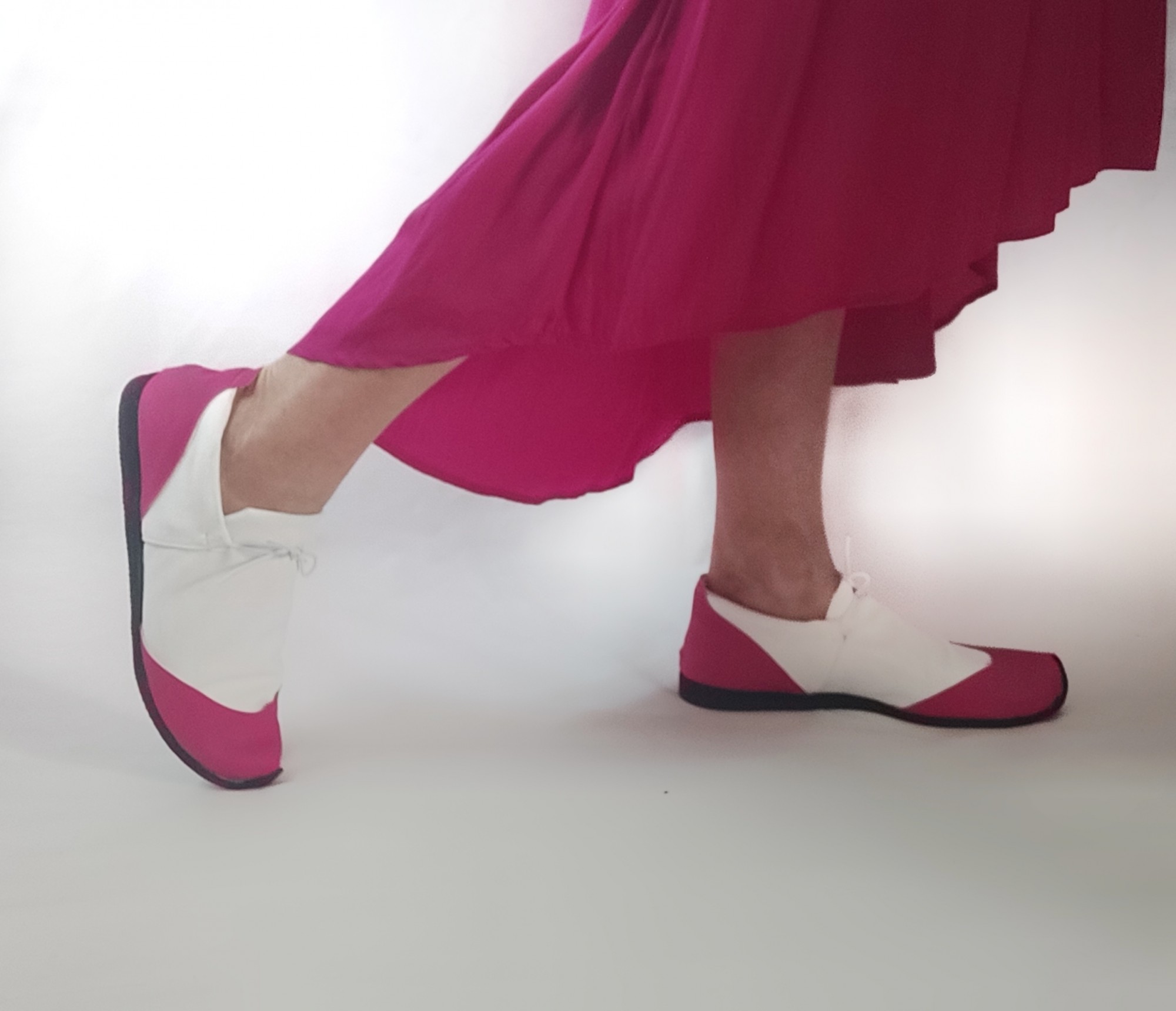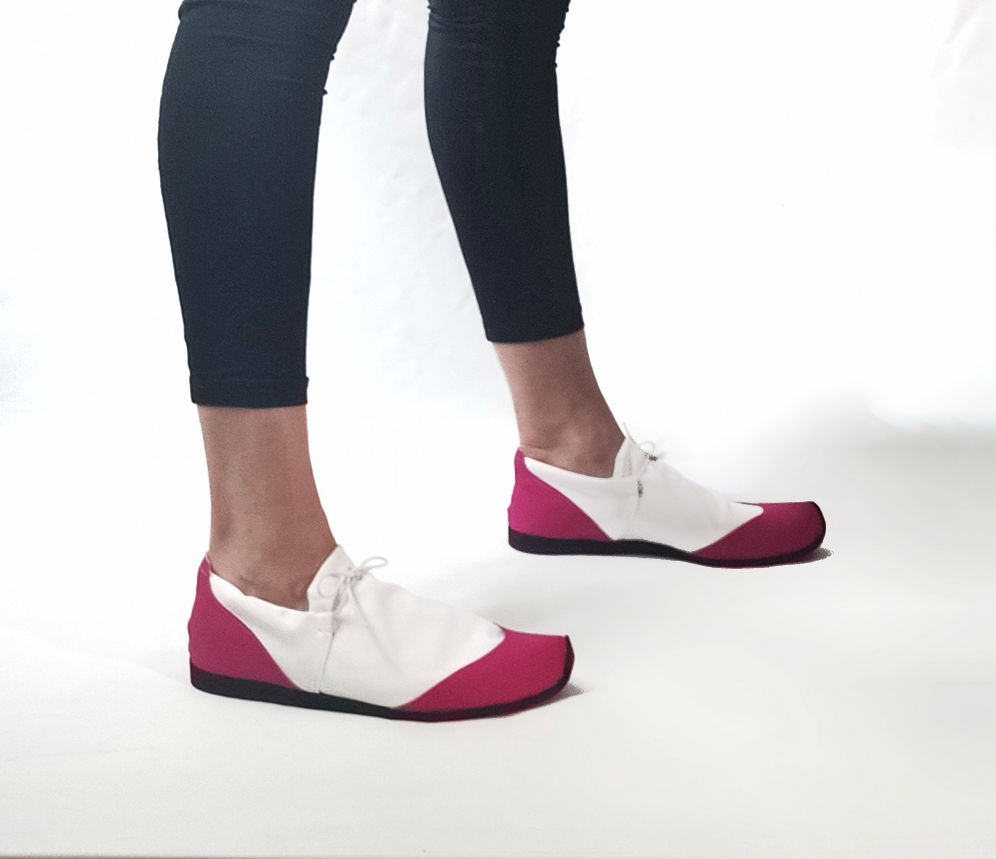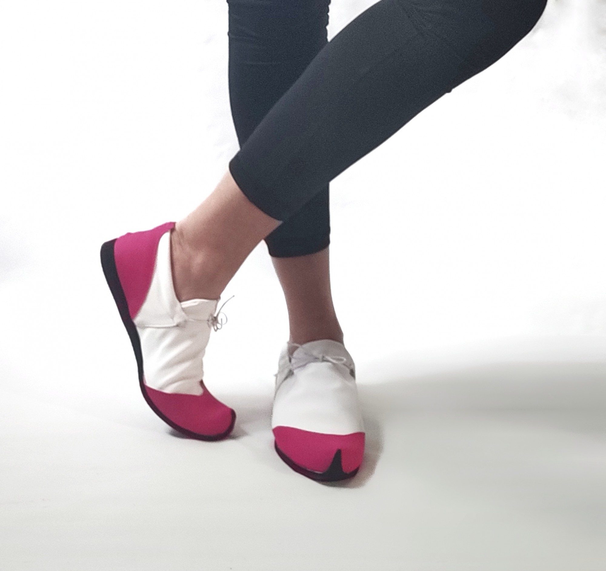 נעל ספורט קלילה וקפיצית, עשויה לייקרה כפולה בשילוב דמוי עור ורוד פוקסיה. שרוך גומי לבן. משלוח תוך שלושה שבועות