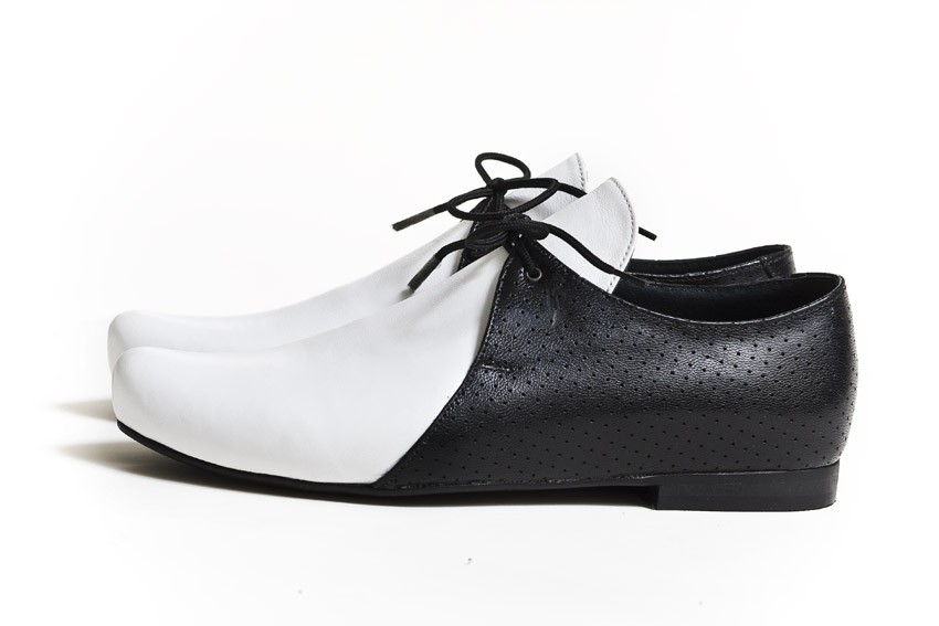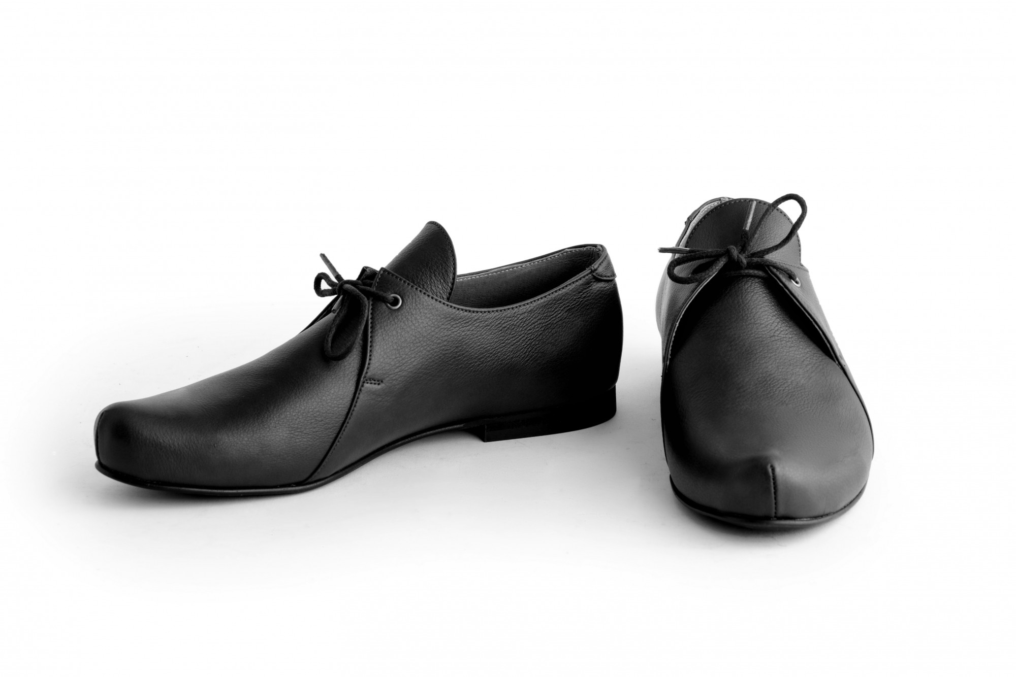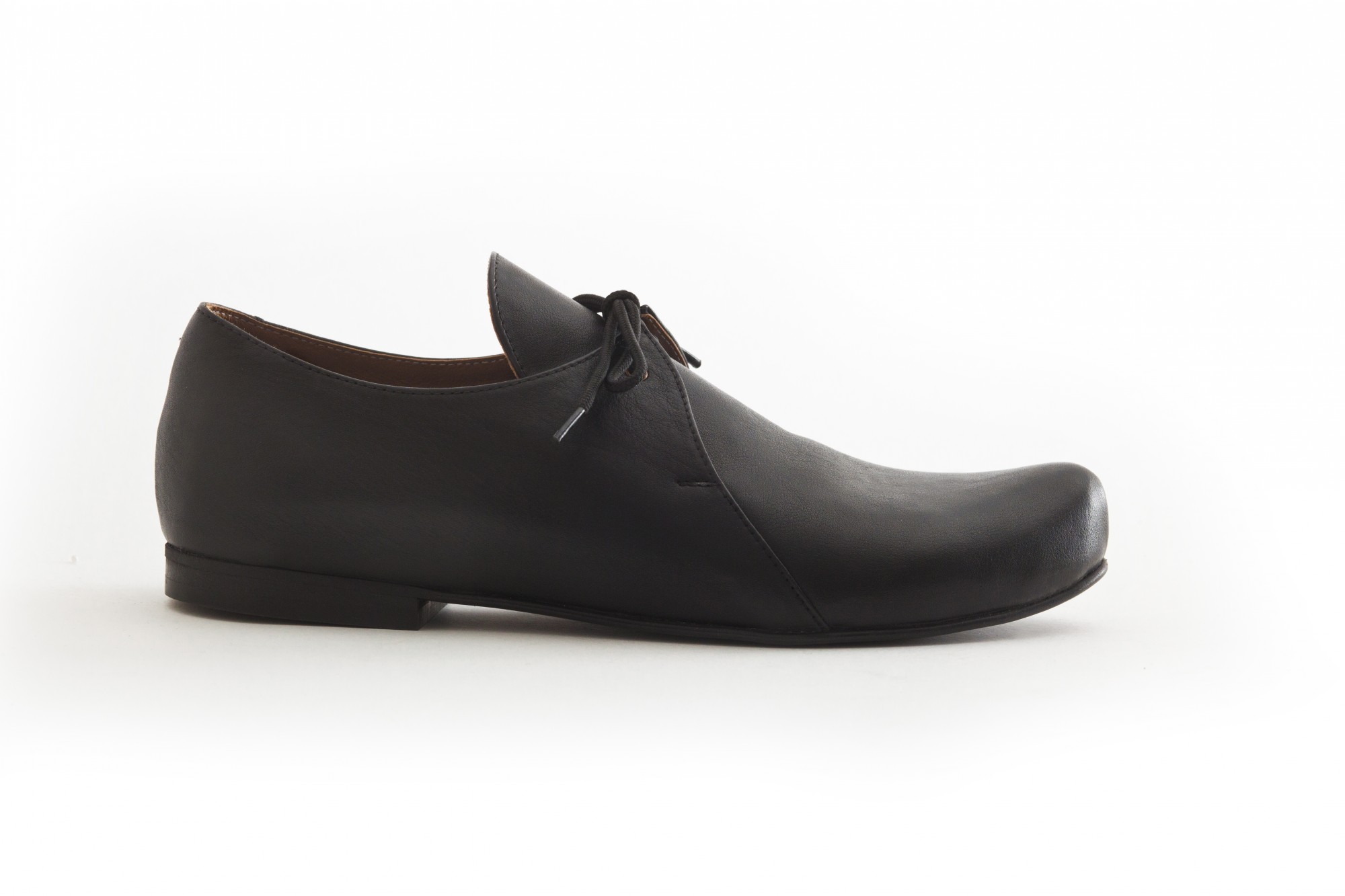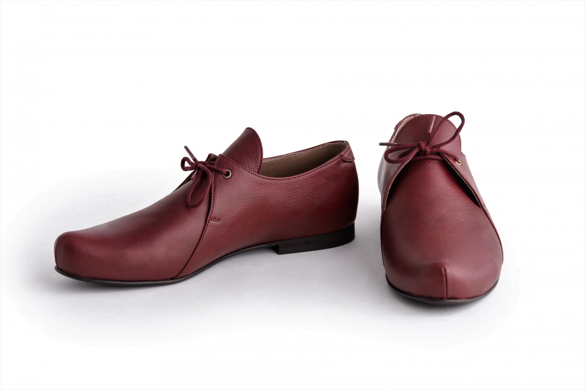 נעל דרבי שטוחה עם שרוך, תפר פנימי קטן מקדימה. עור מט או עם ברק עדין.
