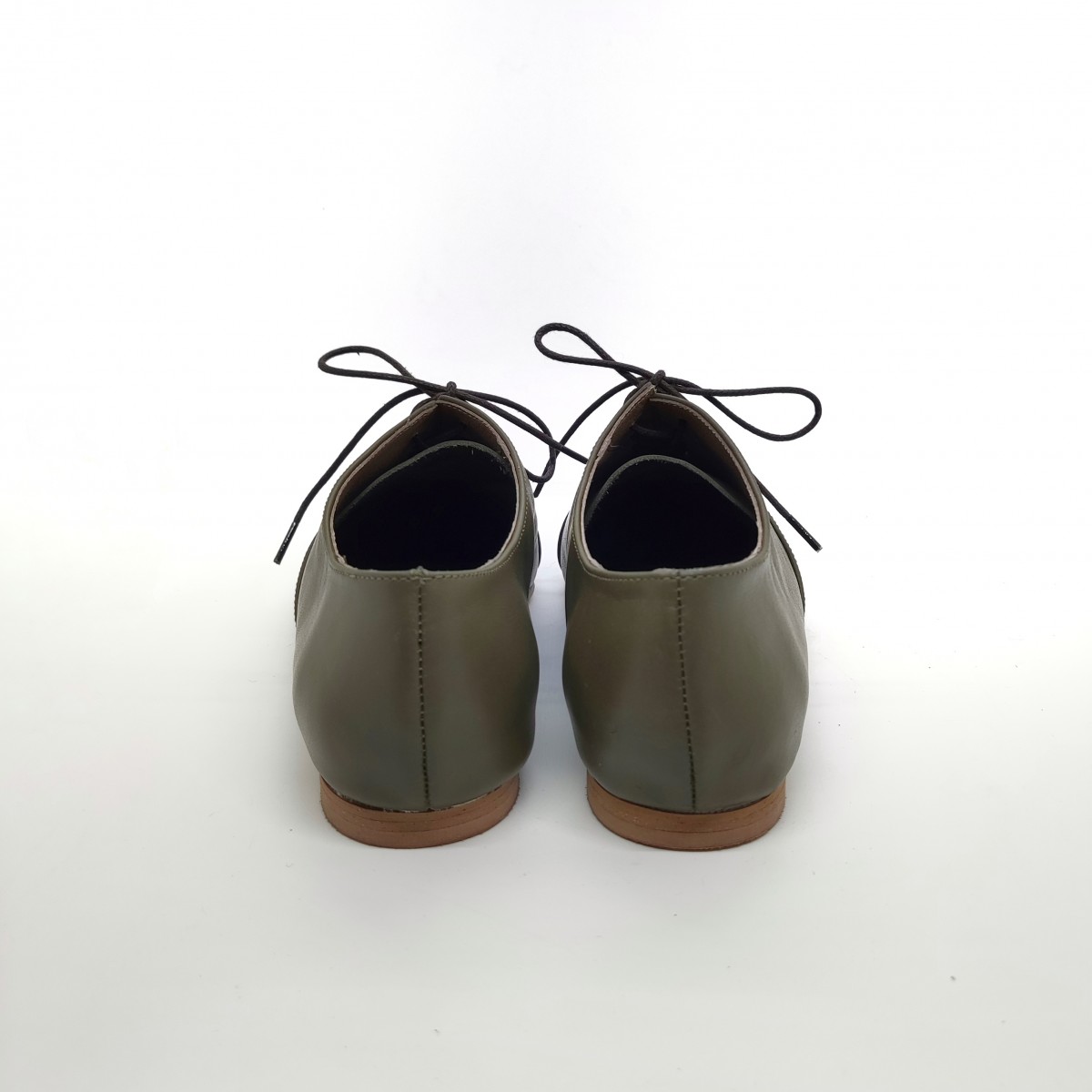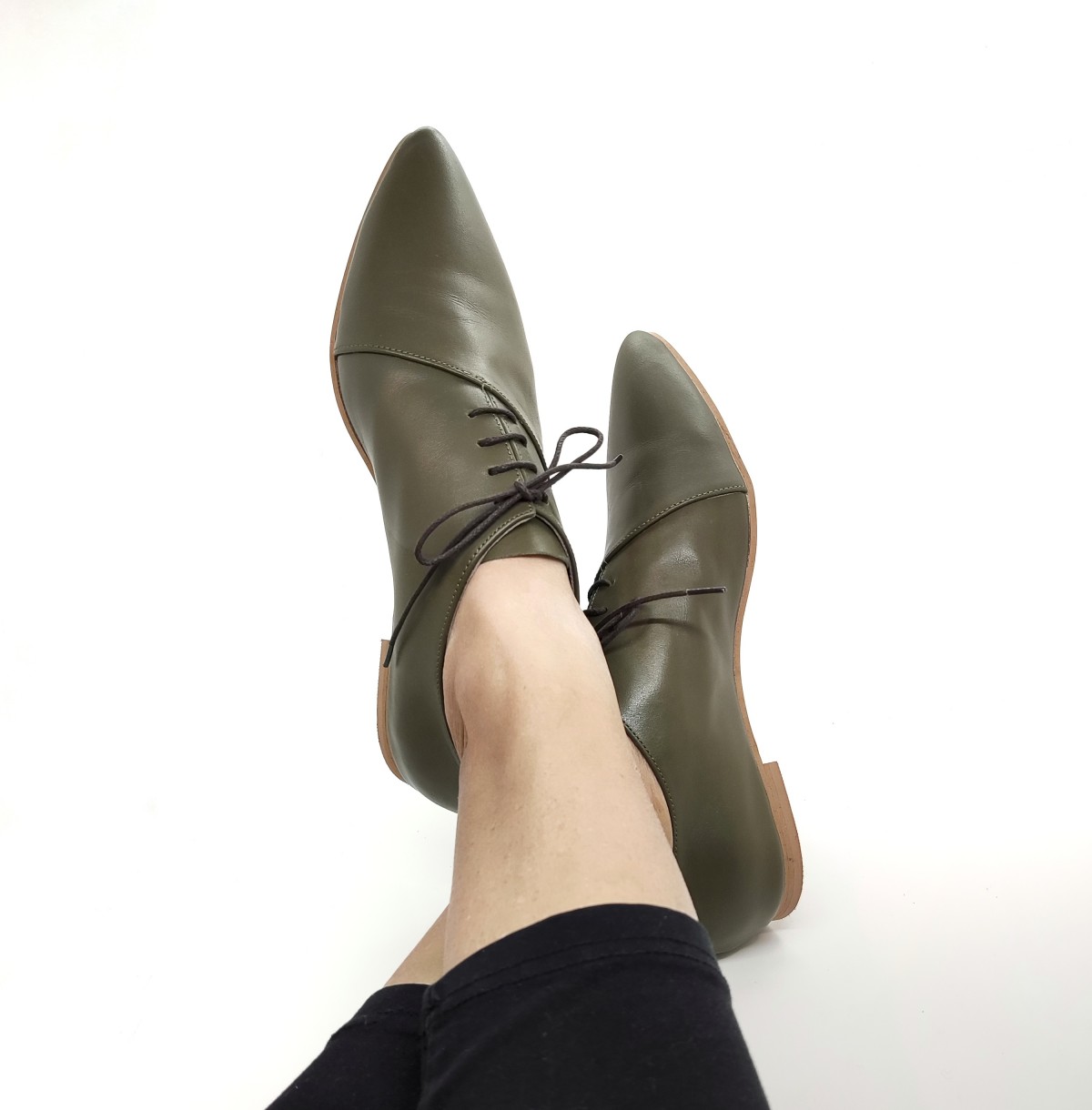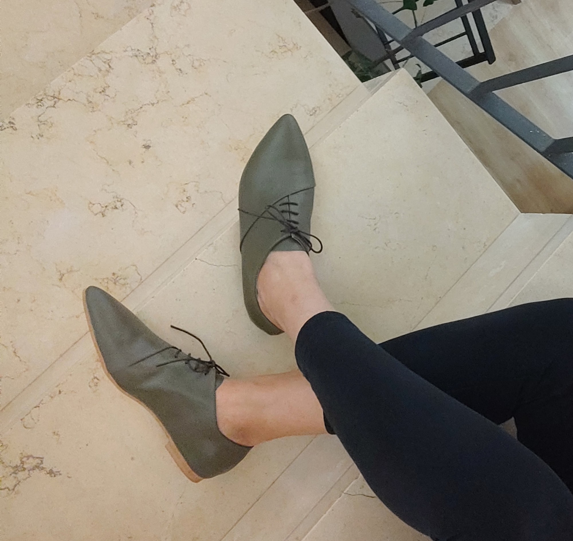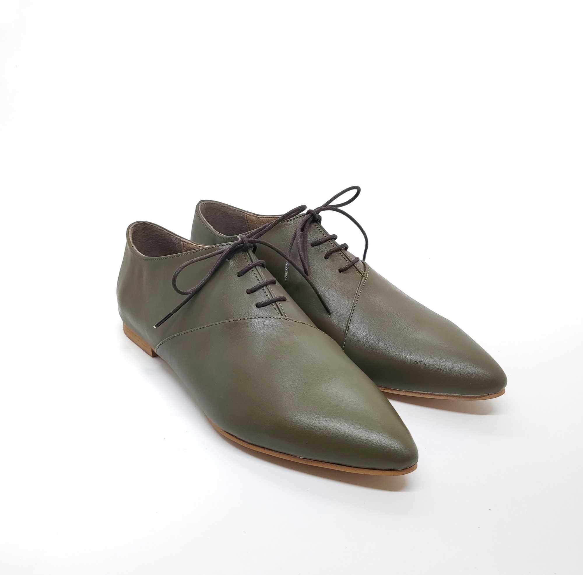 נעל שרוכים שפיצית שטוחה(שפיץ מתון), אפשר להזמין זוג סימטרי (כל נעל היא תמונת מראה של השניה) ואפשר להזמין זוג א-סימטרי (ראו תמונה למטה, בשחור), משלוח תוך שלושה שבועות