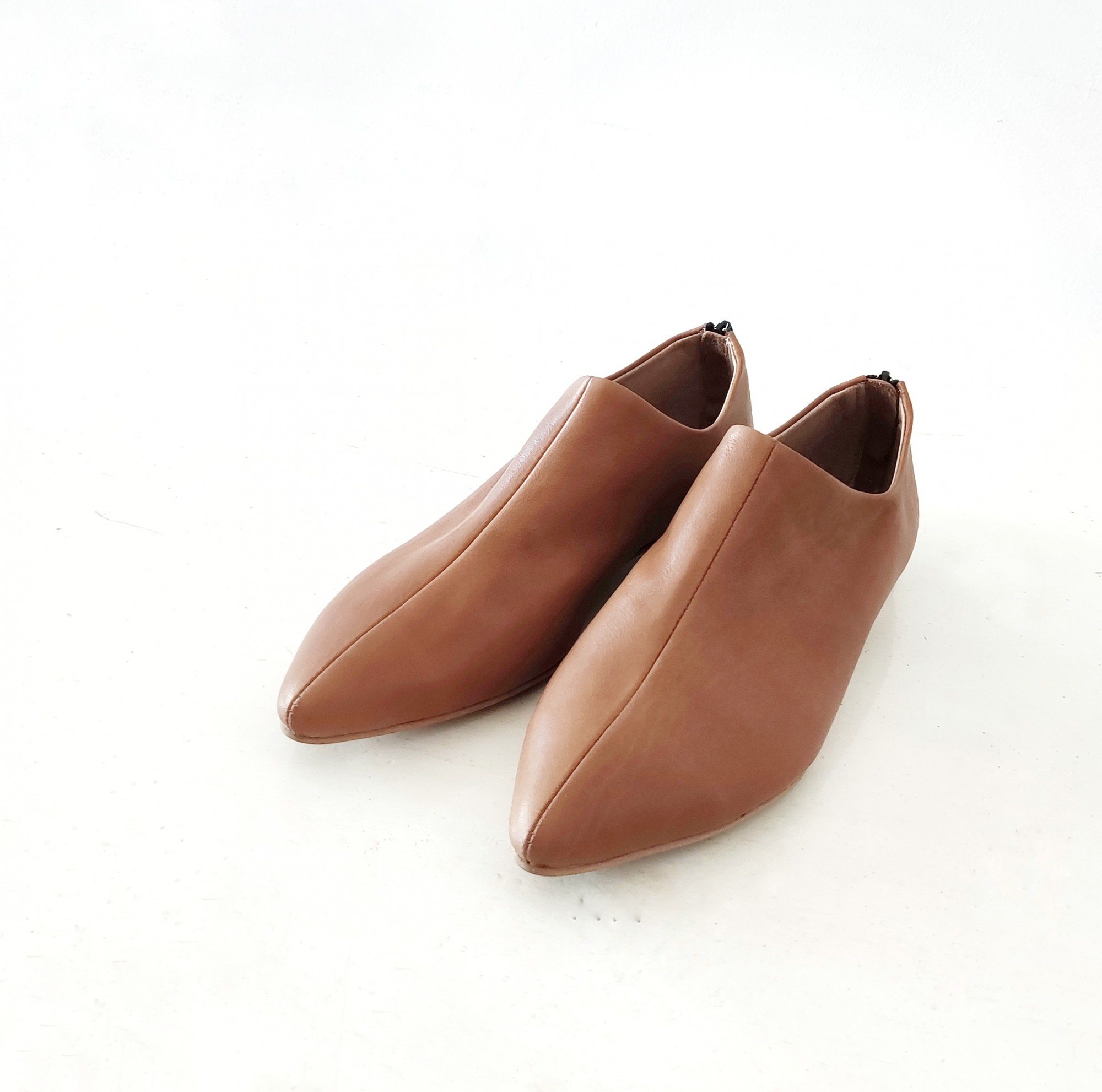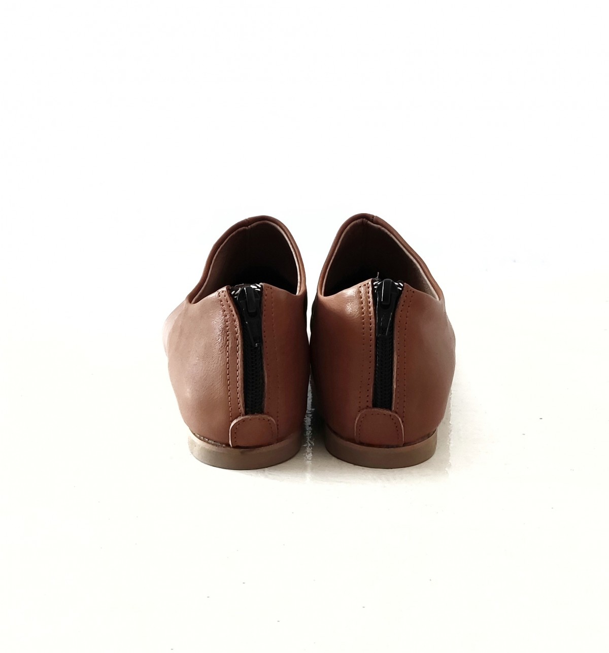 נעל שטוחה עם שפיץ מתון,עור עם ברק עדין, רוכסן מאחור, משלוח תוך שלושה שבועות