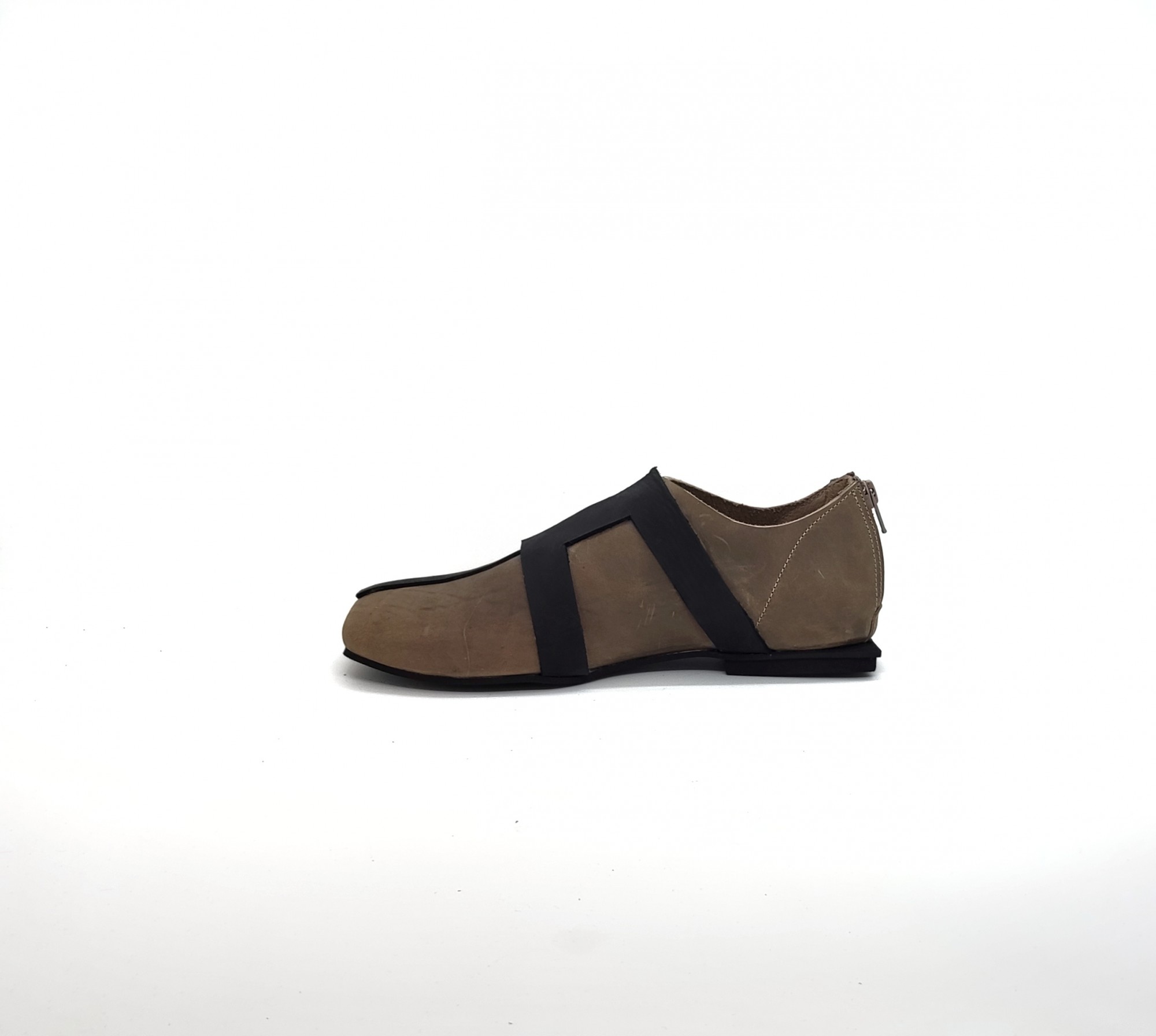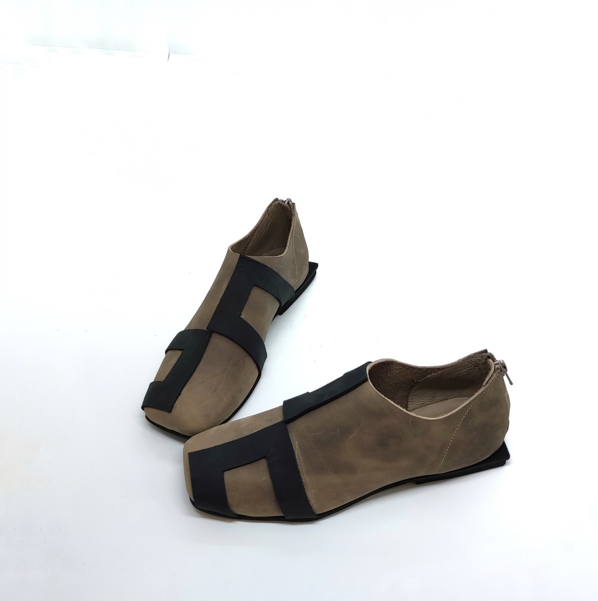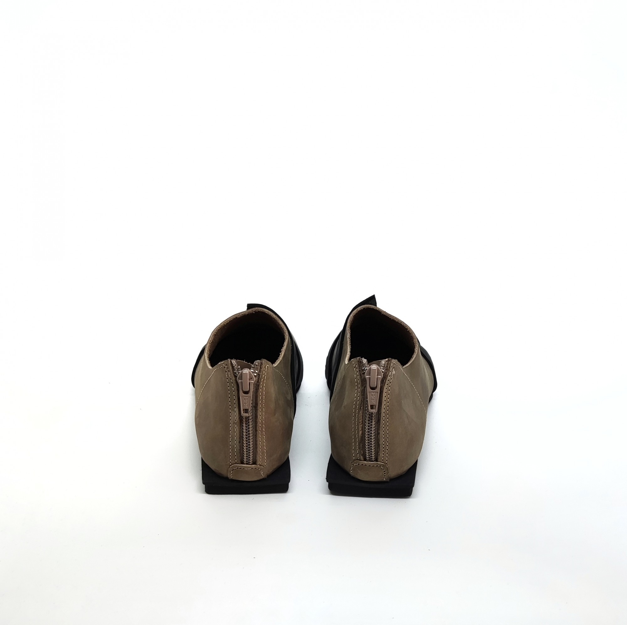 נעליים שטוחות עם רוכסן מאחור. עור נובוק.