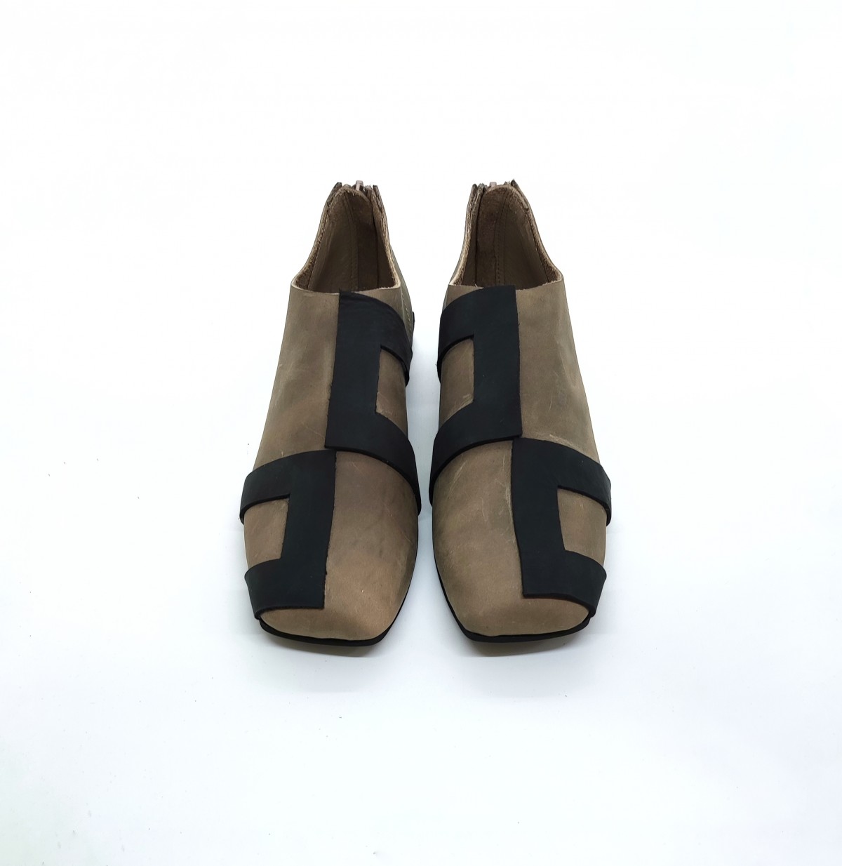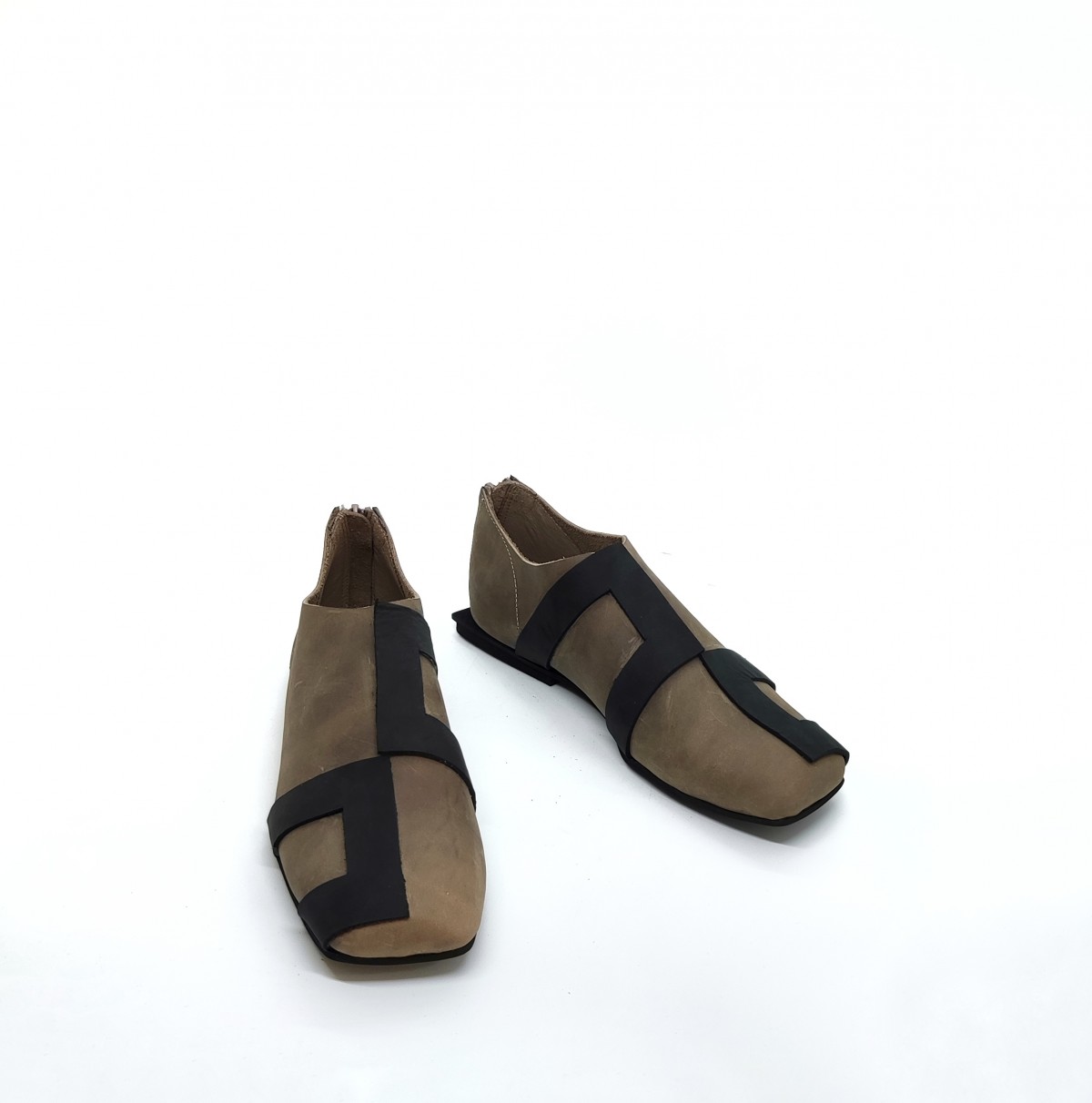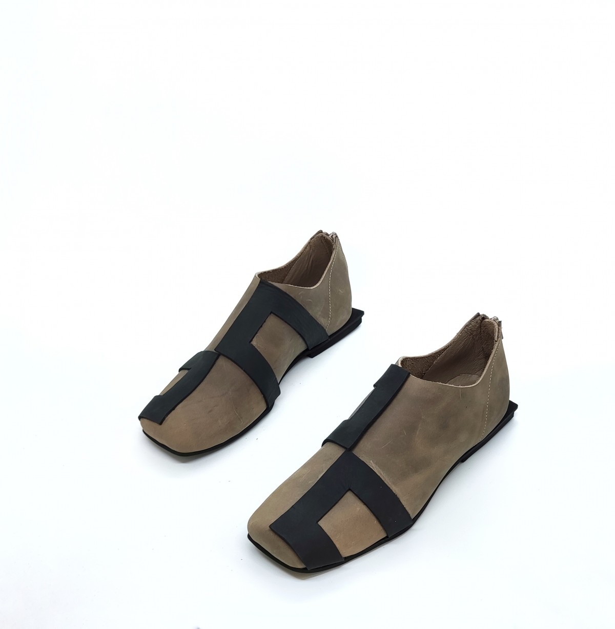 נעליים שטוחות עם רוכסן מאחור. עור נובוק.