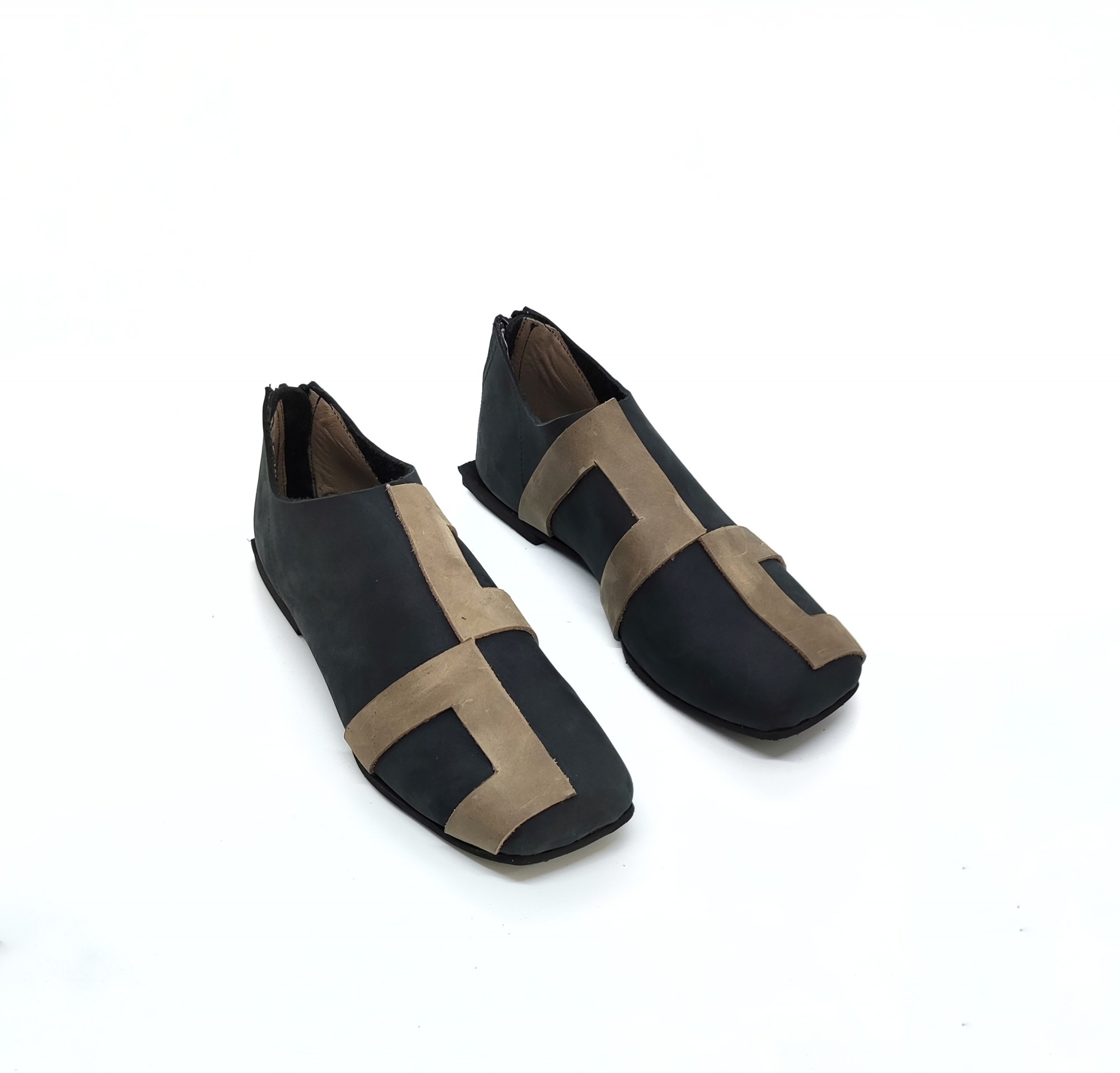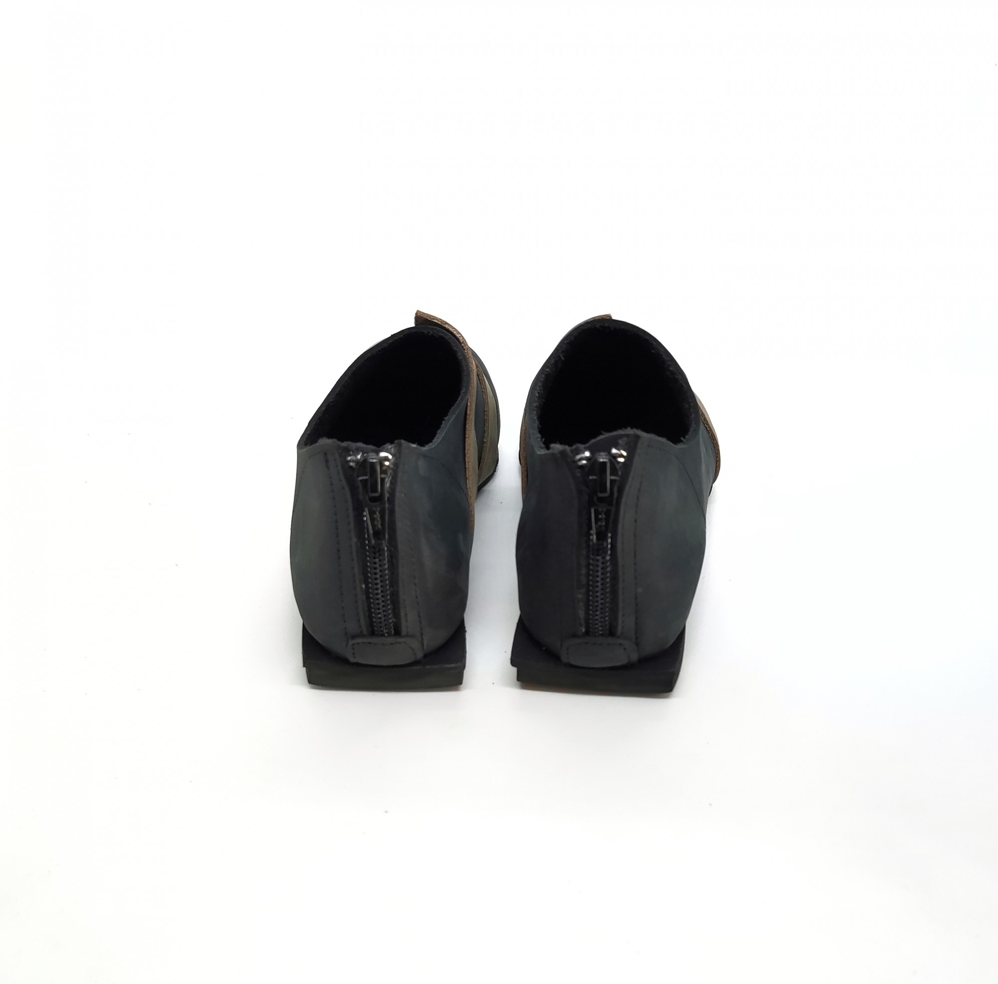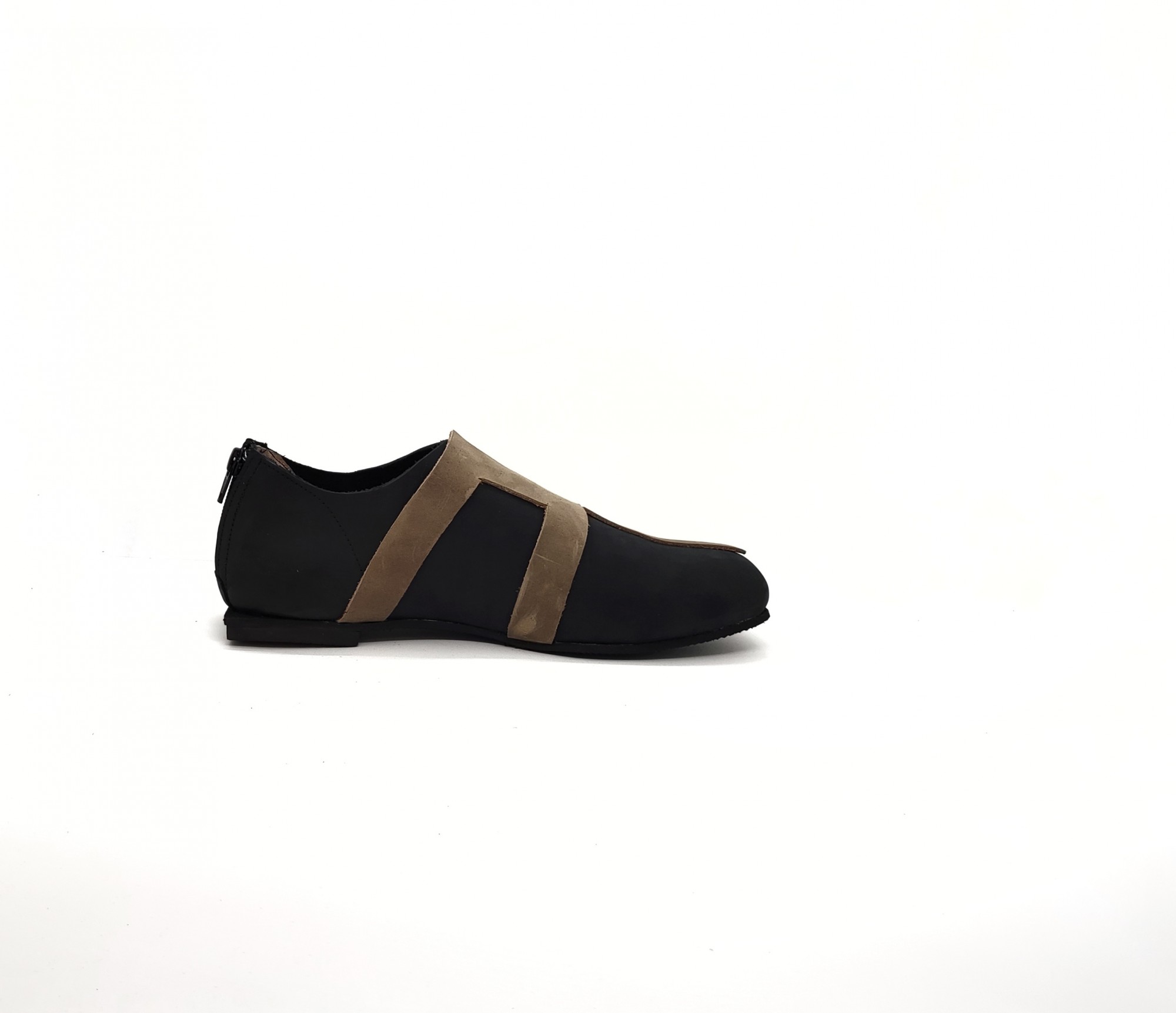 נעליים שטוחות עם רוכסן מאחור. עור נובוק.