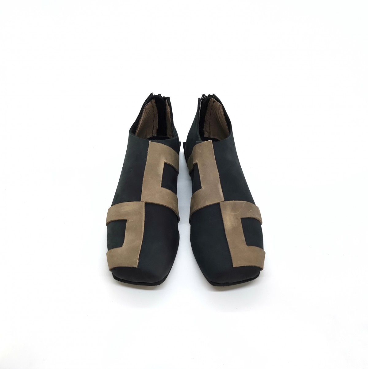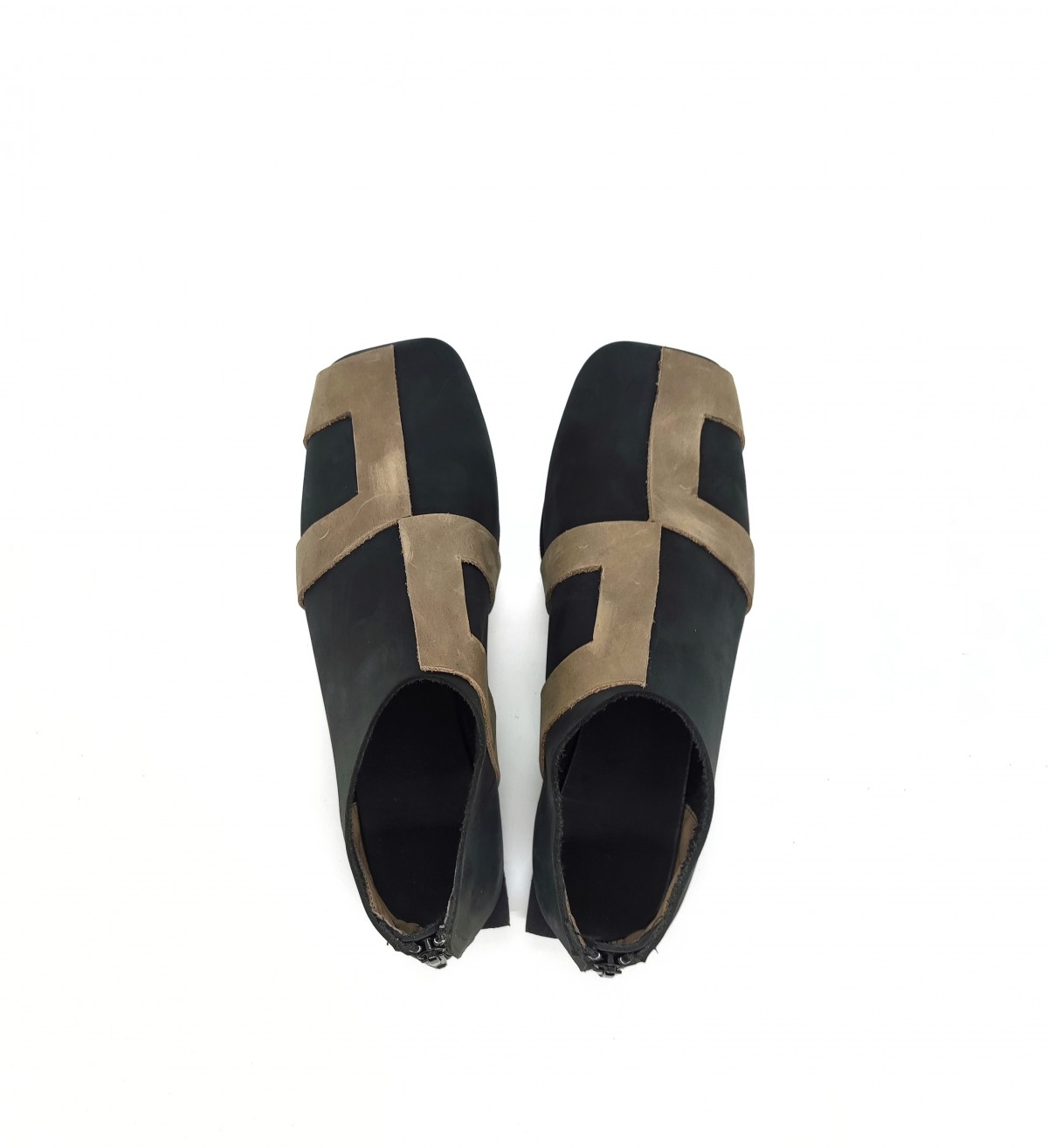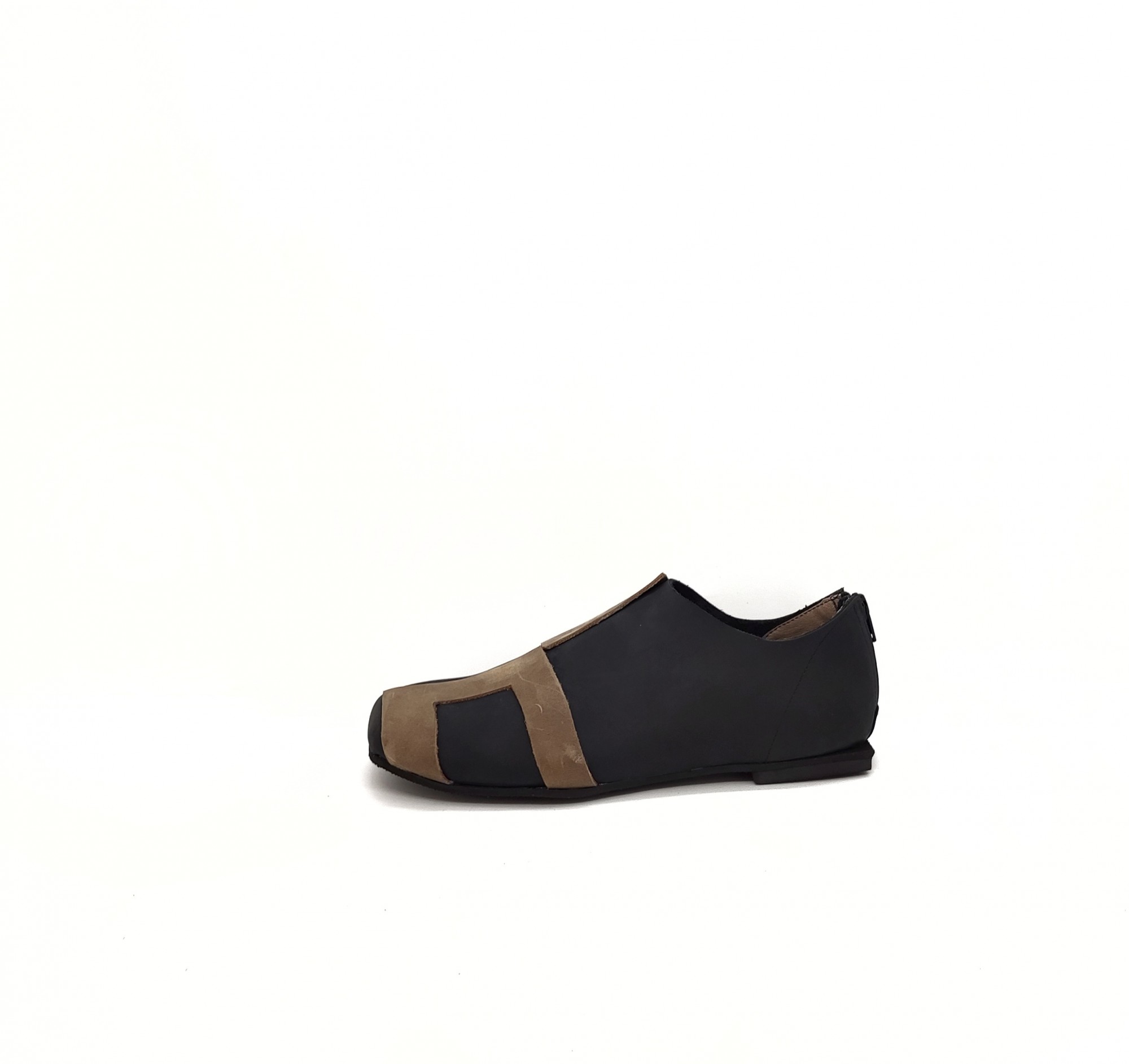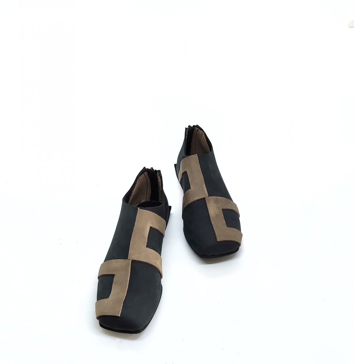 נעליים שטוחות עם רוכסן מאחור. עור נובוק.