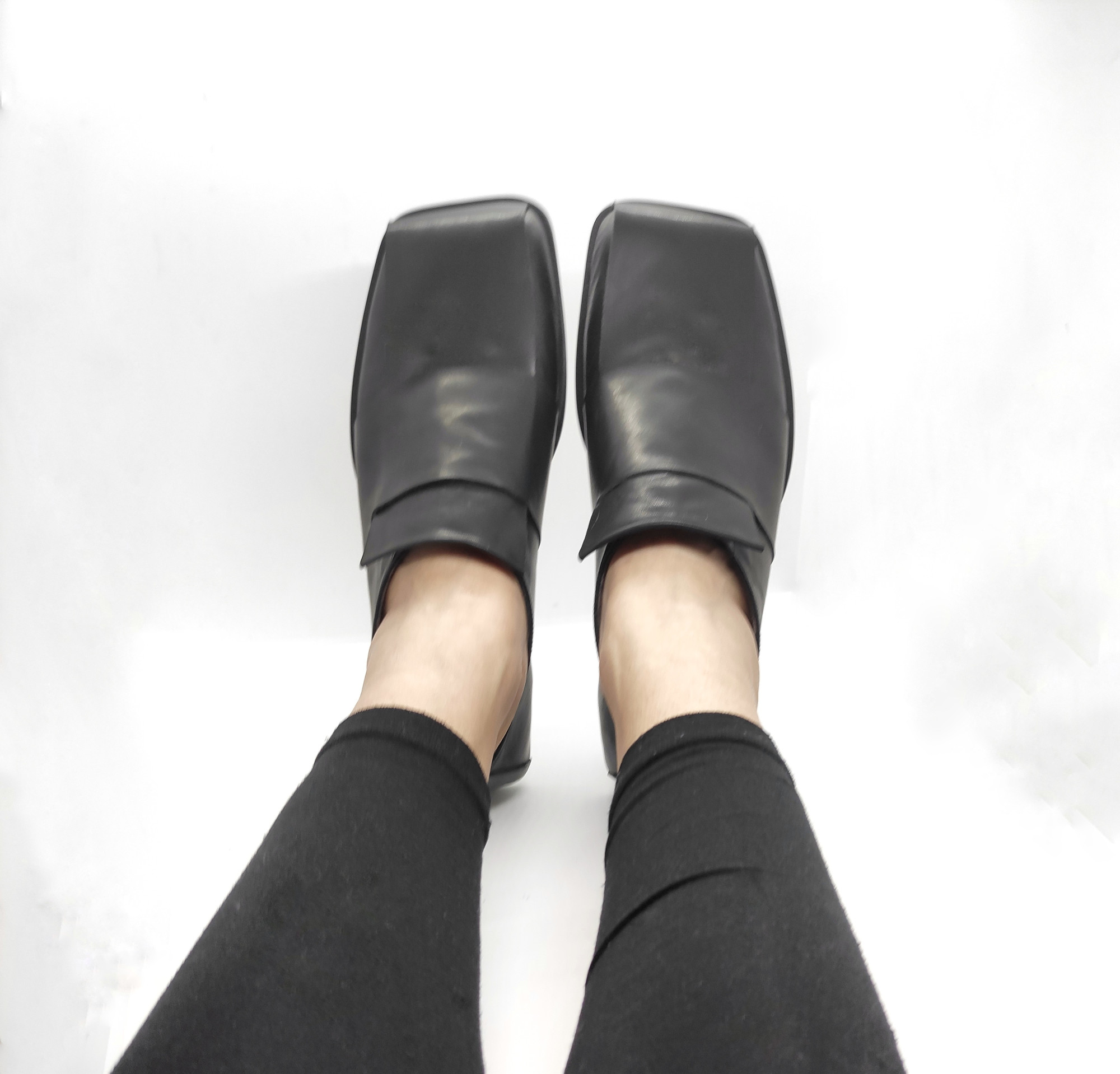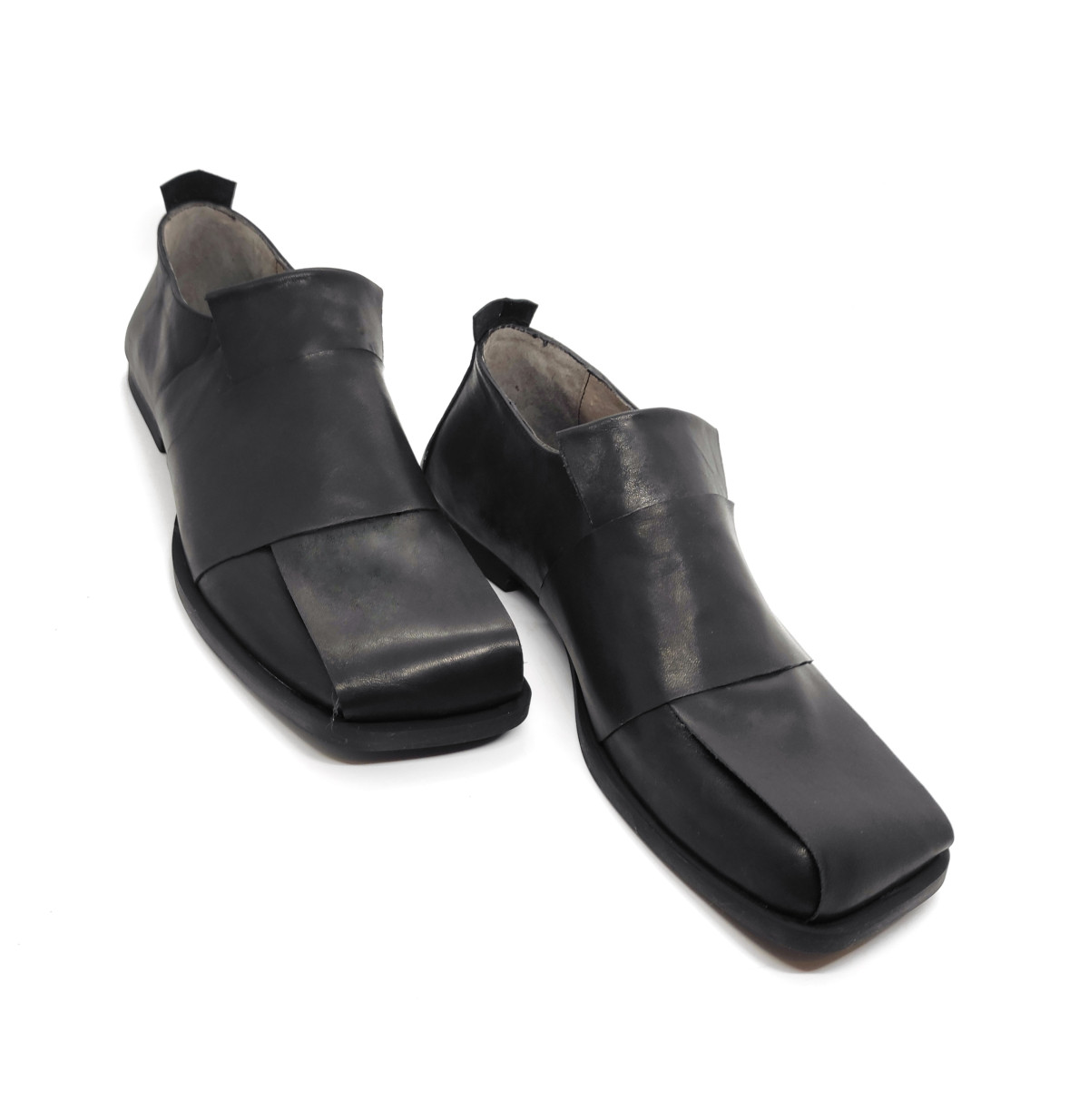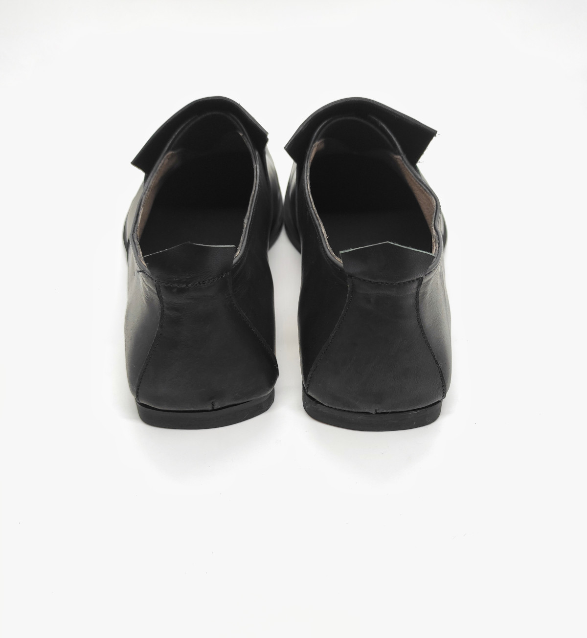 נעלים שטוחות ללא סגירה, גומי נסתר, עור עם ברק עדין.