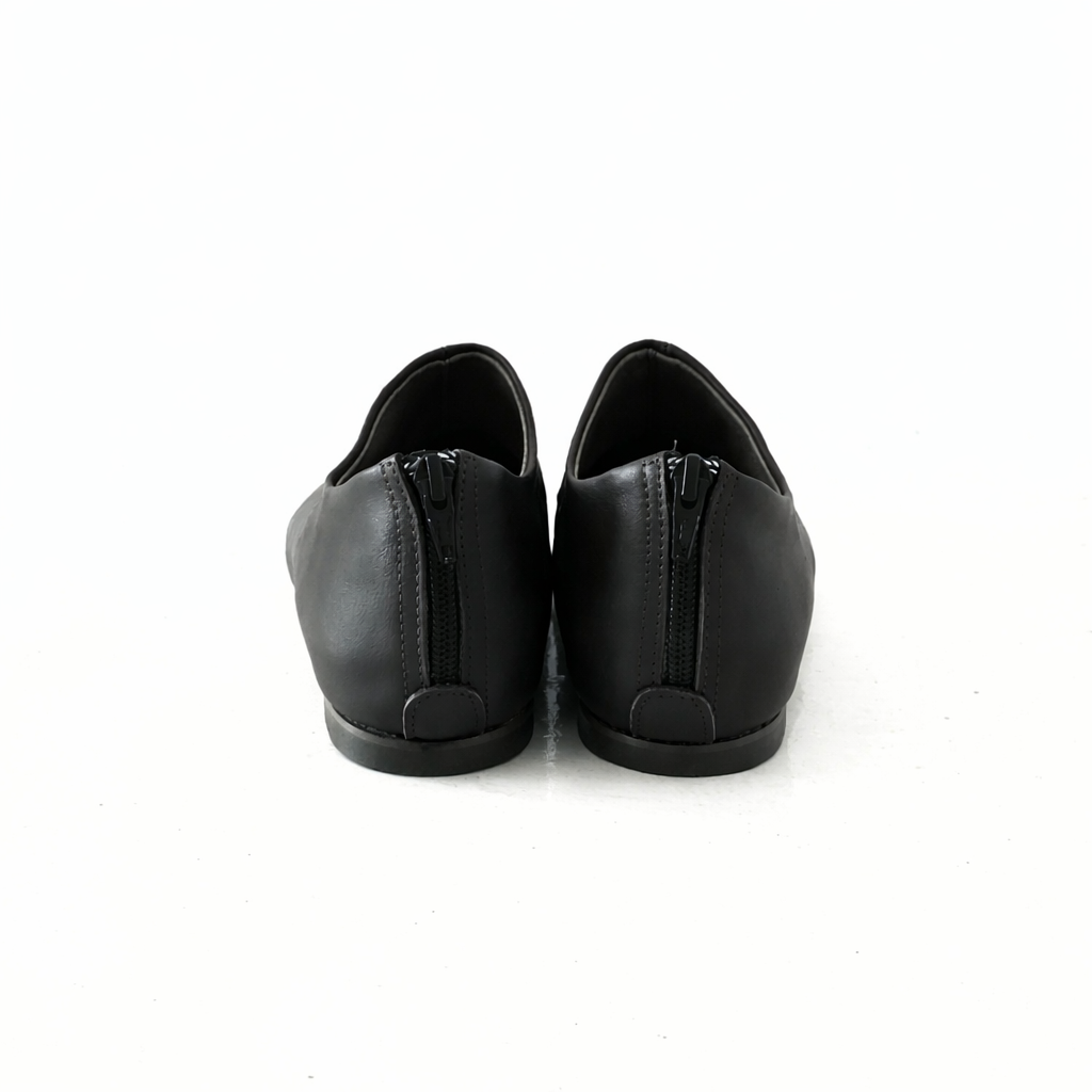 נעל שטוחה עם שפיץ מתון,עור עם ברק עדין, רוכסן מאחור, משלוח תוך שלושה שבועות