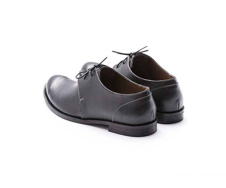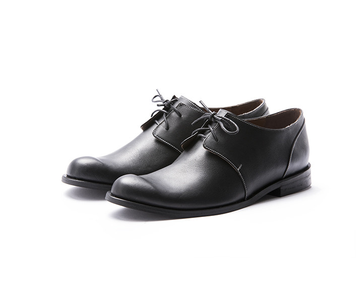 נעל דרבי עם שריכה, גובה עקב 1.5 סמ', תבליט בחרטום, תיפורים בצבע אופוויט.