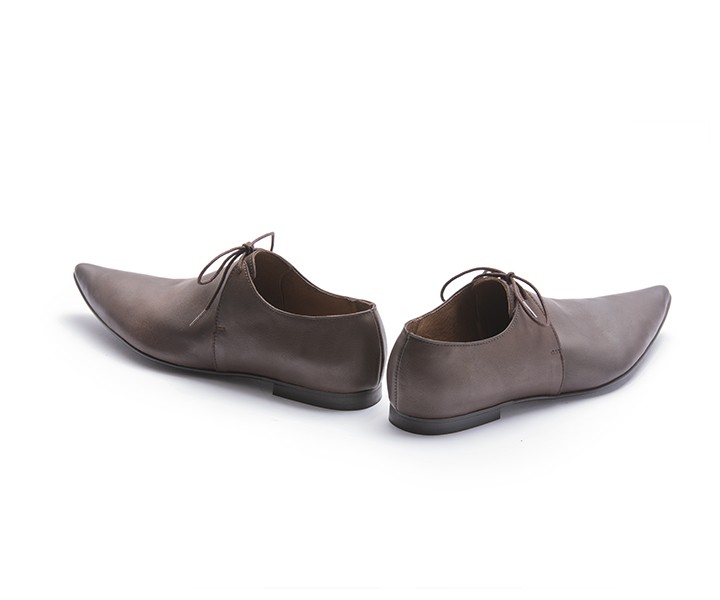 נעל דרבי שטוחה עם שרוך, בעלת חרטום מחודד וארוך מאד. שימו לב: המידות גדולות, בדרך כלל יורדים מידה. מי שנועלת 39 תיקח 38.