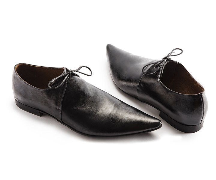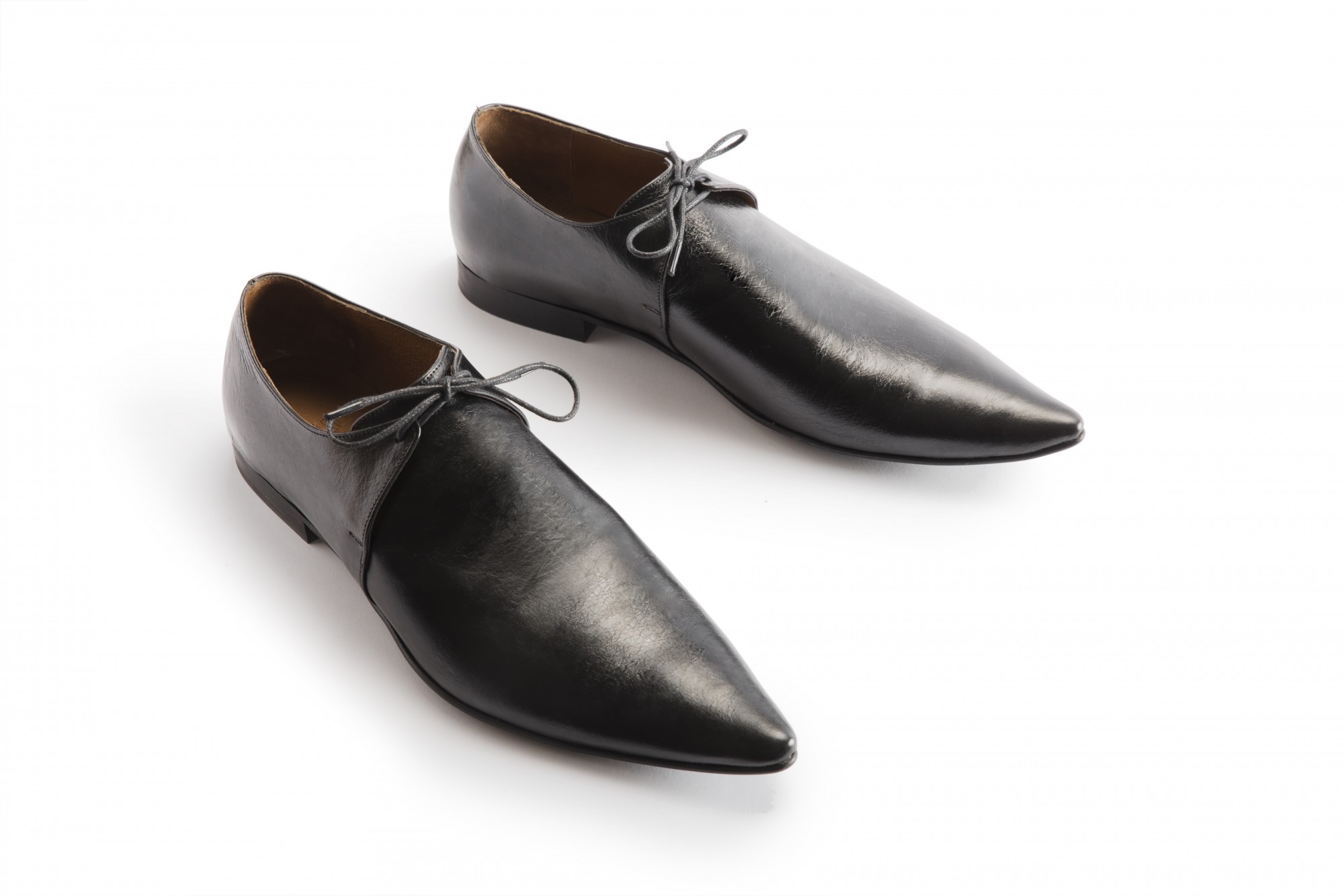נעל דרבי שטוחה עם שרוך, בעלת חרטום מחודד וארוך מאד. שימו לב: המידות גדולות, בדרך כלל יורדים מידה, מי שבדרך כלל נועלת 39 תיקח 38.