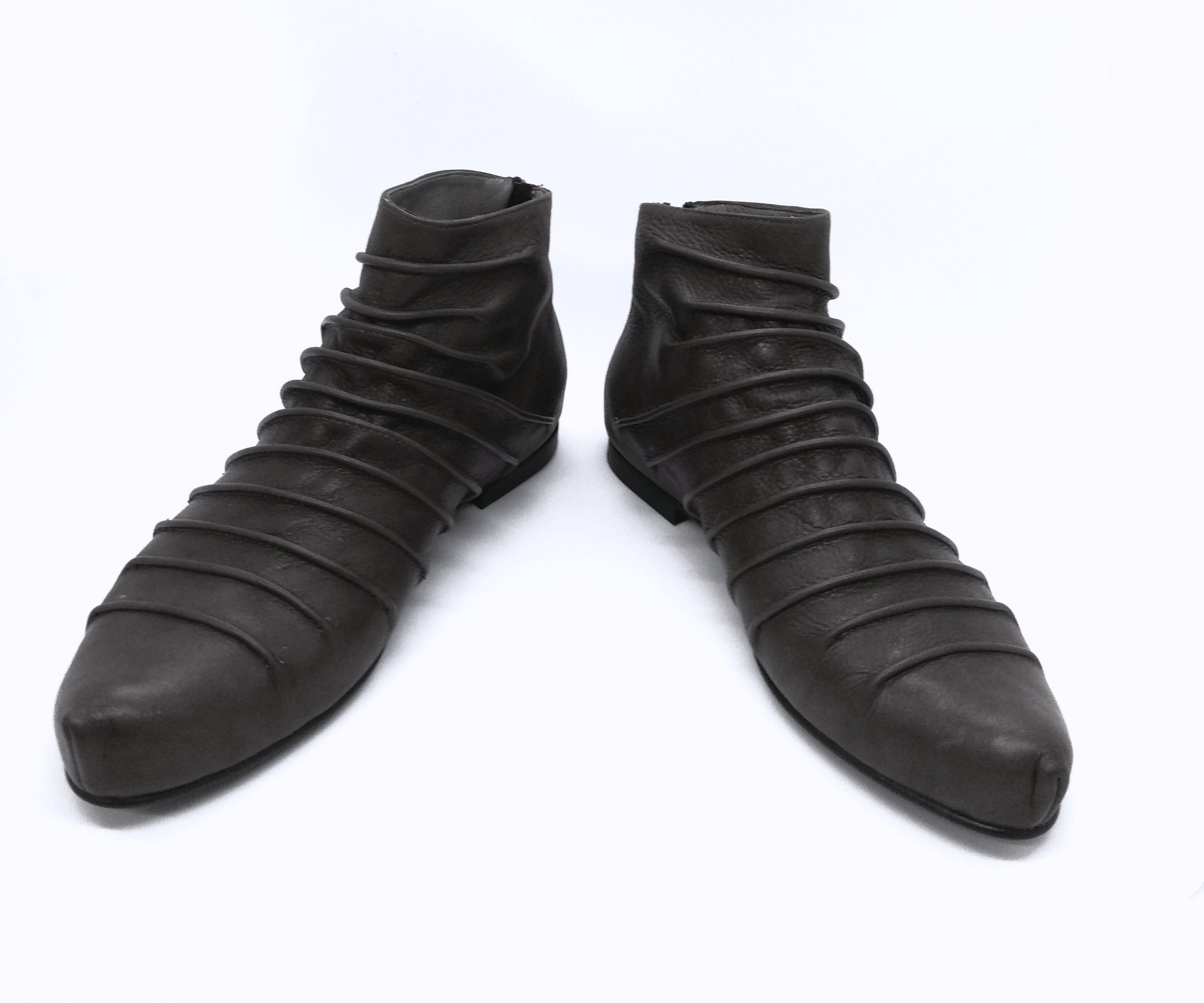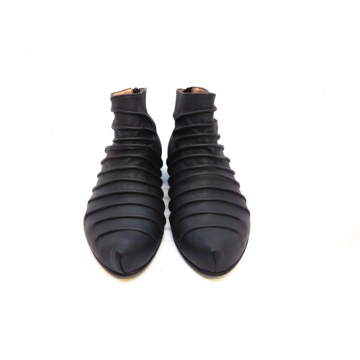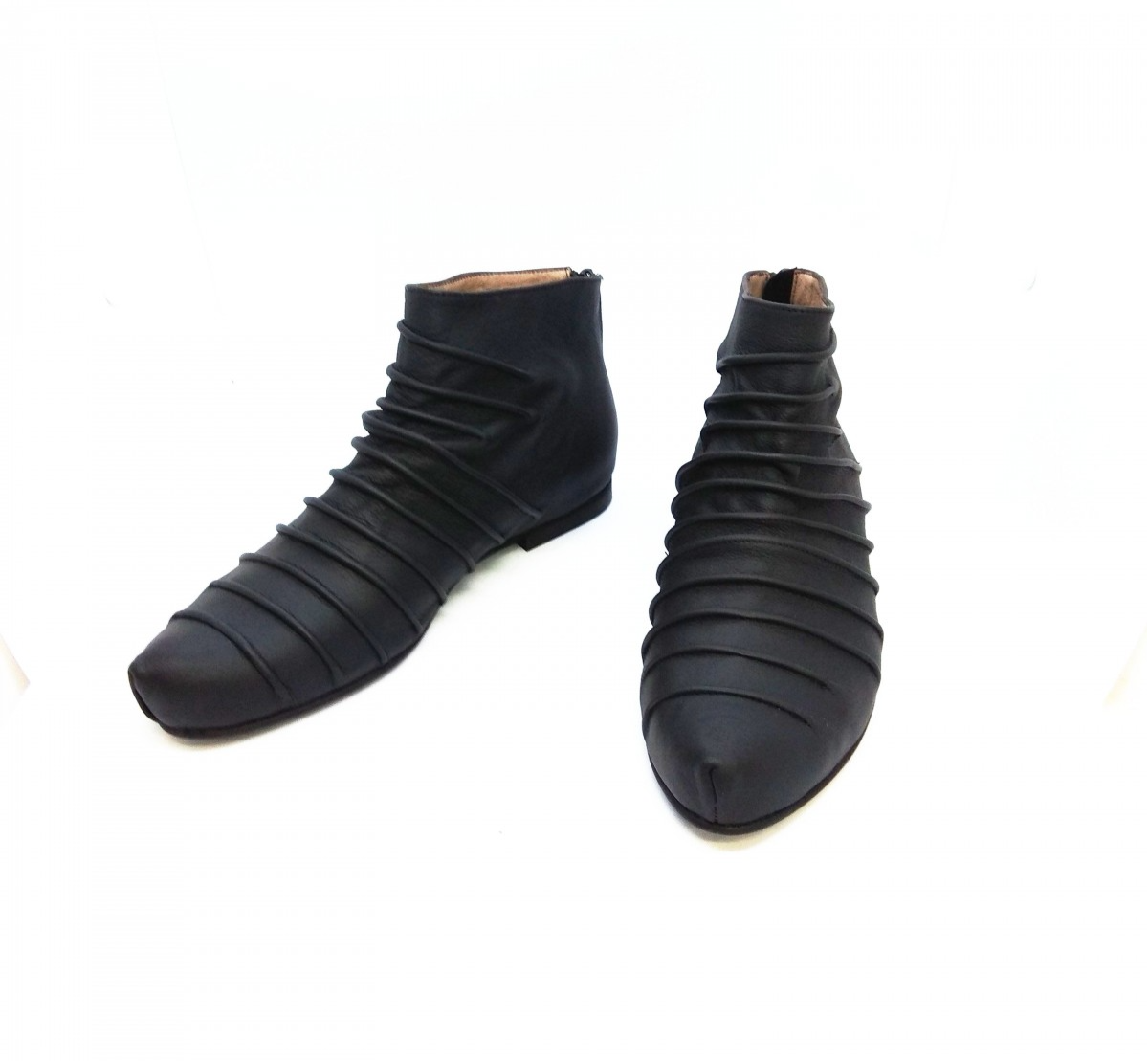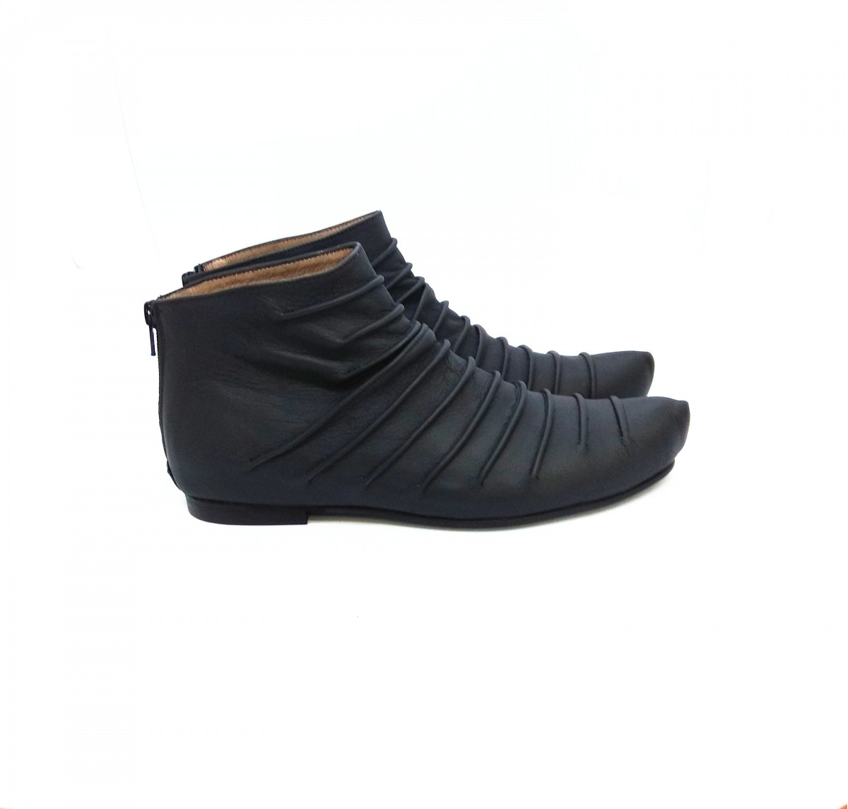 מגפון שטוח בגובה קרסול, רוכסן מאחור. גובה מאחור: 10סמ' - 11סמ'. מקדימה גבוה יותר בכ-3 סמ'. משלוח תוך שלושה שבועות.