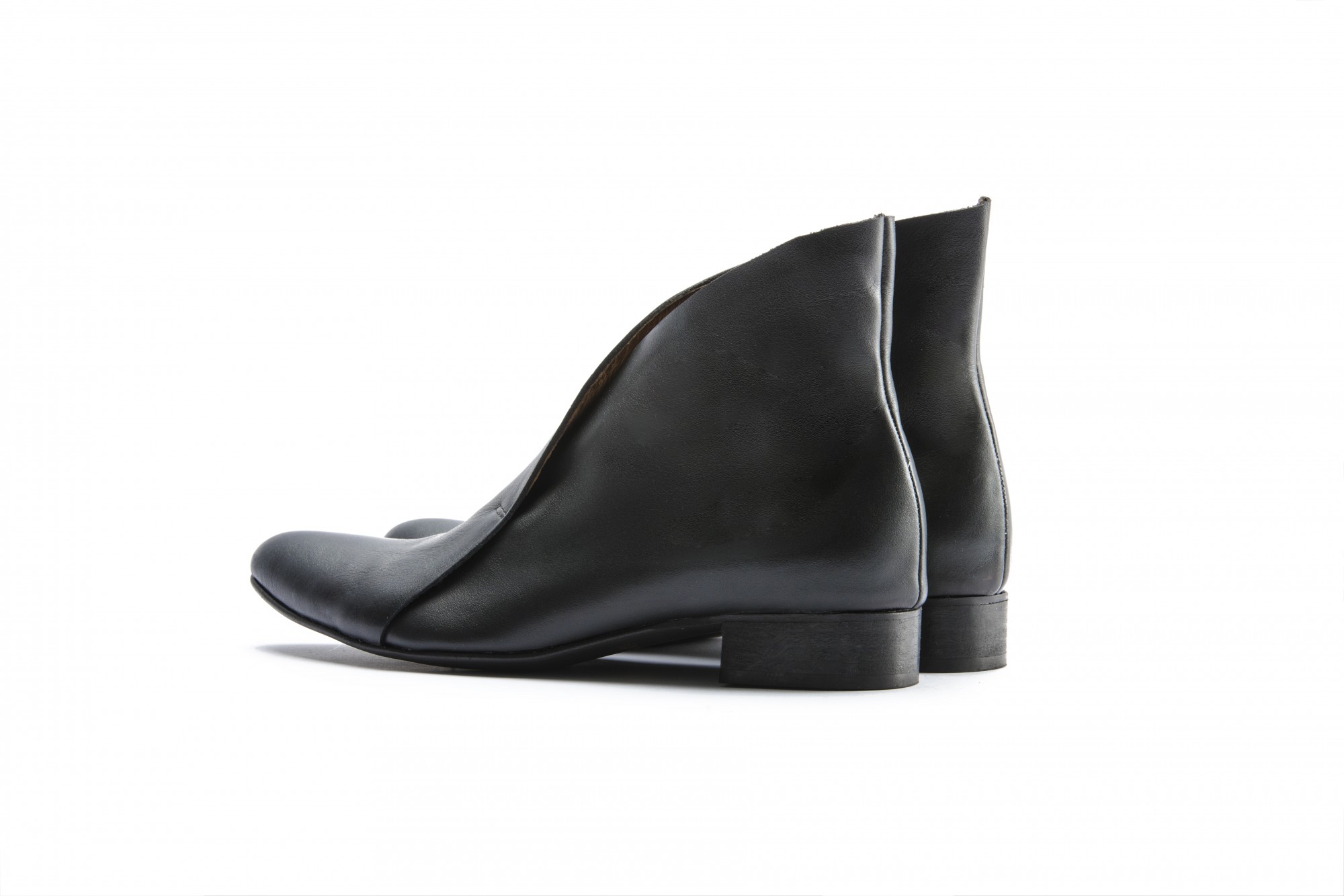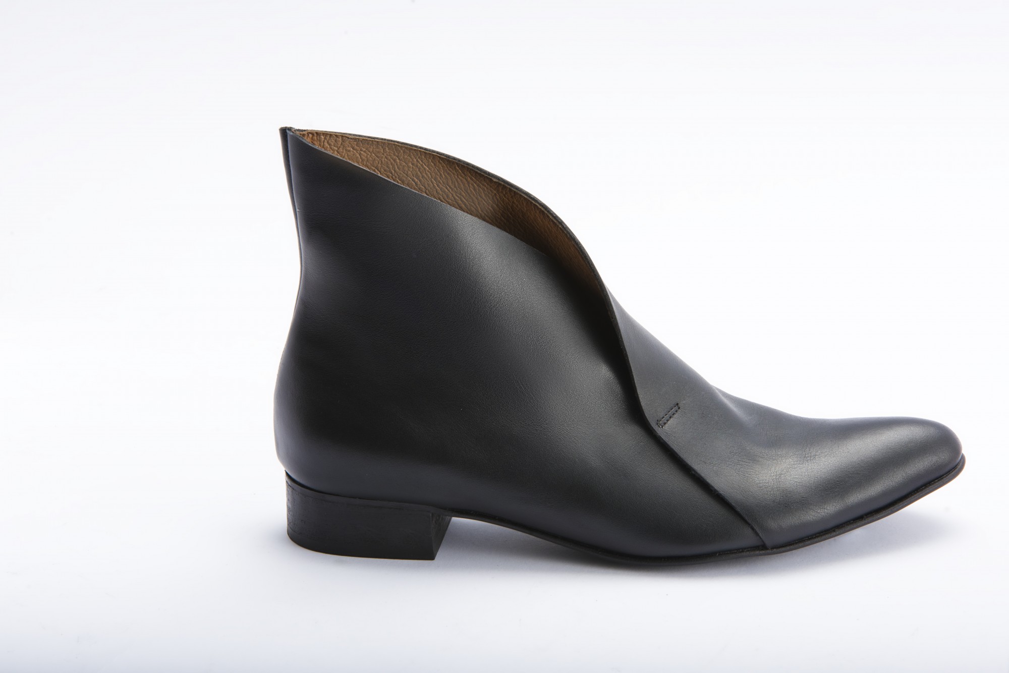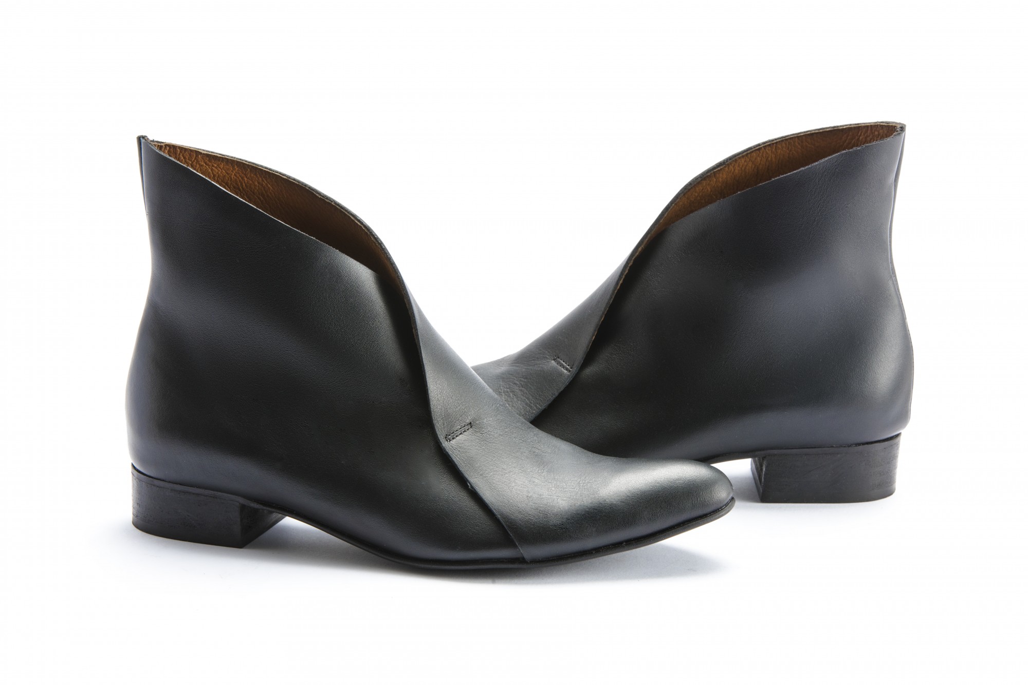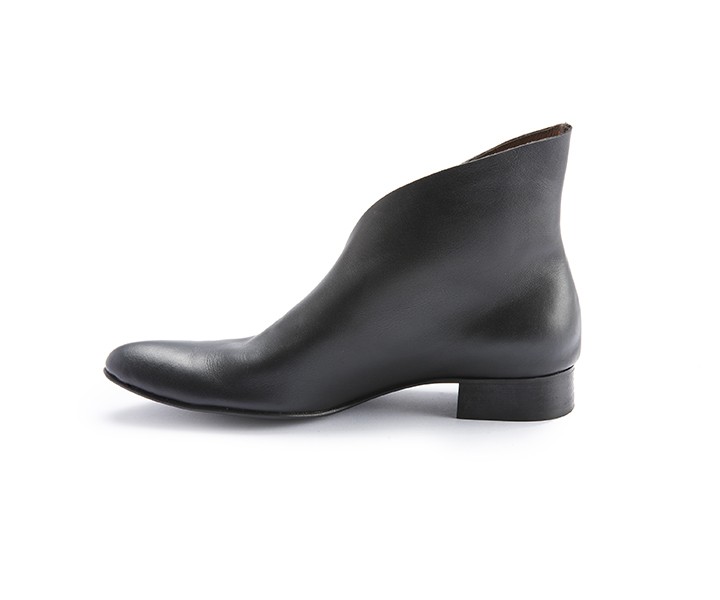 מגפון מעטפת ללא רוכסן, עם גומי נסתר, גובה מאחור (לא כולל העקב) 14סמ' - 16 סמ'. נמוך יותר מקדימה. גובה עקב 2.5 סמ'. בתמונה עור נאפה עם ברק עדין.