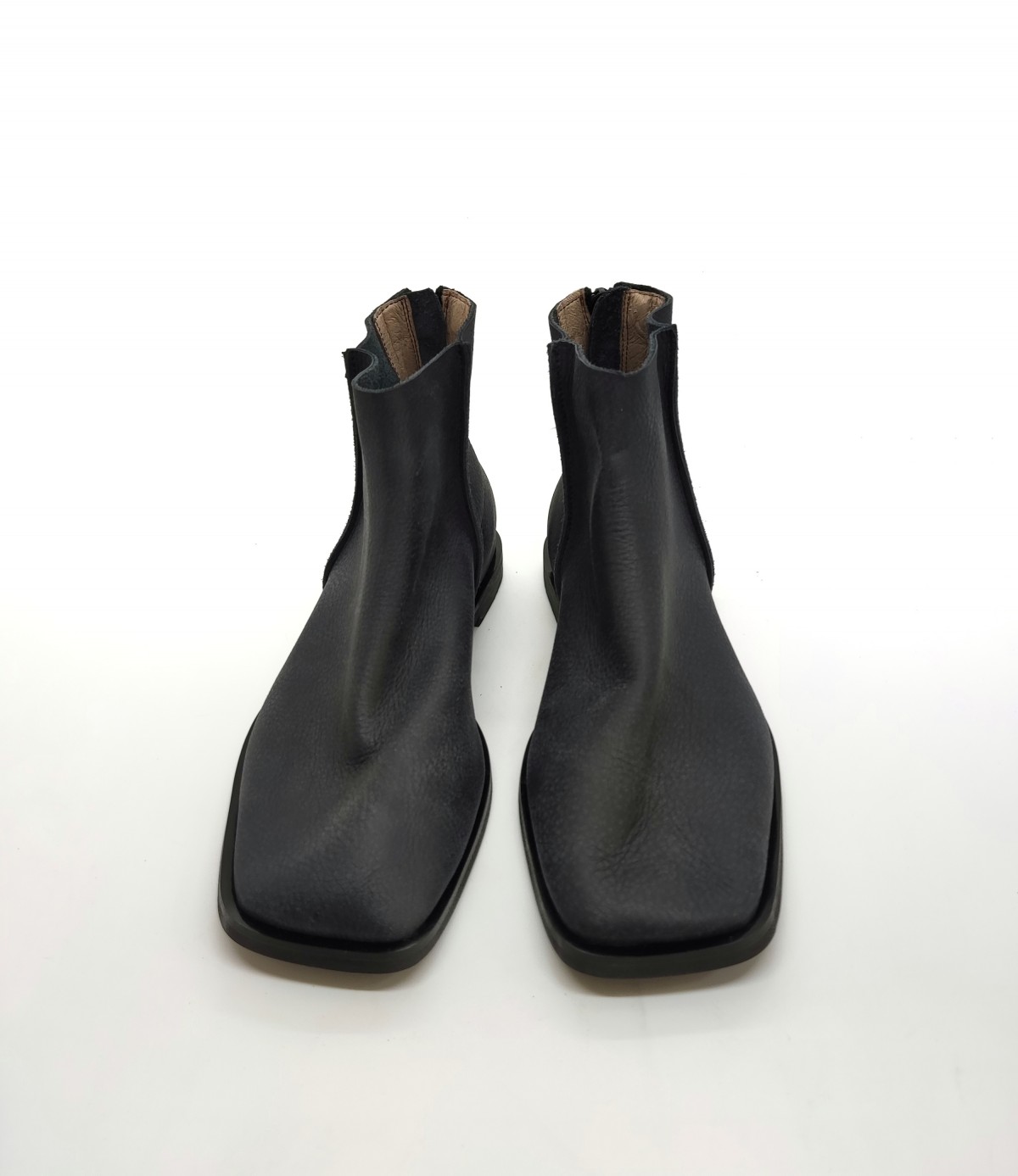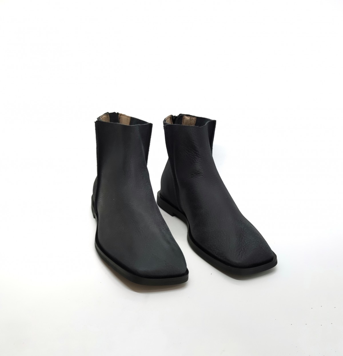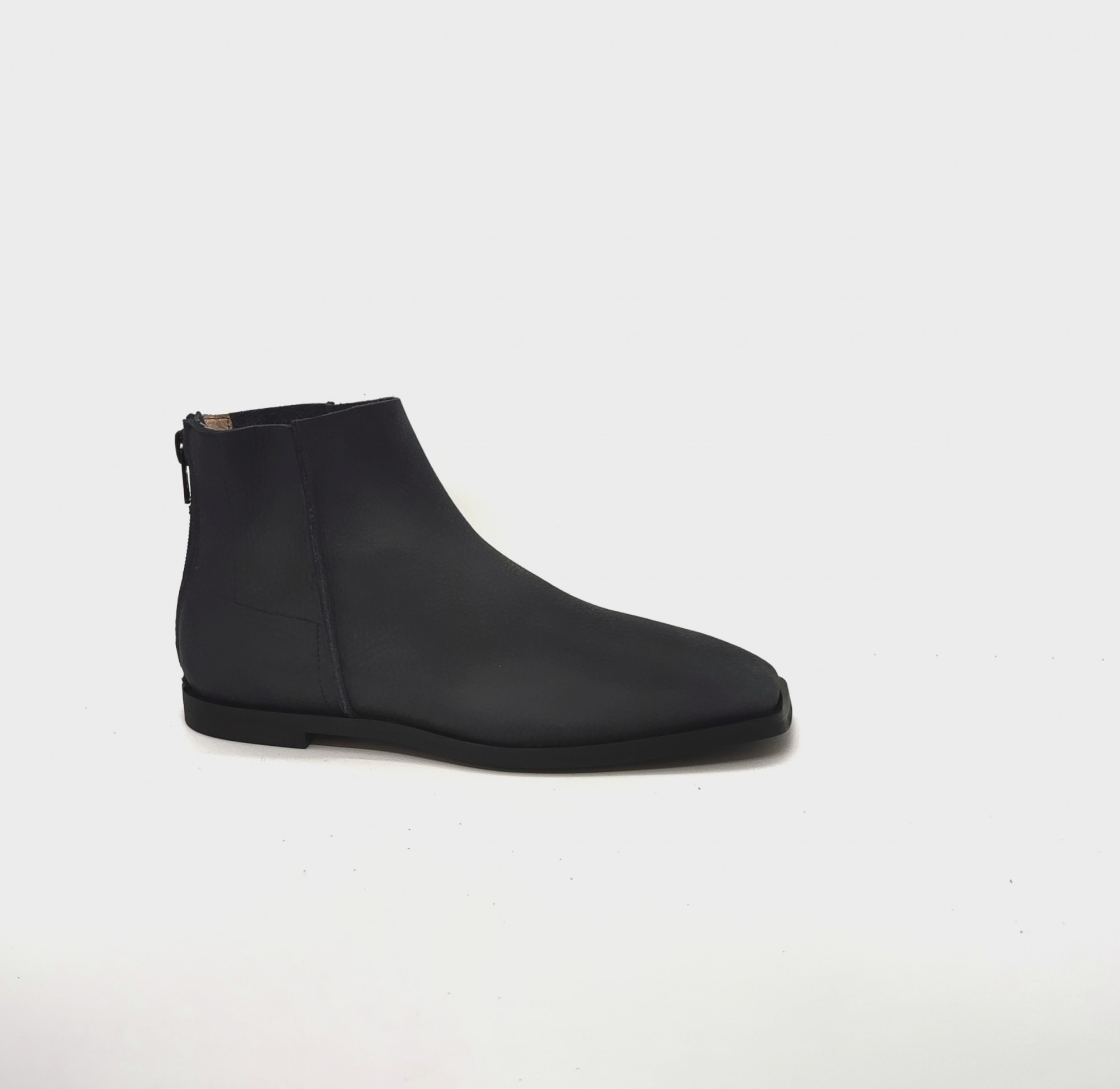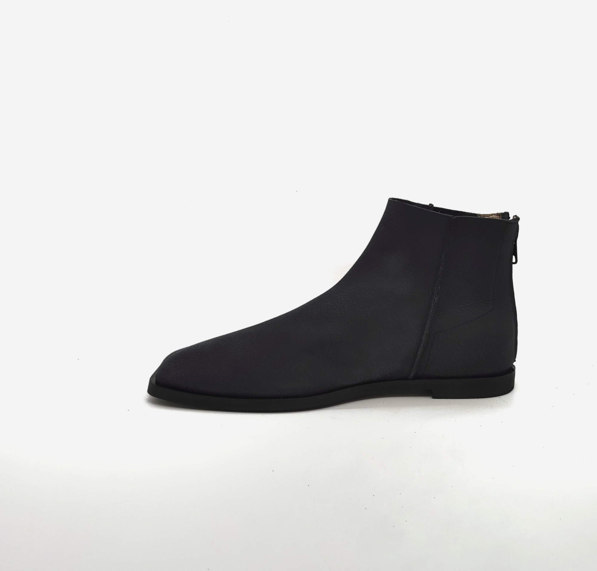 מגפון שטוח עם חרטום מרובע בגובה מעל הקרסול, עם רוכסן מאחור. גובה 13סמ' - 14 סמ'.