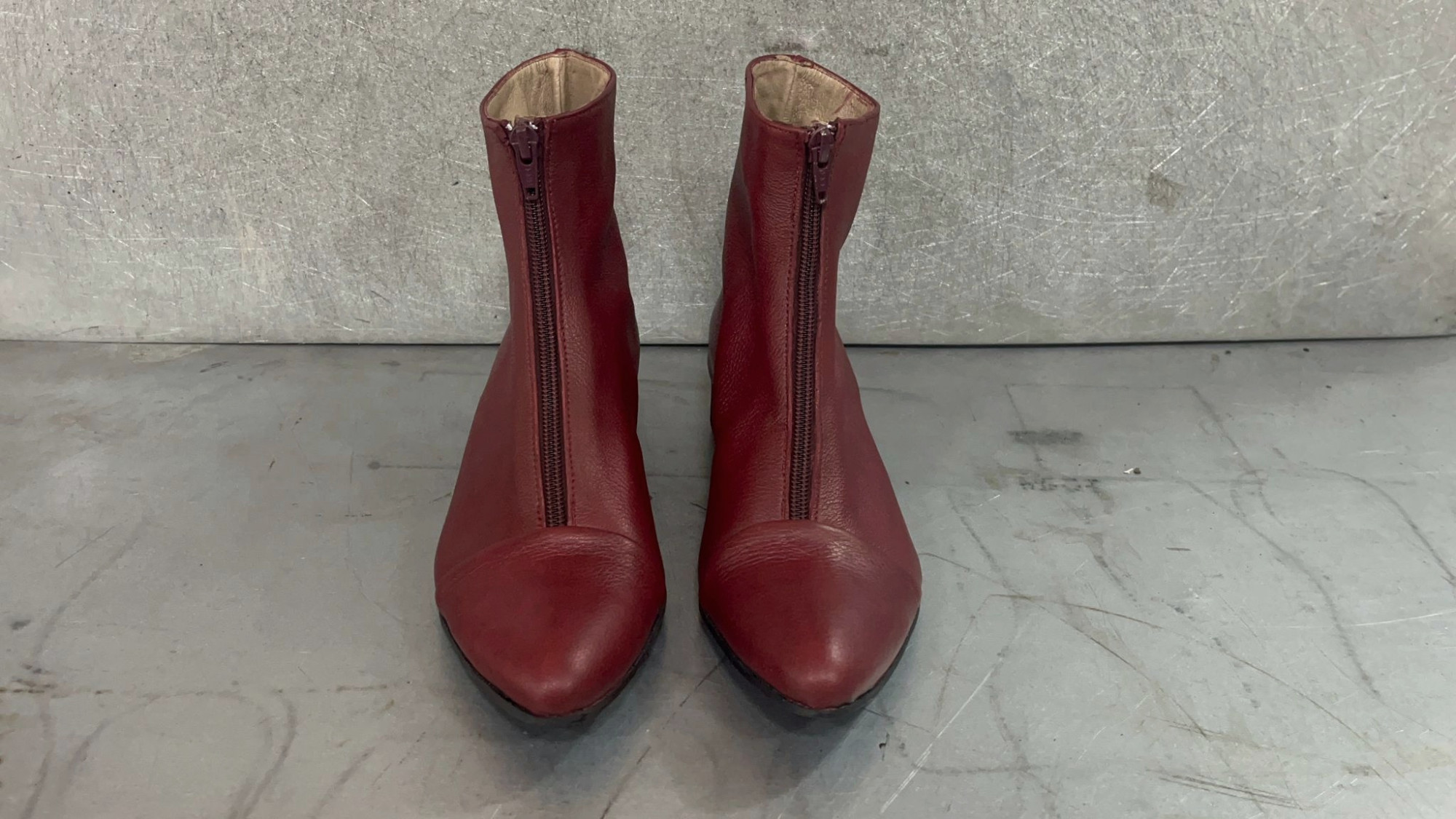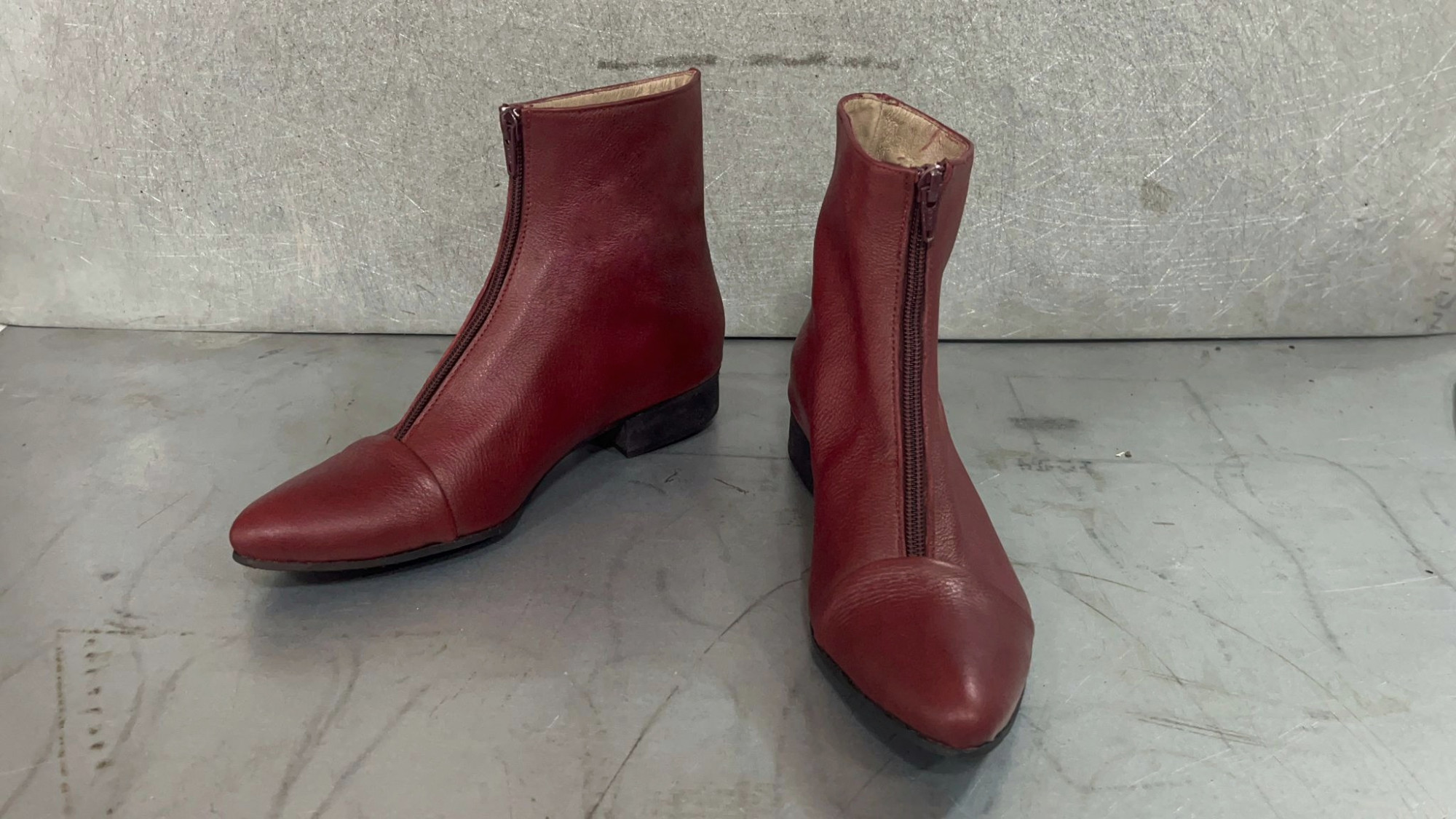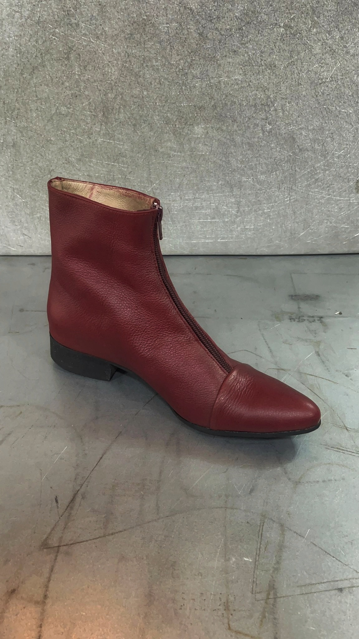 מגפון בגובה מעל הקרסול 14סמ' - 16סמ', עם רוכסן מקדימה ועקב בגובה 2.5 סמ'. בתמונה מעור רך ועבה עם טקסטורה.