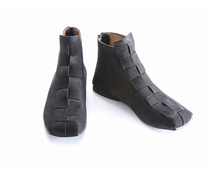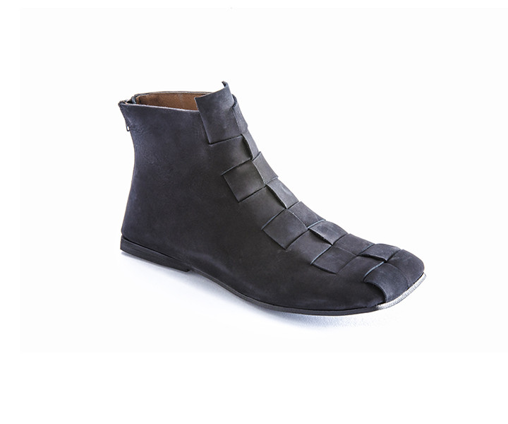 מגפון שטוח עם רוכסן מאחור. גובה מהסוליה לקצה הרוכסן 11סמ' - 12 סמ'. עור נובוק.