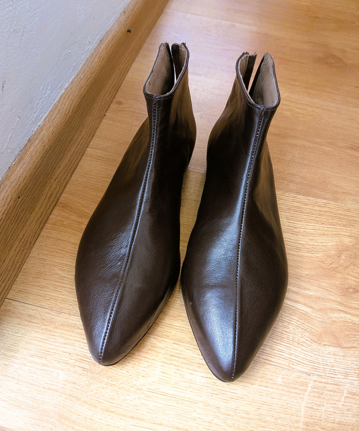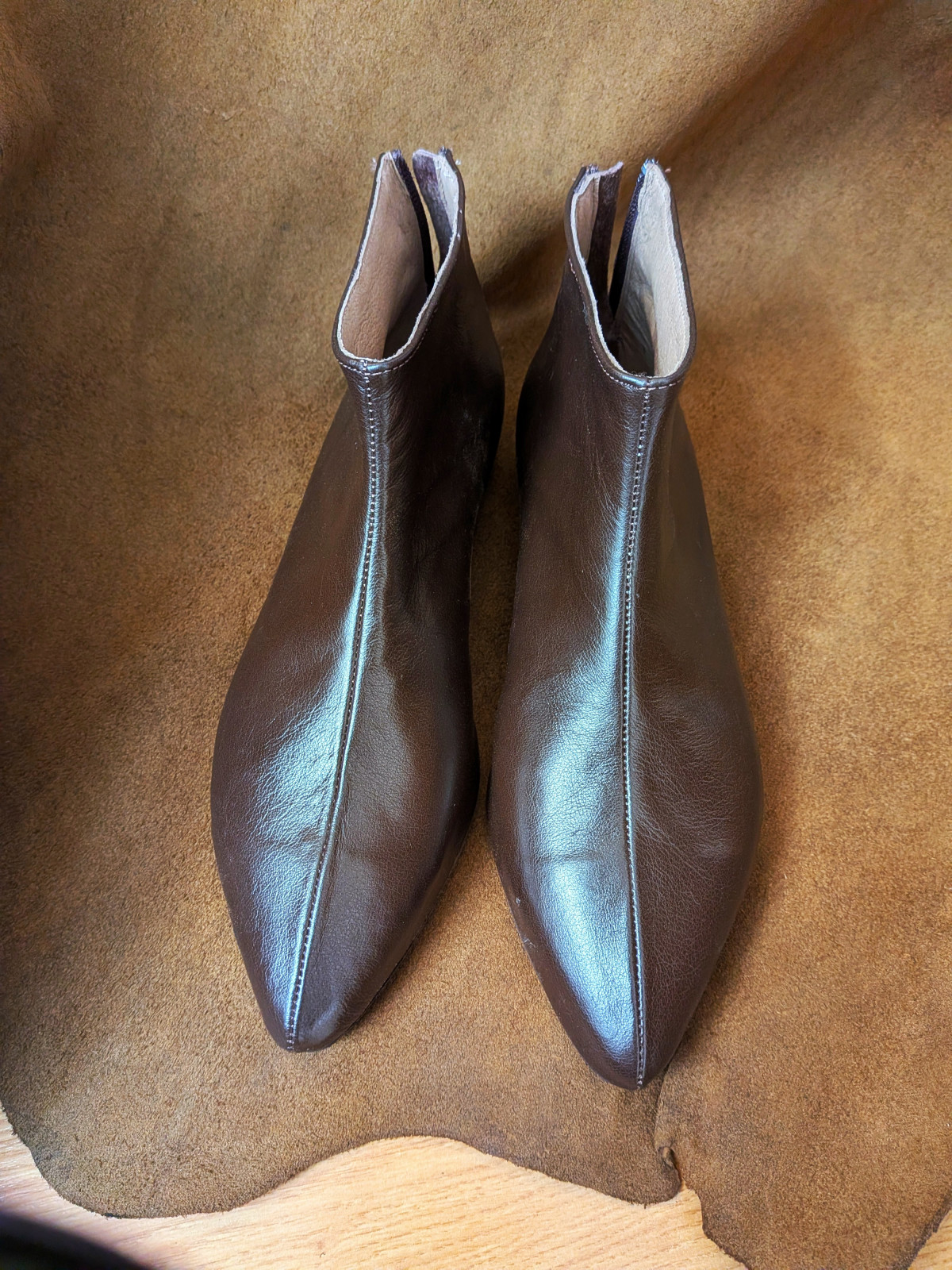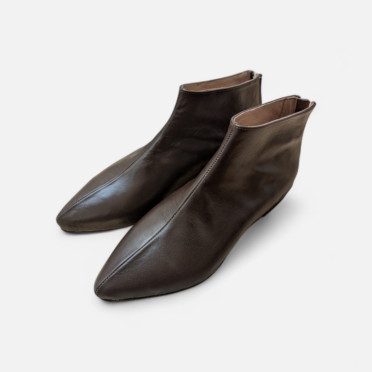 מגפון שטוח בגובה קרסול עם רוכסן מאחור. גובה מהסוליה עד קצה הרוכסן: 10סמ' - 11סמ'.