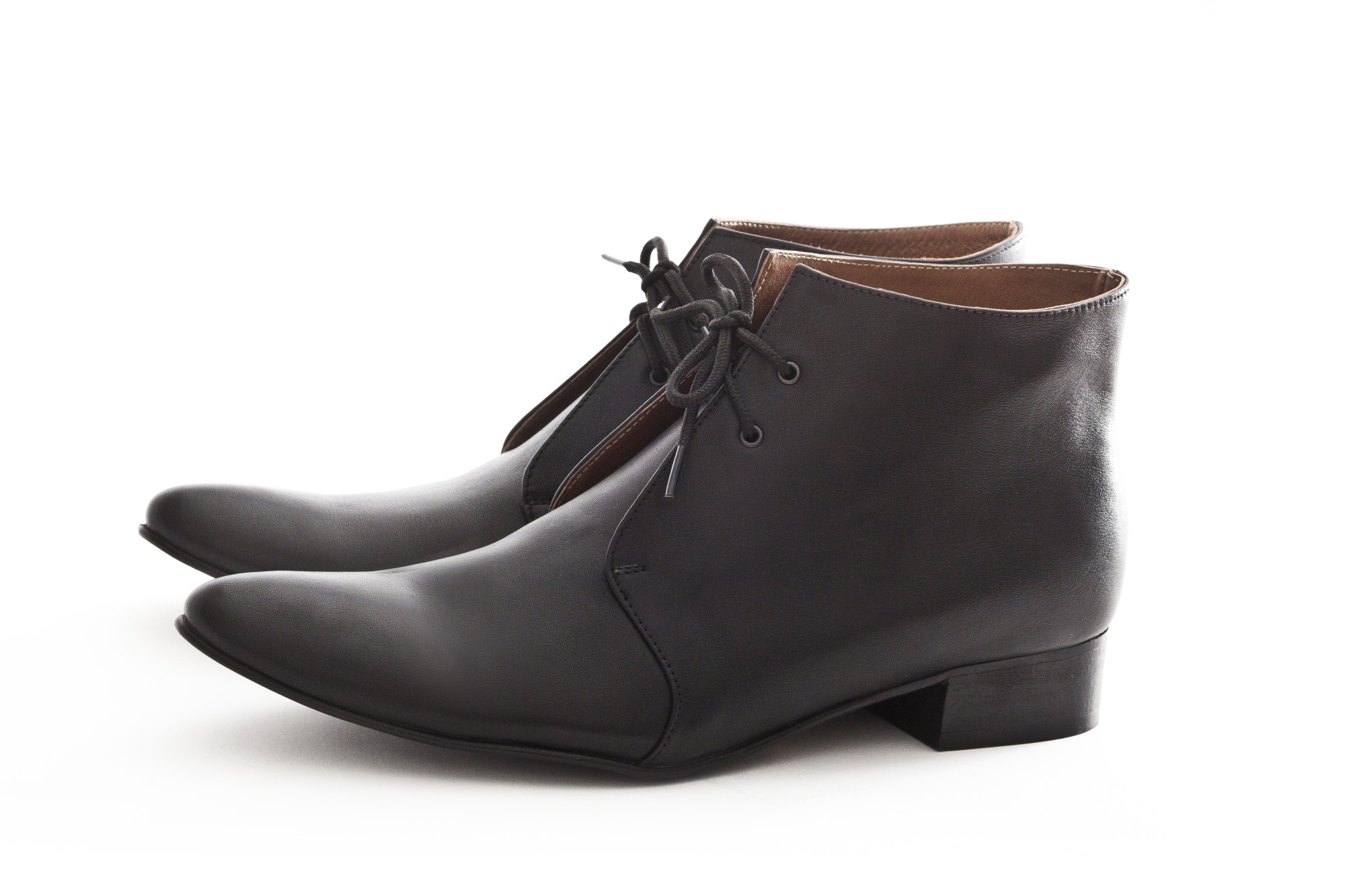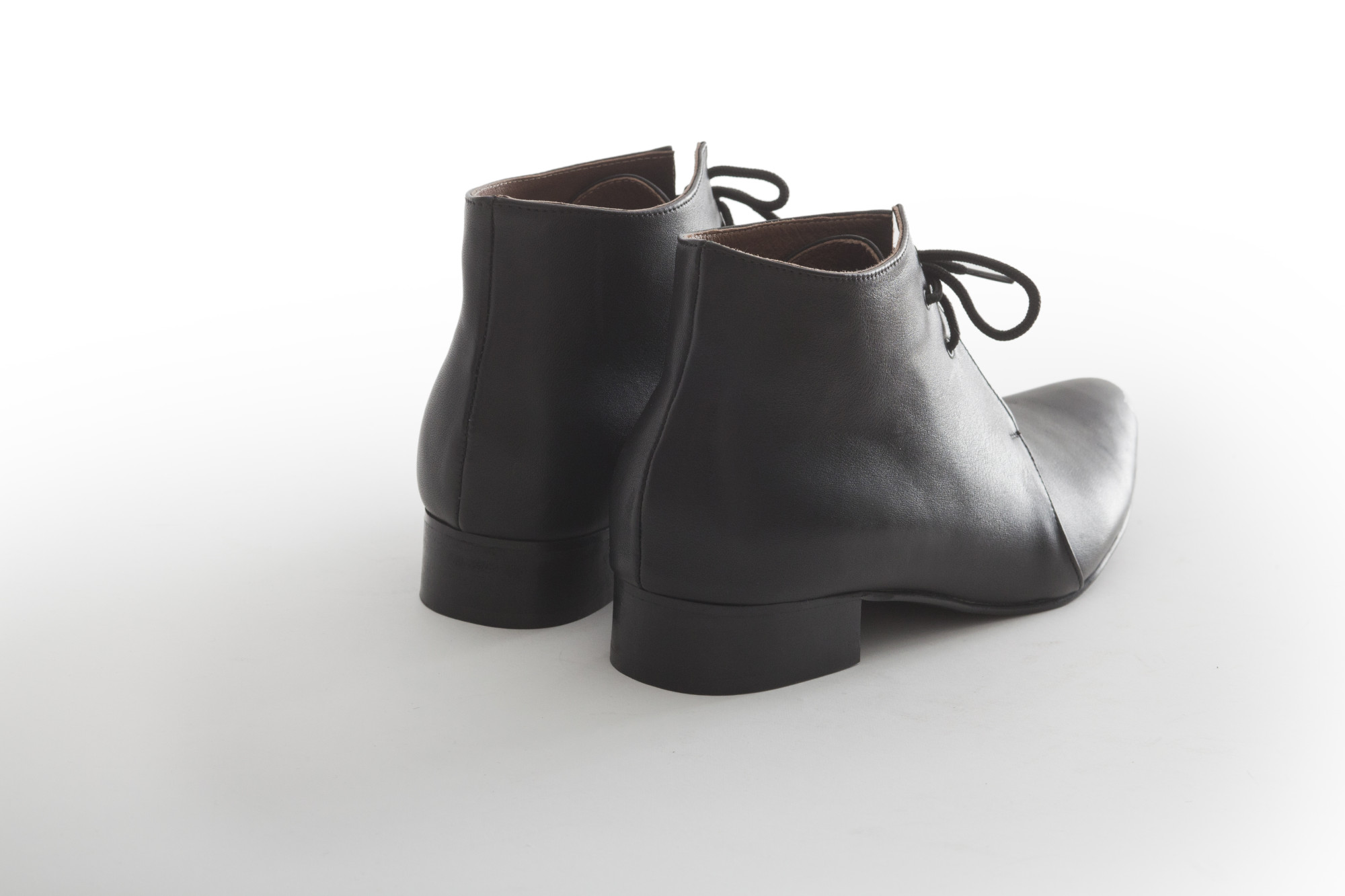 נעל גבוהה/מגפון עם שרוכים, גובה המגפון 11סמ' - 12סמ'. עקב בגובה עקב 2.5 סמ'. עור נאפה עם ברק עדין או מט.