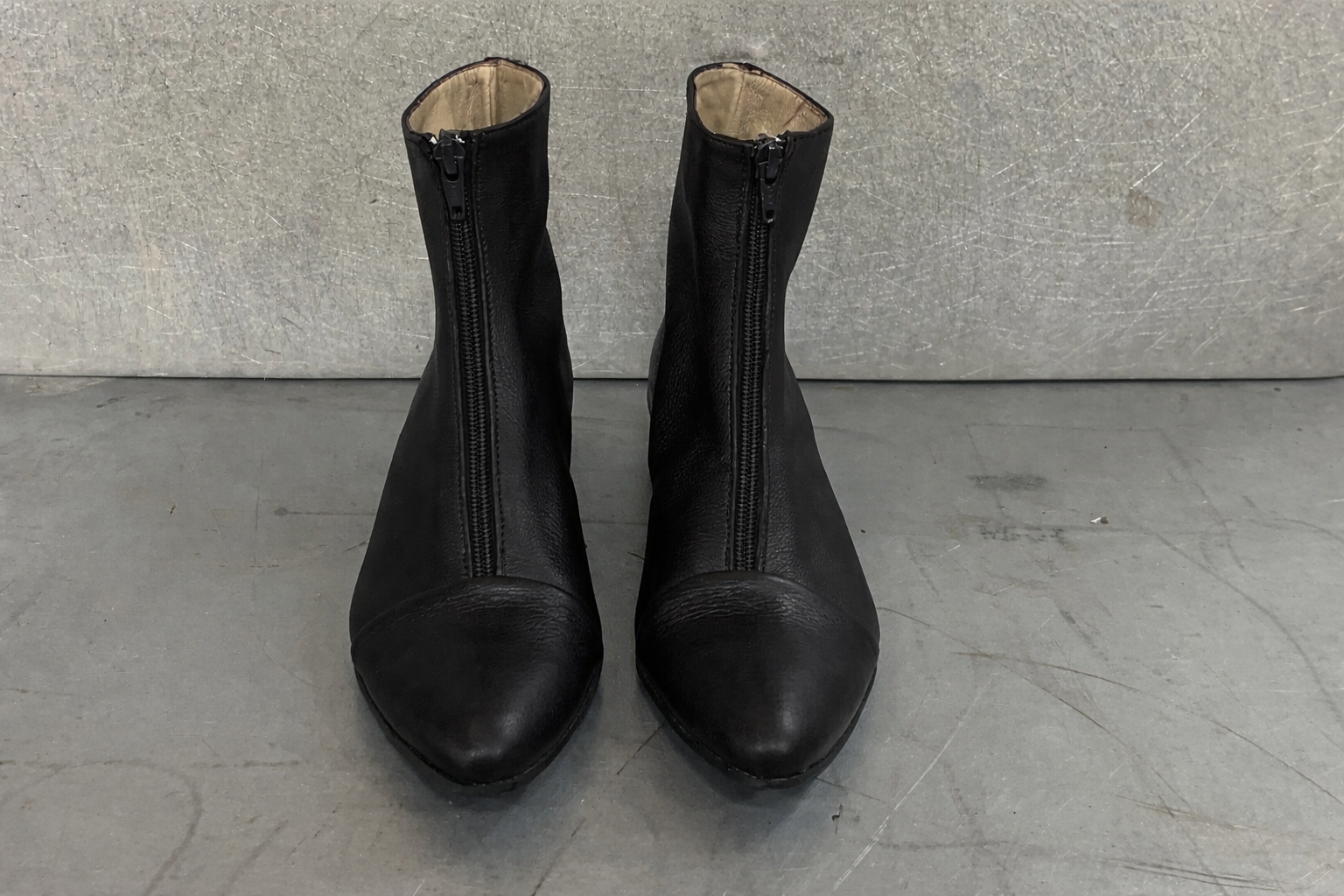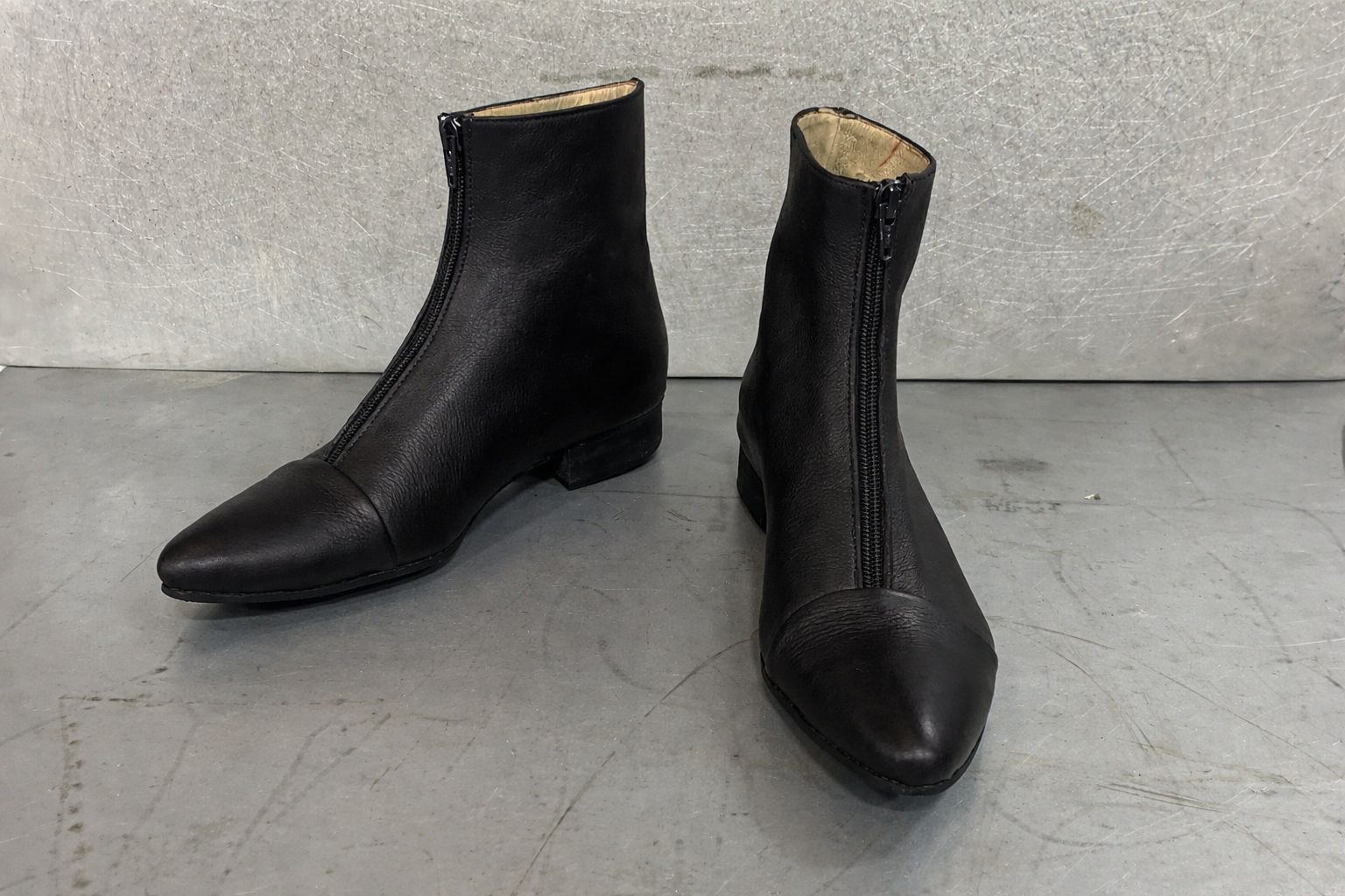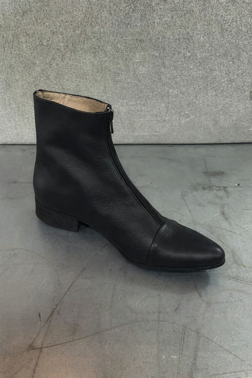 מגפון בגובה מעל הקרסול 14סמ' - 16סמ', עם רוכסן מקדימה ועקב בגובה 2.5 סמ'. בתמונה מעור רך ועבה עם טקסטורה.