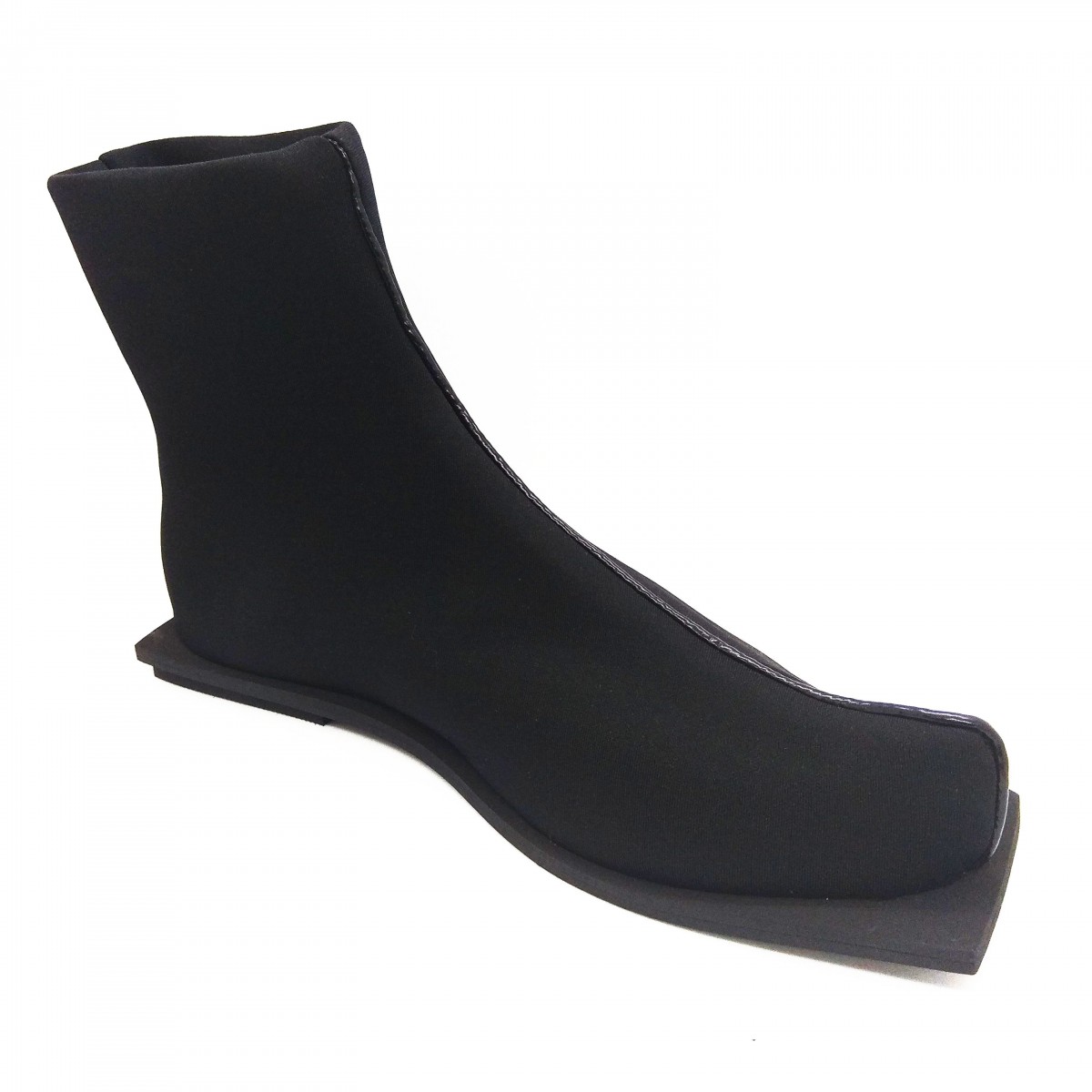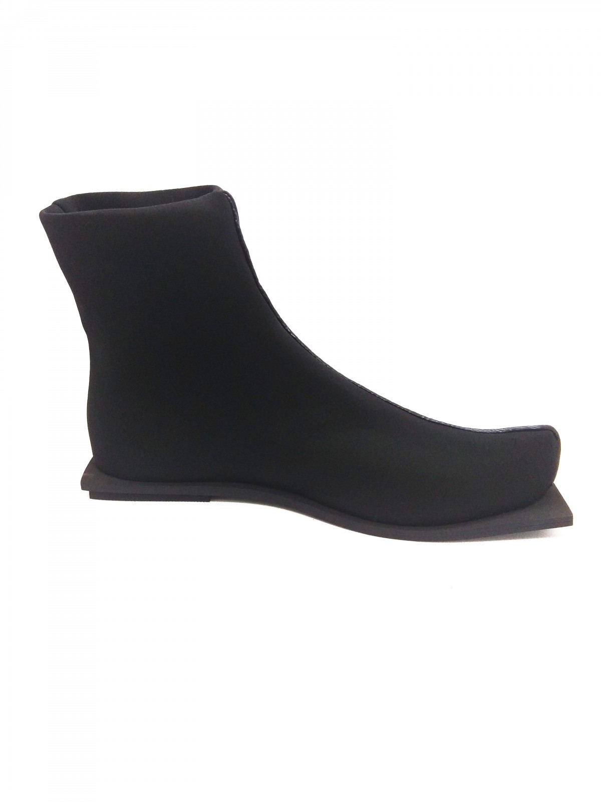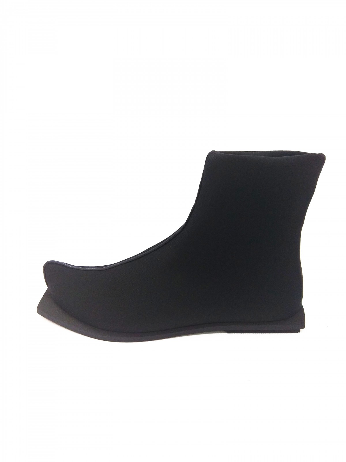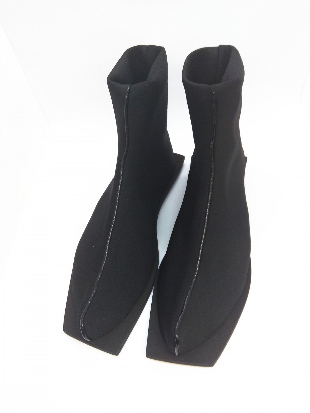 מגף עשוי בד לייקרה עבה וגמיש, פספול דמוי עור, על סוליה מרובעת. שימו לב: המידות גדולות!