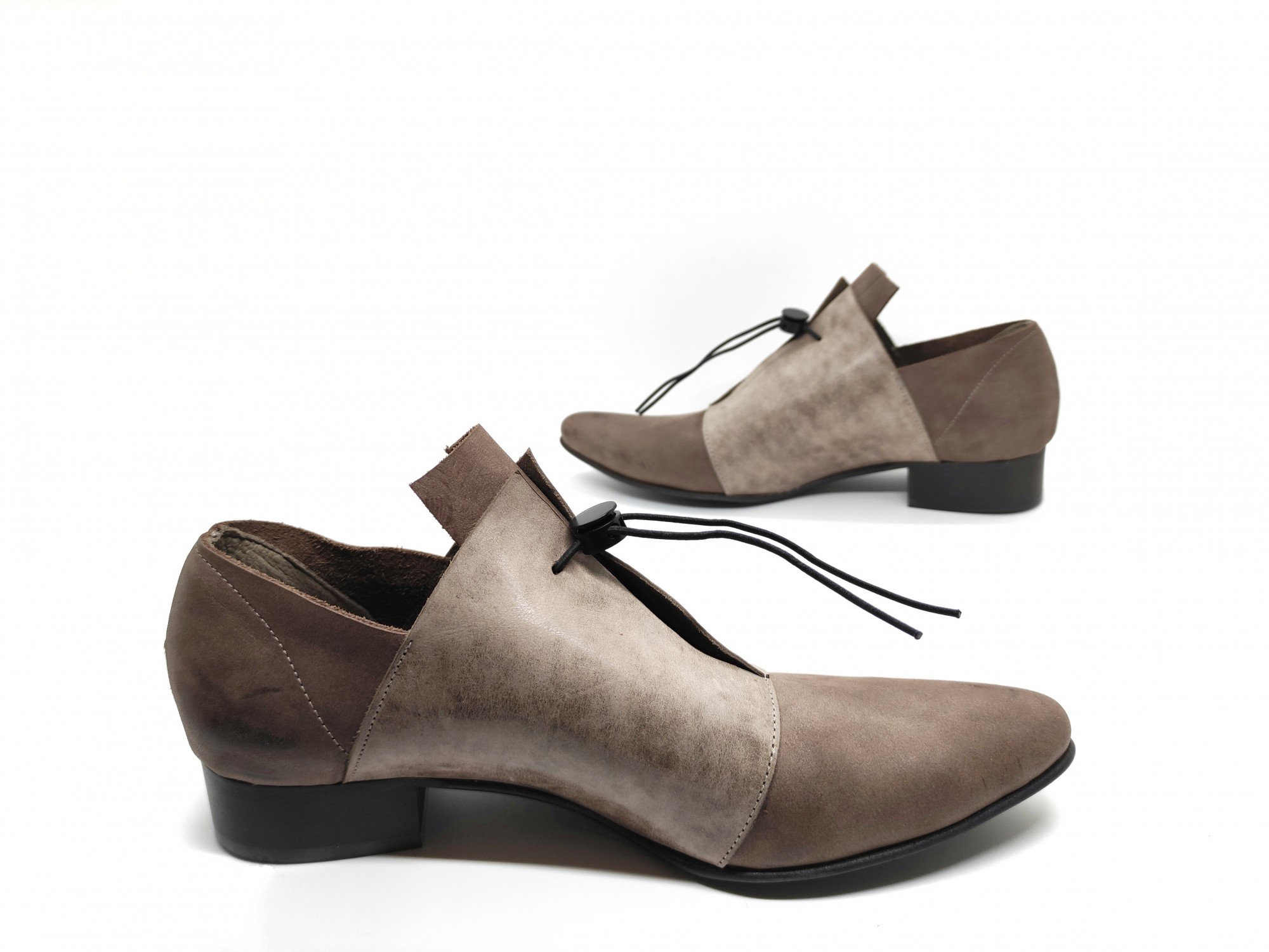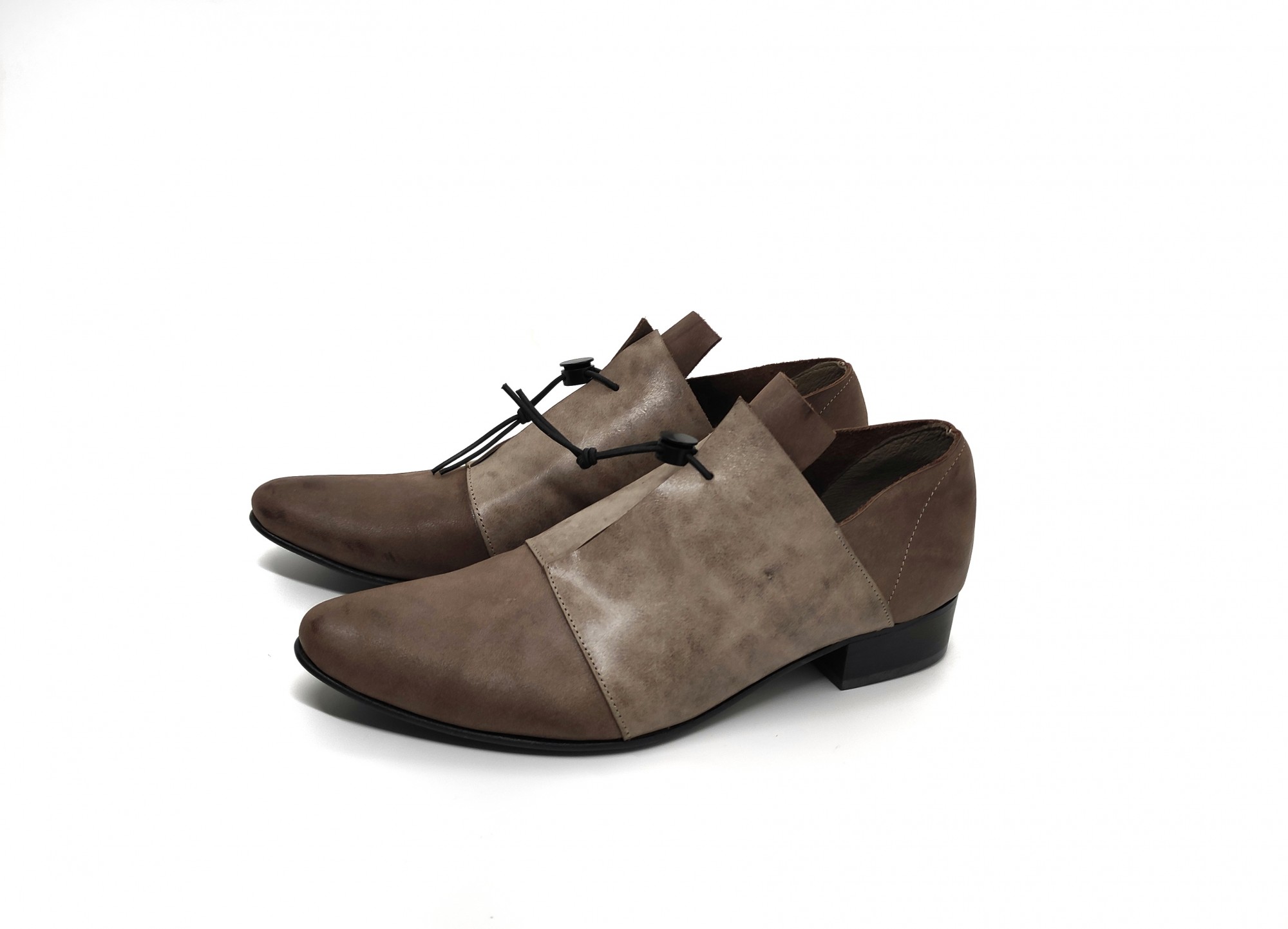 נעל בשילוב שני עורות, סגירת סטופר או שרוך רגיל, גובה עקב 2.5 סמ'.