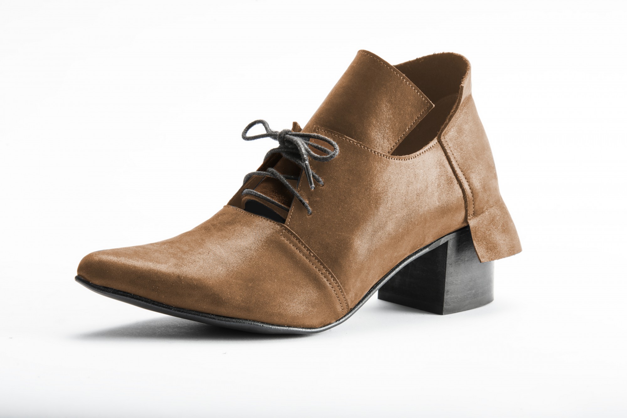 נעל שרוכים מכשפת עם עקב בגובה 5 סמ', ו"חצאית" שיורדת על העקב. יש לבחור מידה אחת יותר גדולה מהמידה הרגילה שלך.