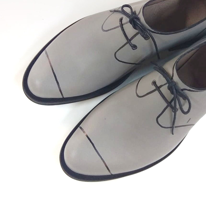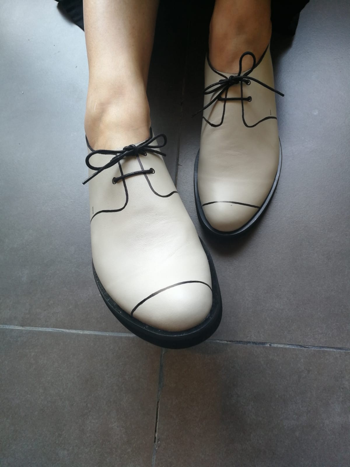 נעלים מצויירות ביד, רוכסן מאחור ושריכה ב"כאילו", גובה עקב 1.5סמ'.