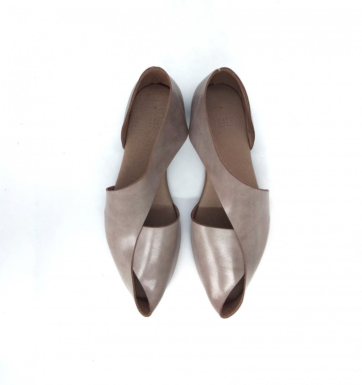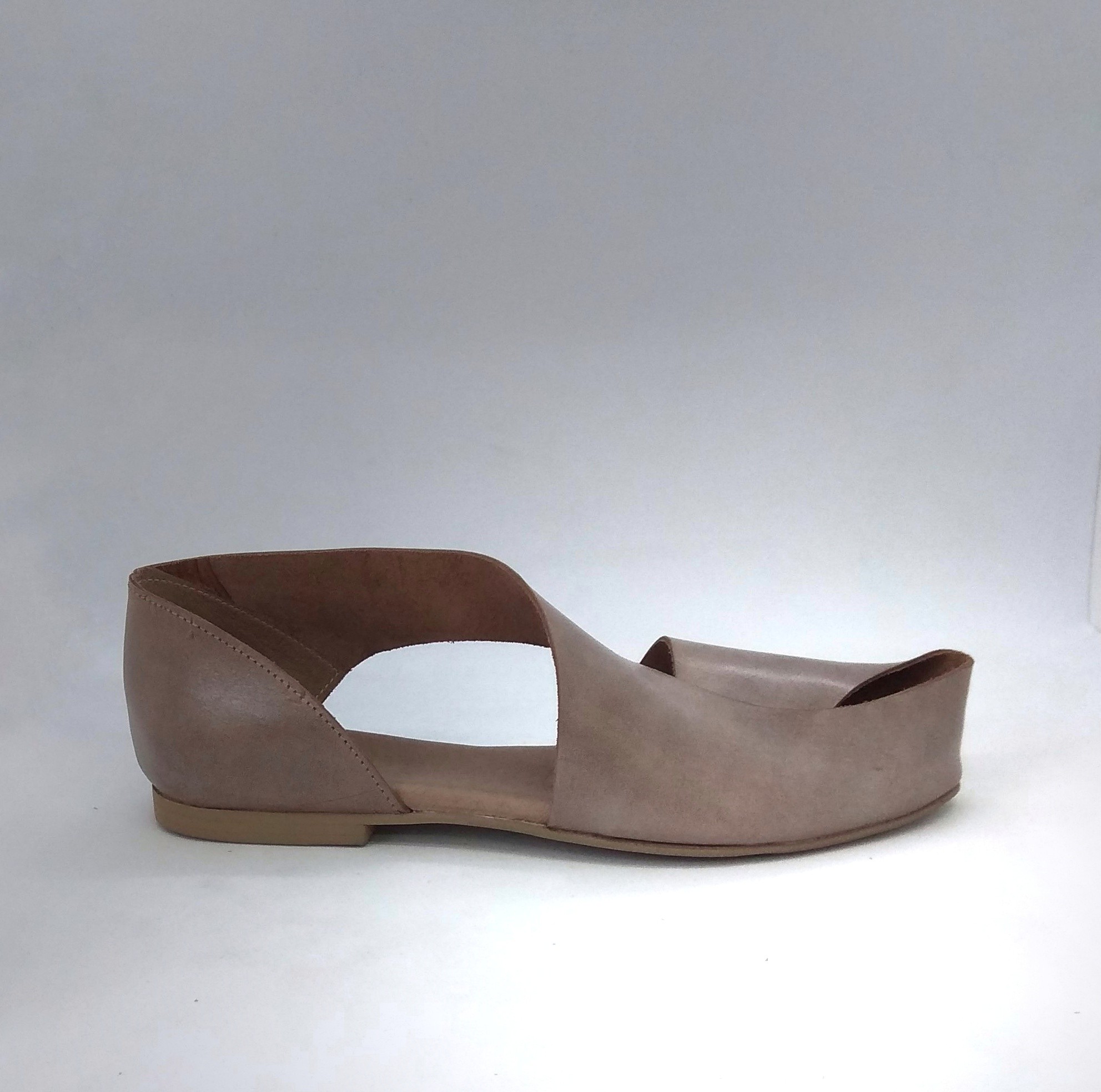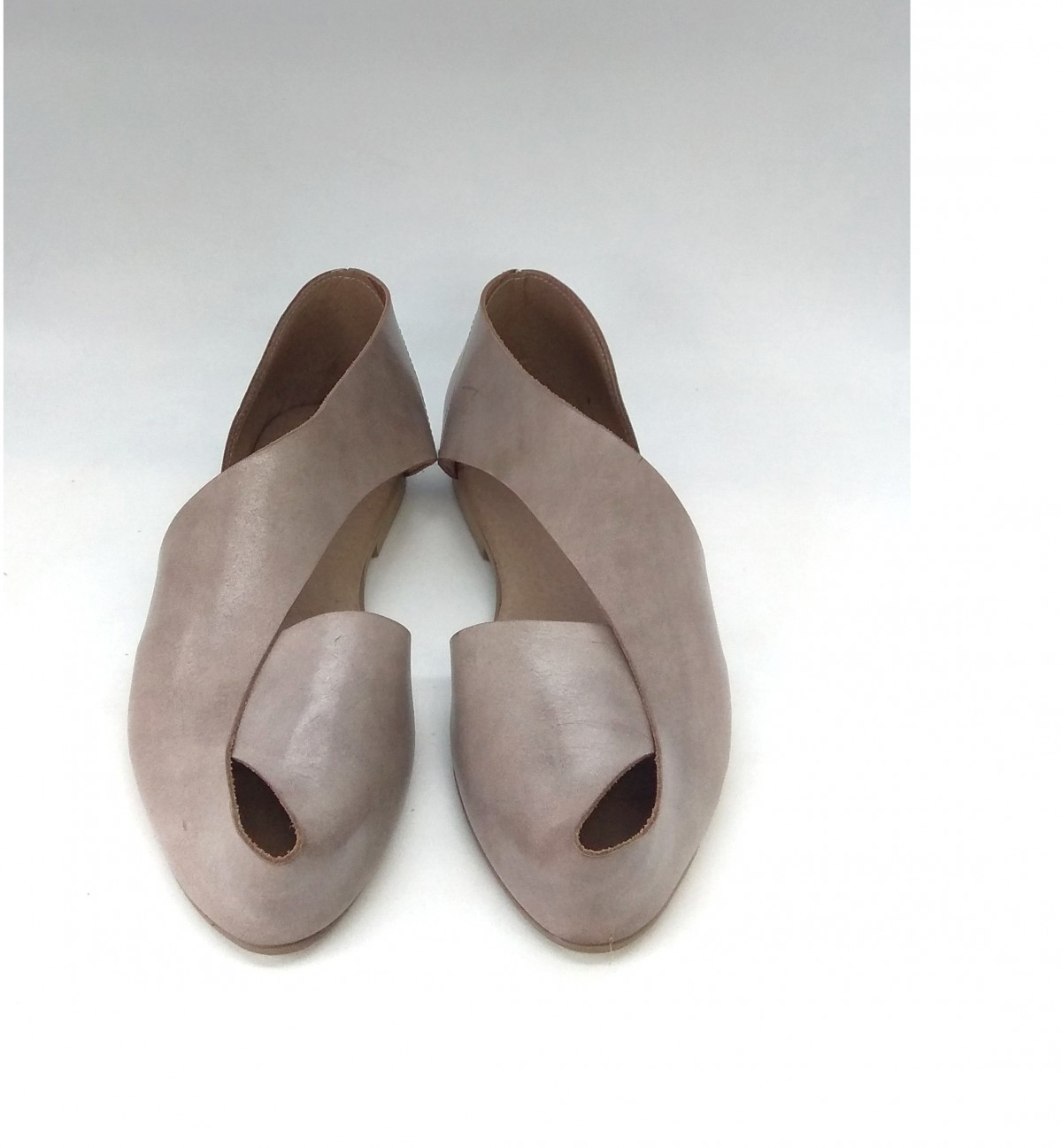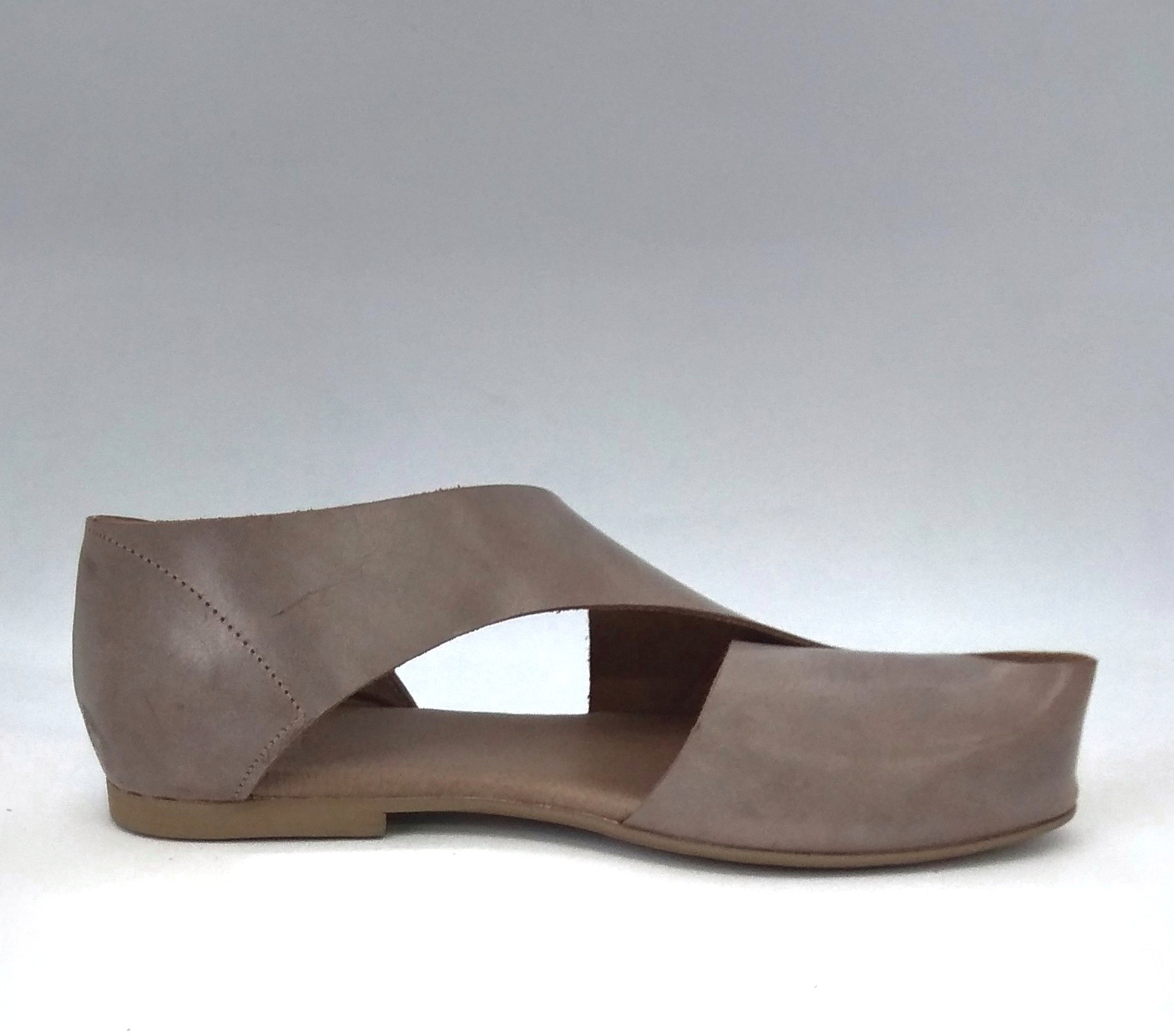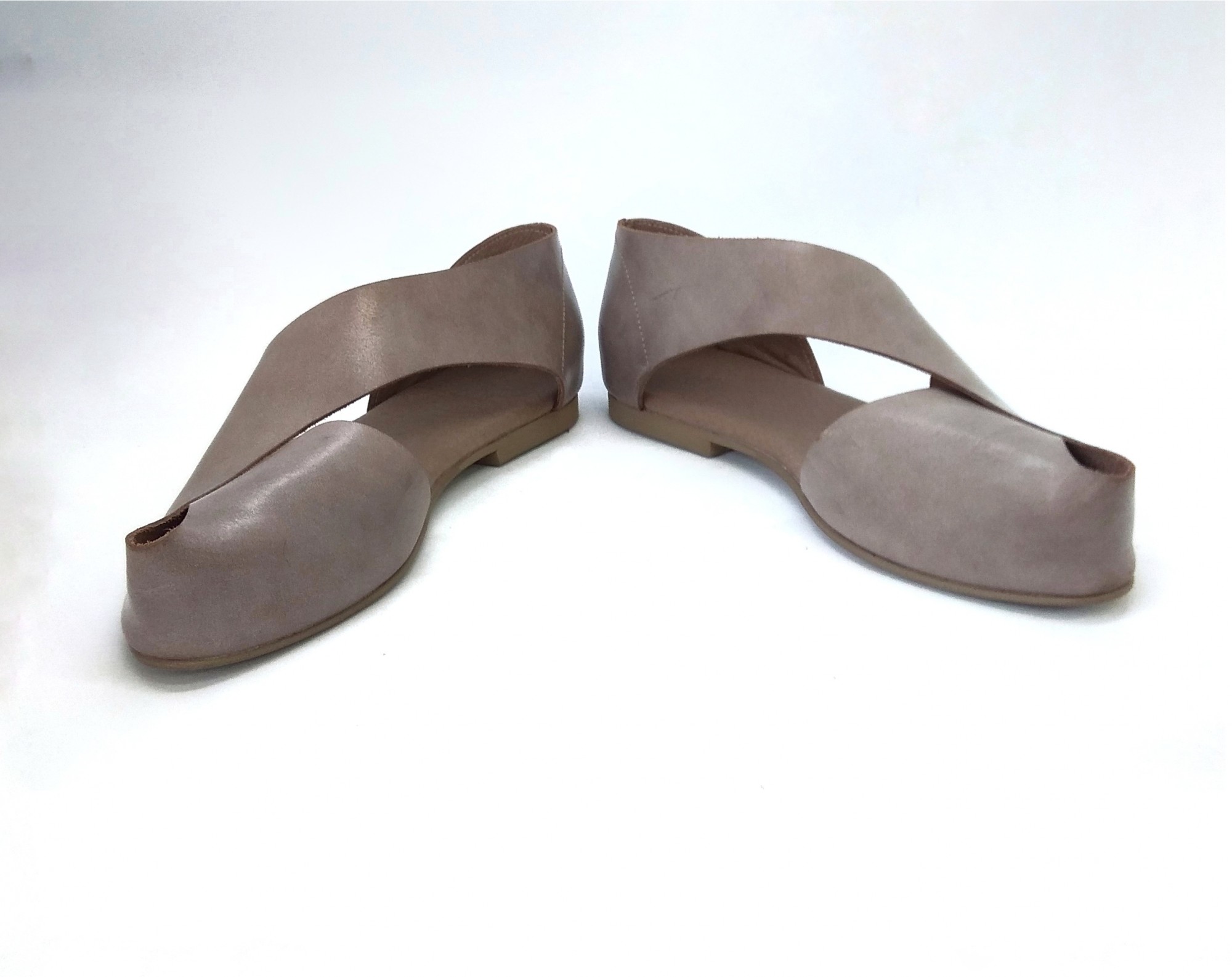 סנדל שטוח, בהונות מציצות רק מלמעלה, רפידת לטקס מצופה עור.