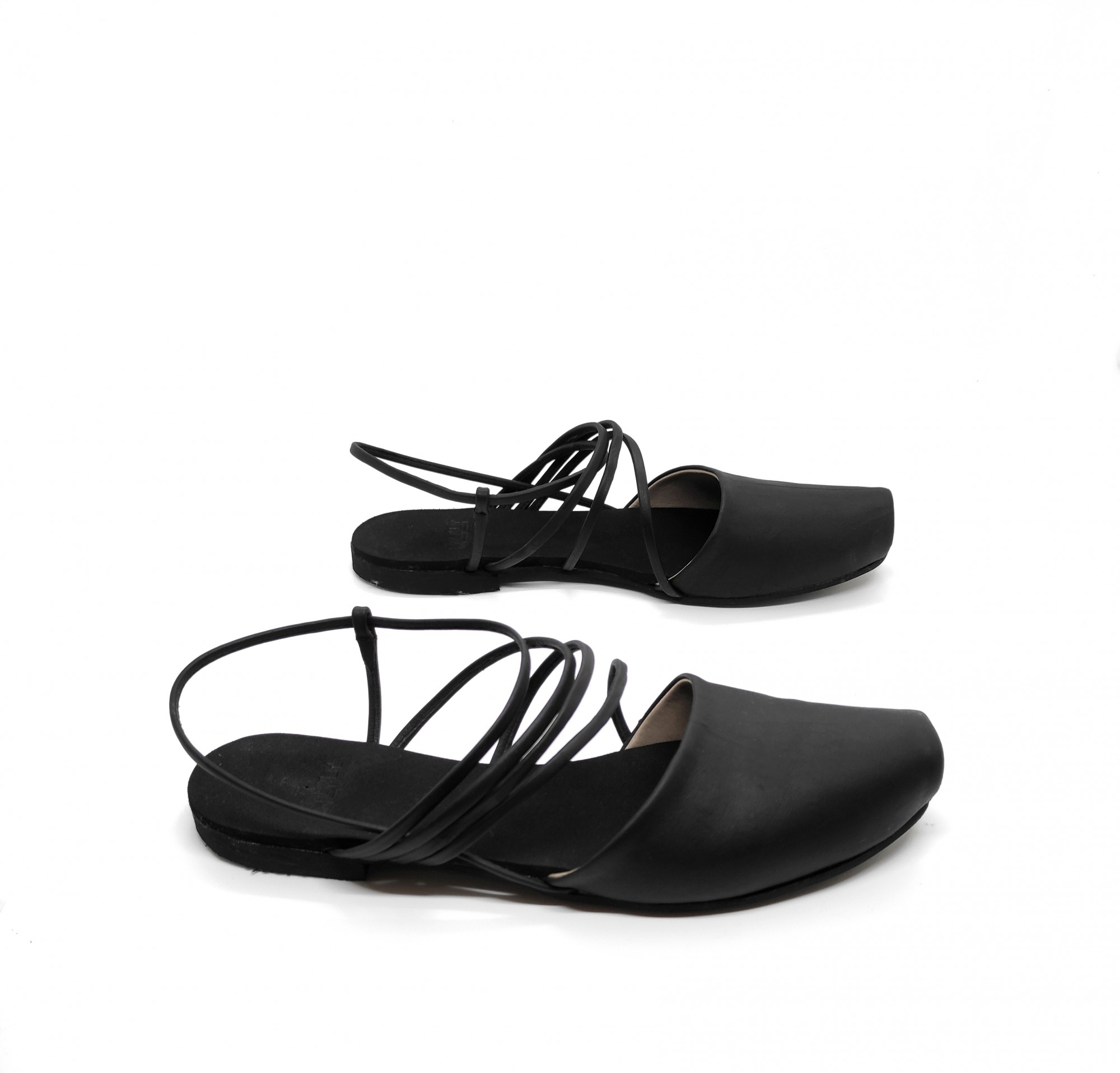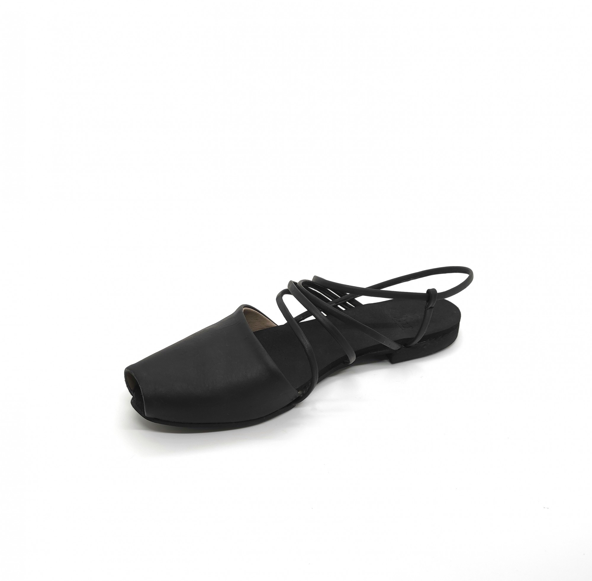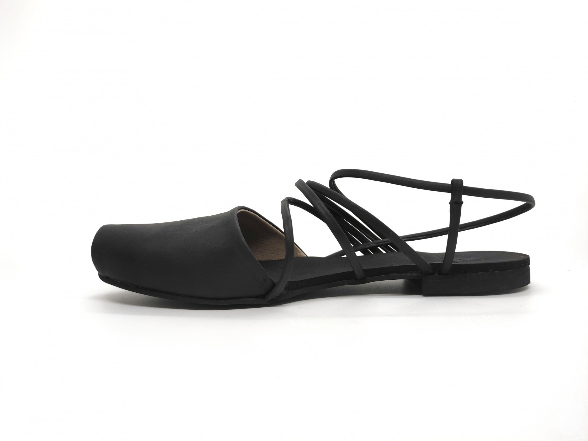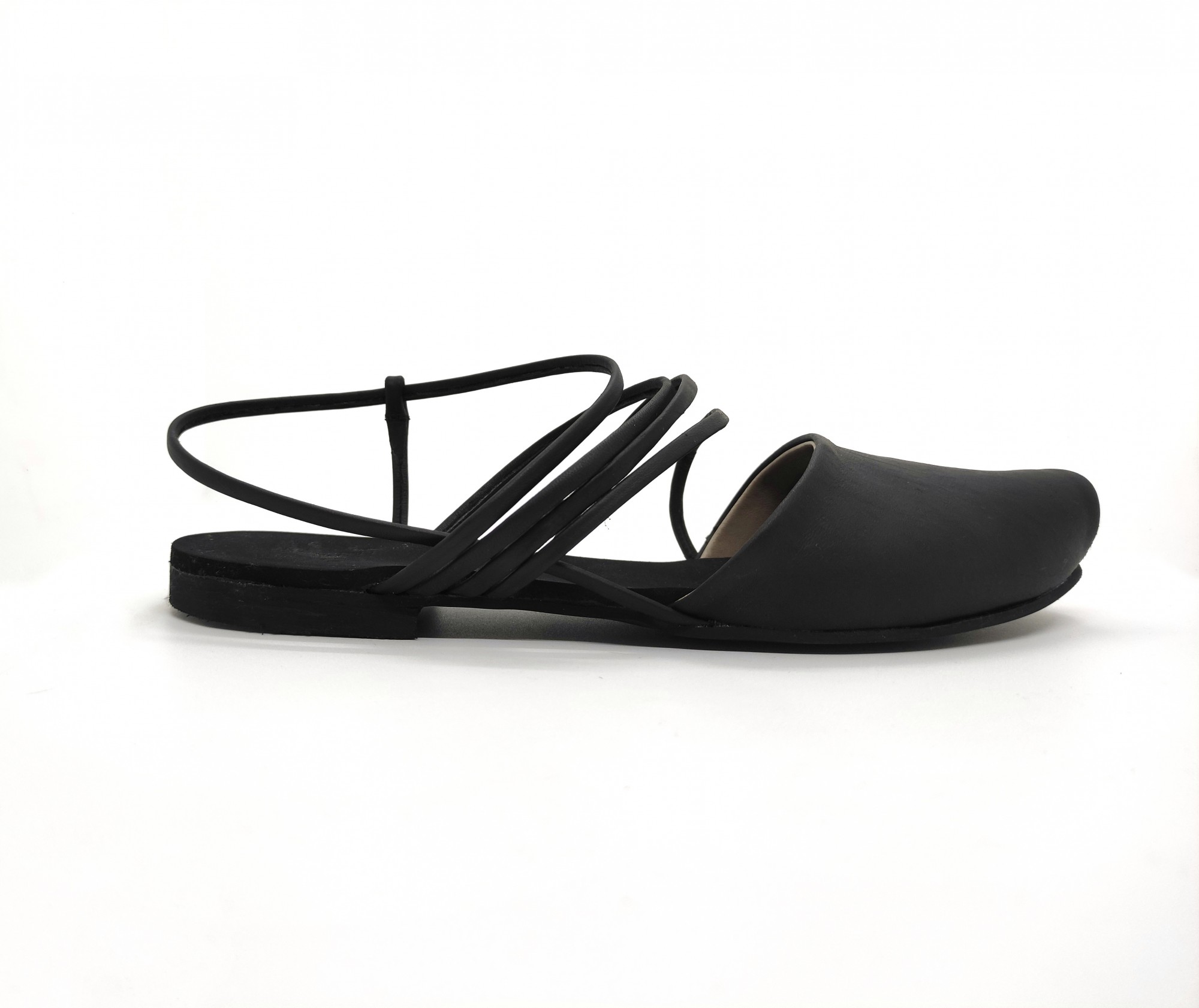 נעל שטוחה עם רצועות ללא אבזם. פתח קדמי, לא רואים בהונות.