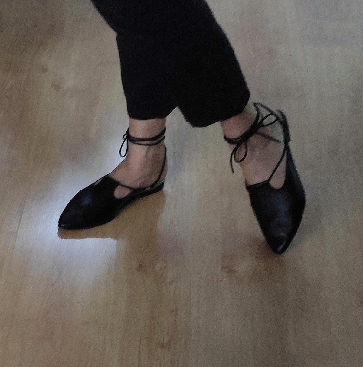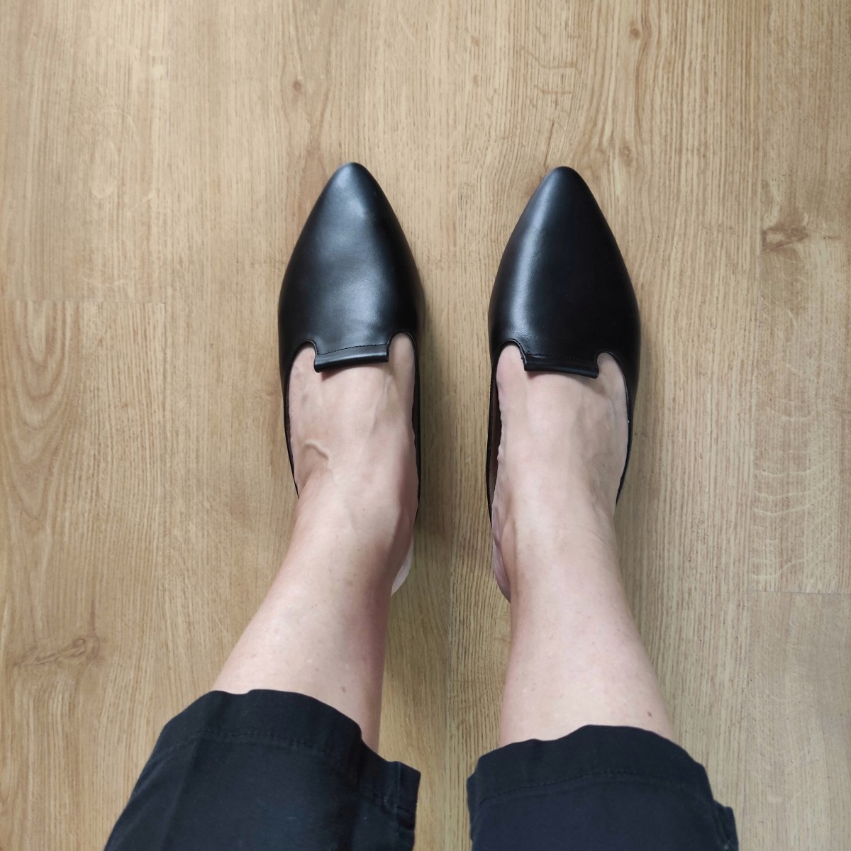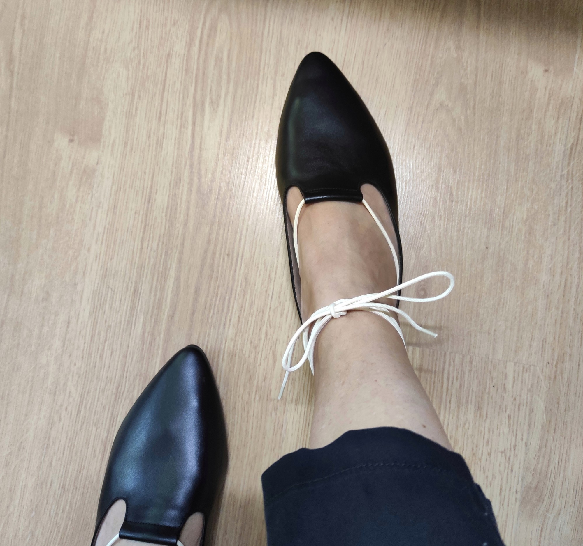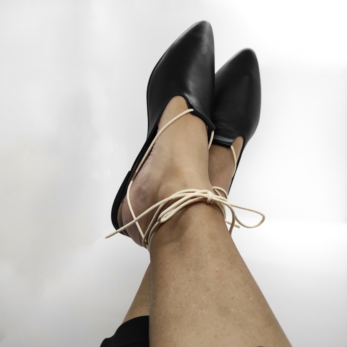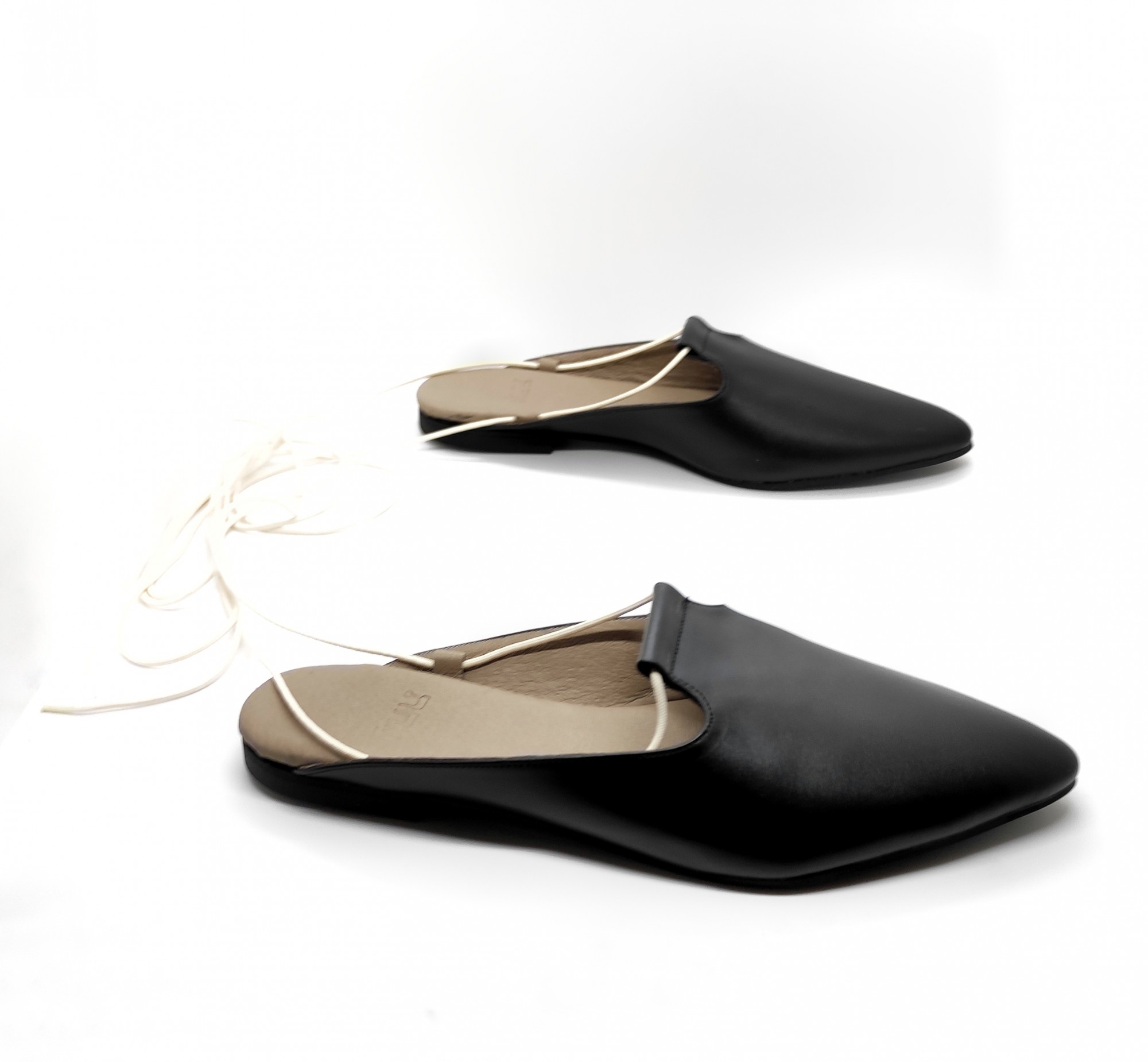 כפכף שטוח, ניתן לנעול עם או בלי שרוכים, שפיץ מתון. רפידת לטקס מצופה עור.
