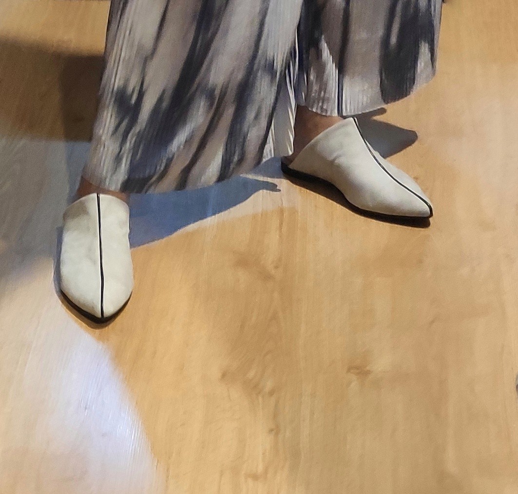 כפכף שטוח עם שפיץ מתון. רפידת לטקס מצופה עור