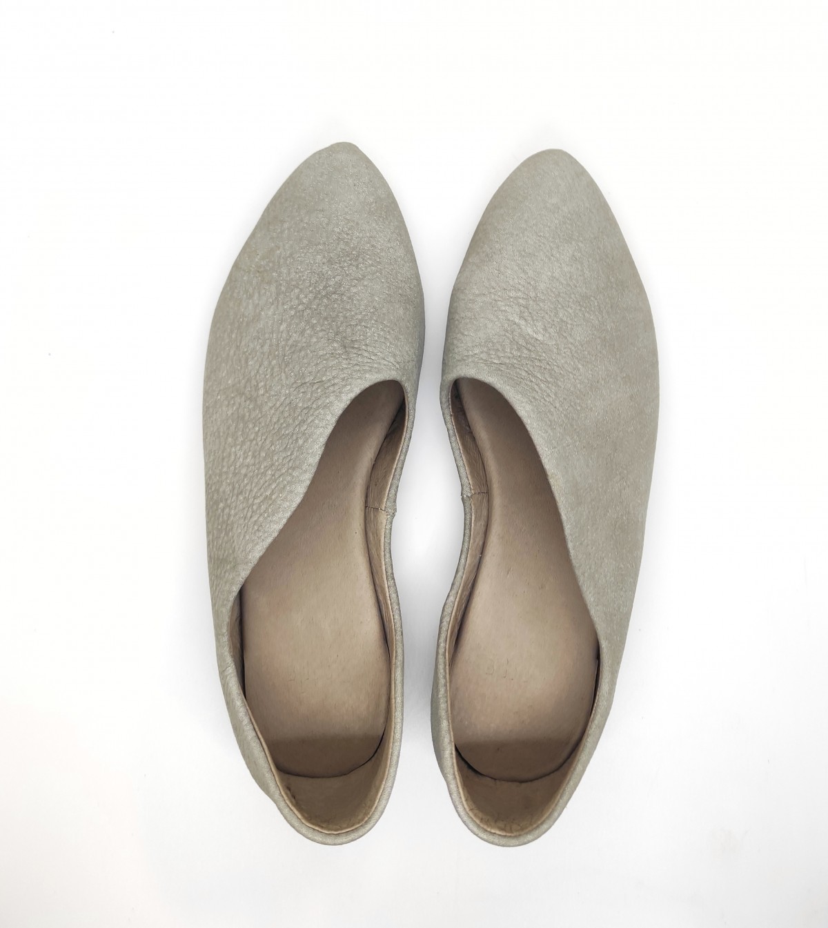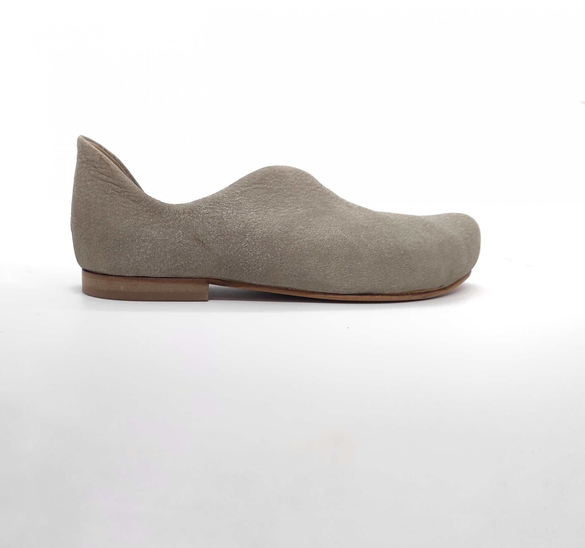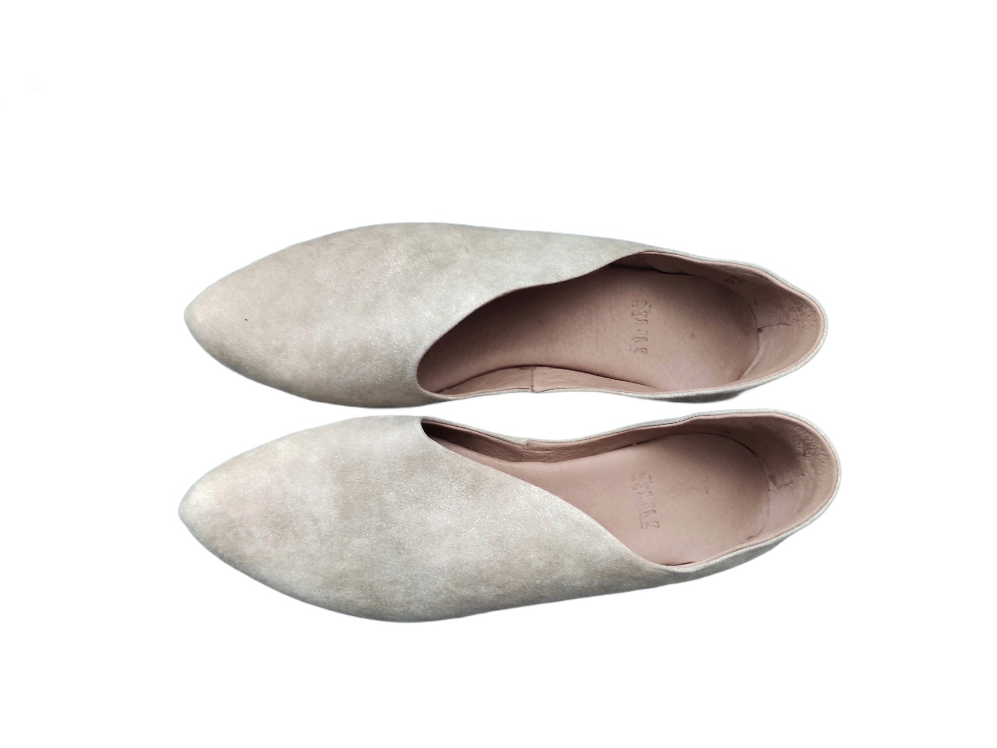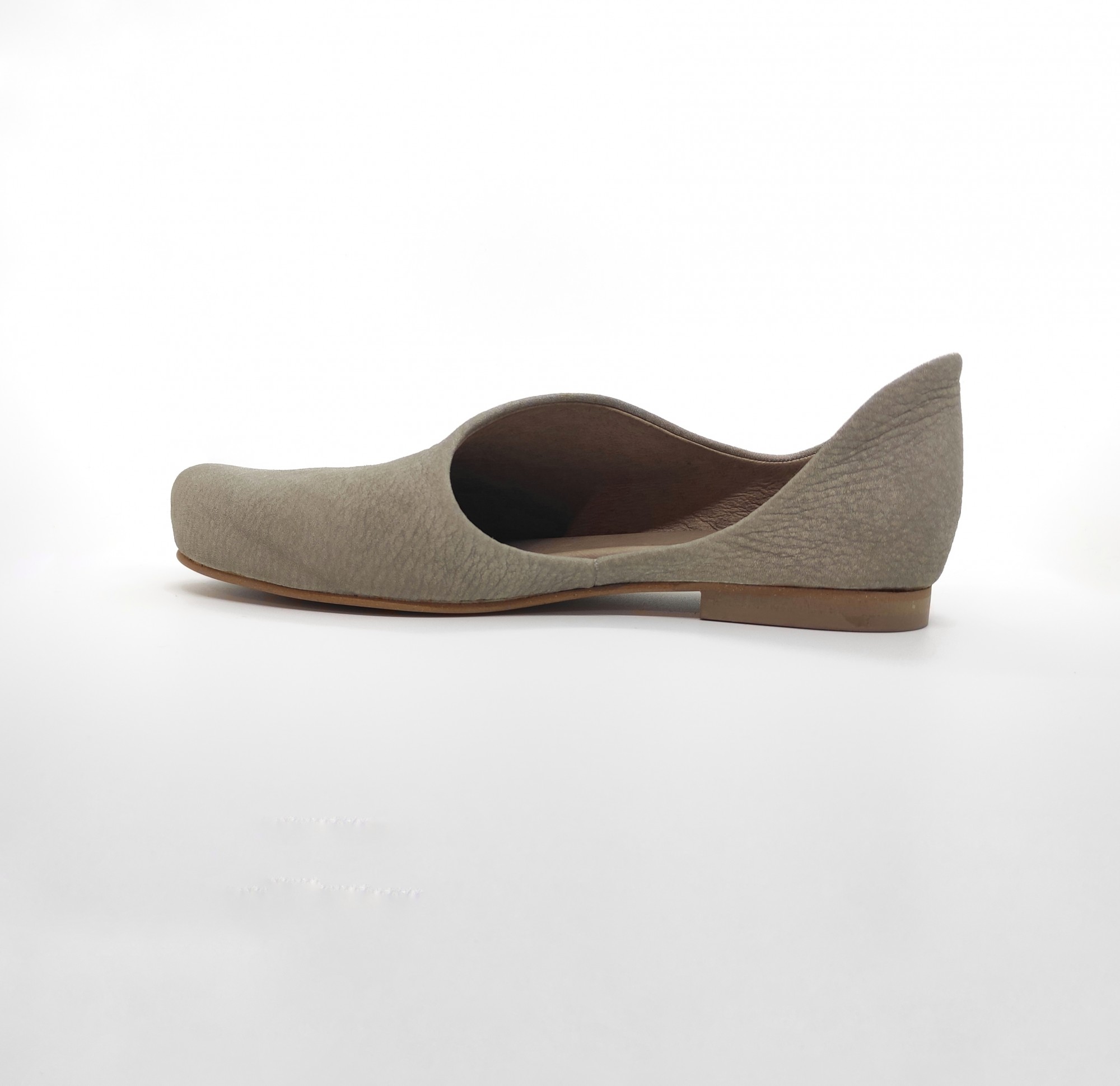 נעל סליפ -און שטוחה אסימטרית מחתיכת עור אחת. רפידת לטקס מצופה עור. מידה גדולה!!