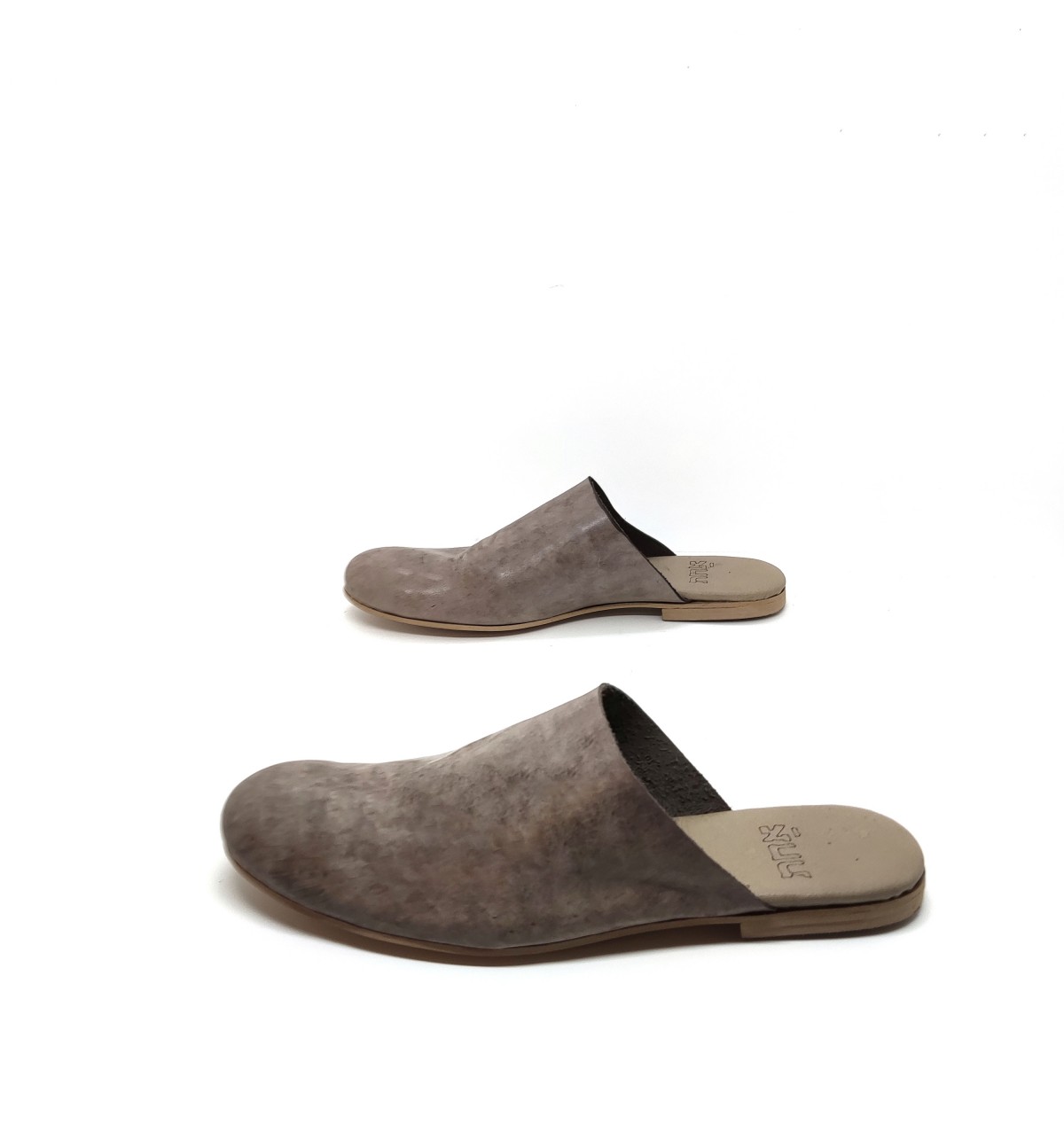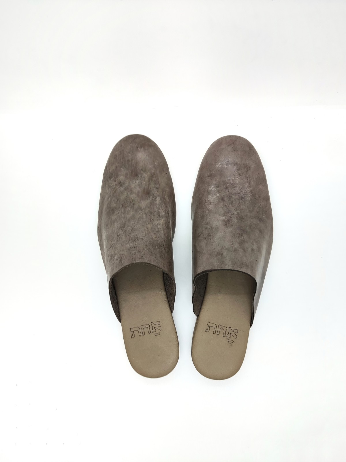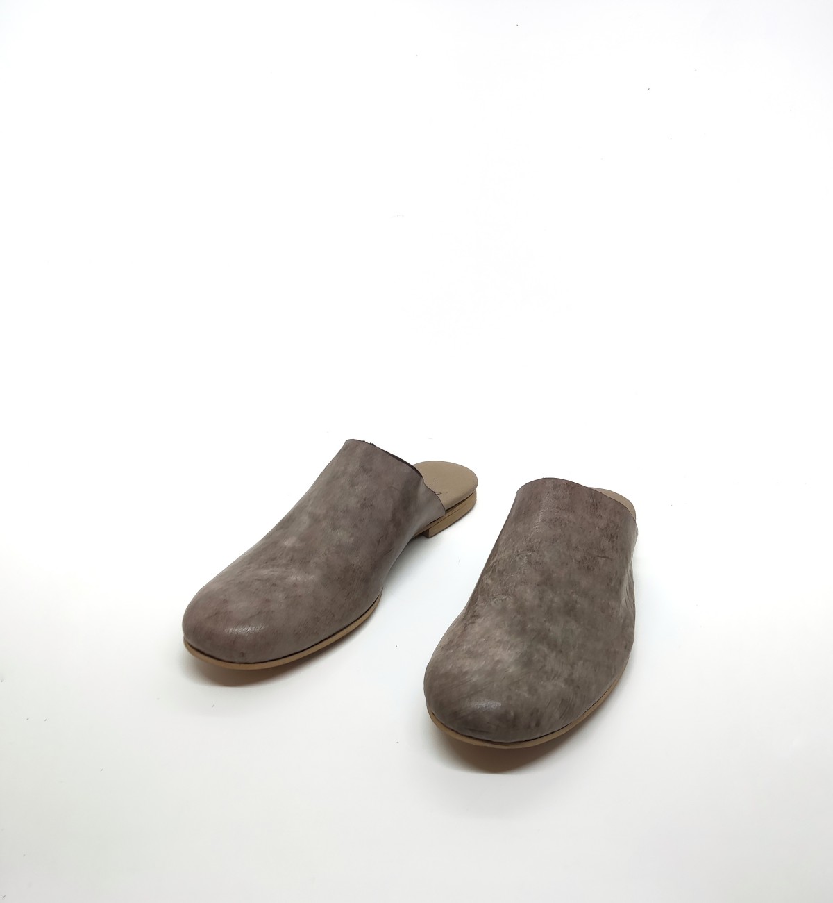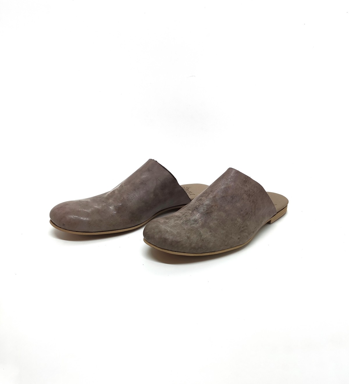 כפכפים שטוחים עם חרטום מעוגל, עור רך. רפידת לטקס מצופה עור.