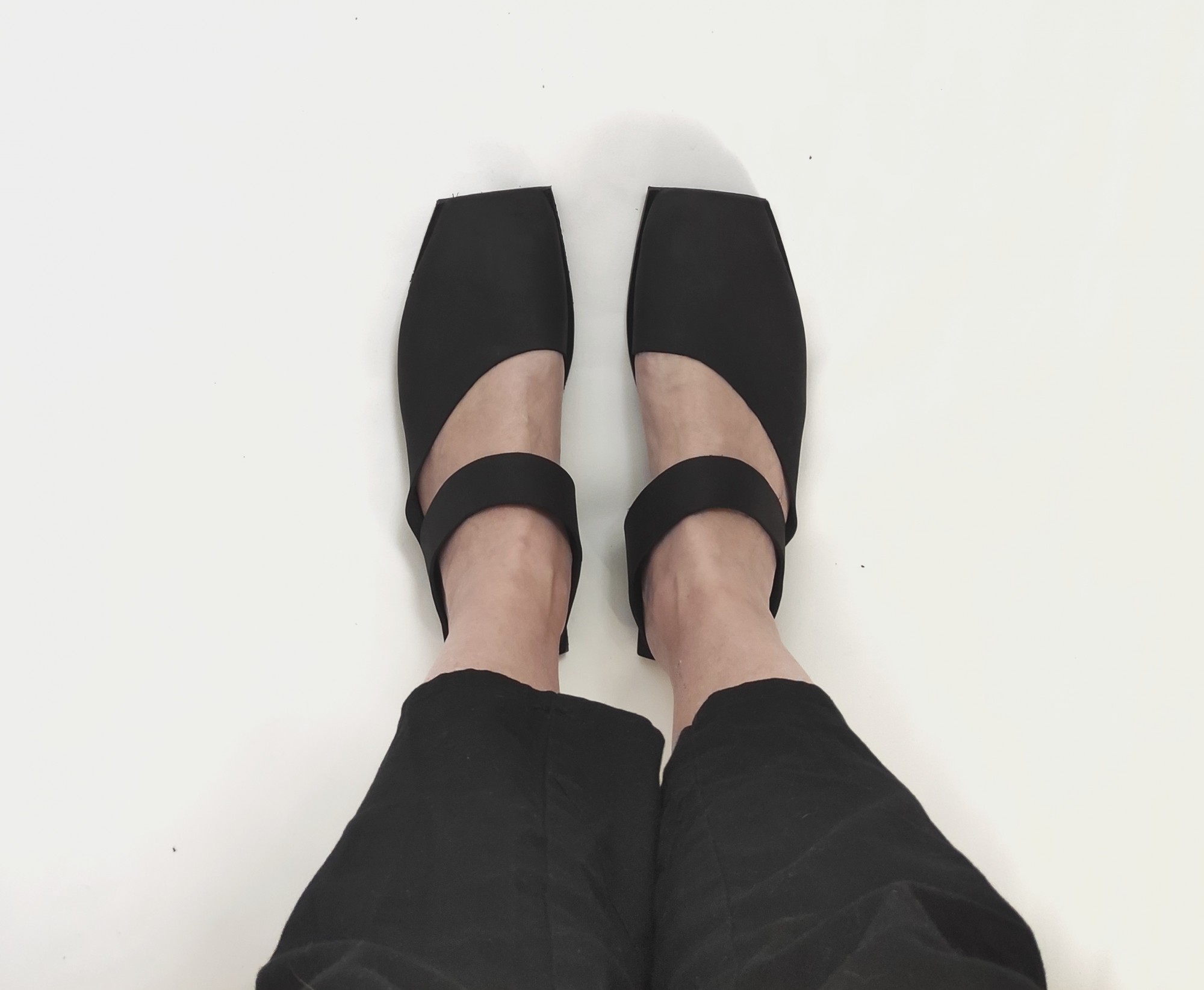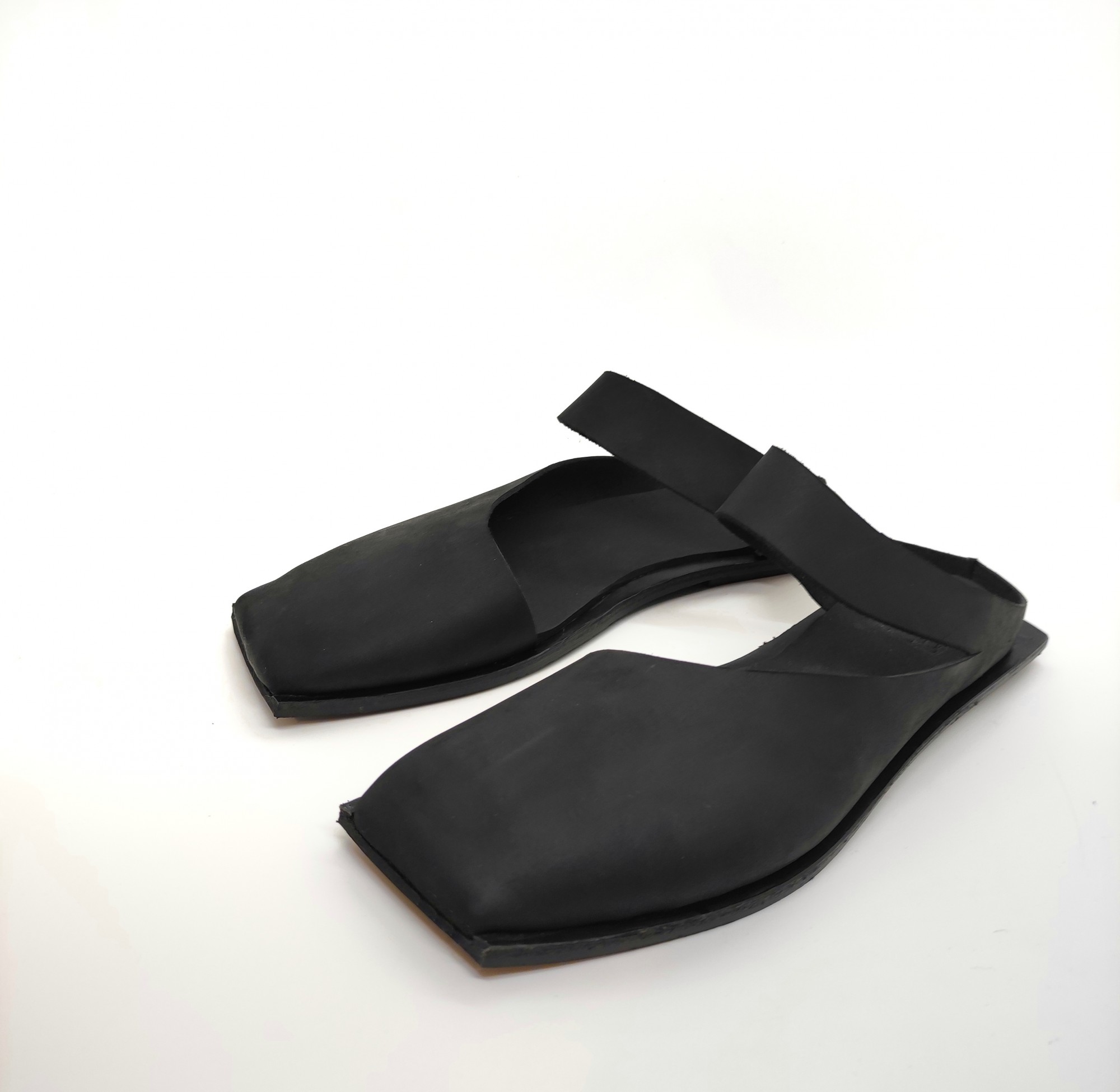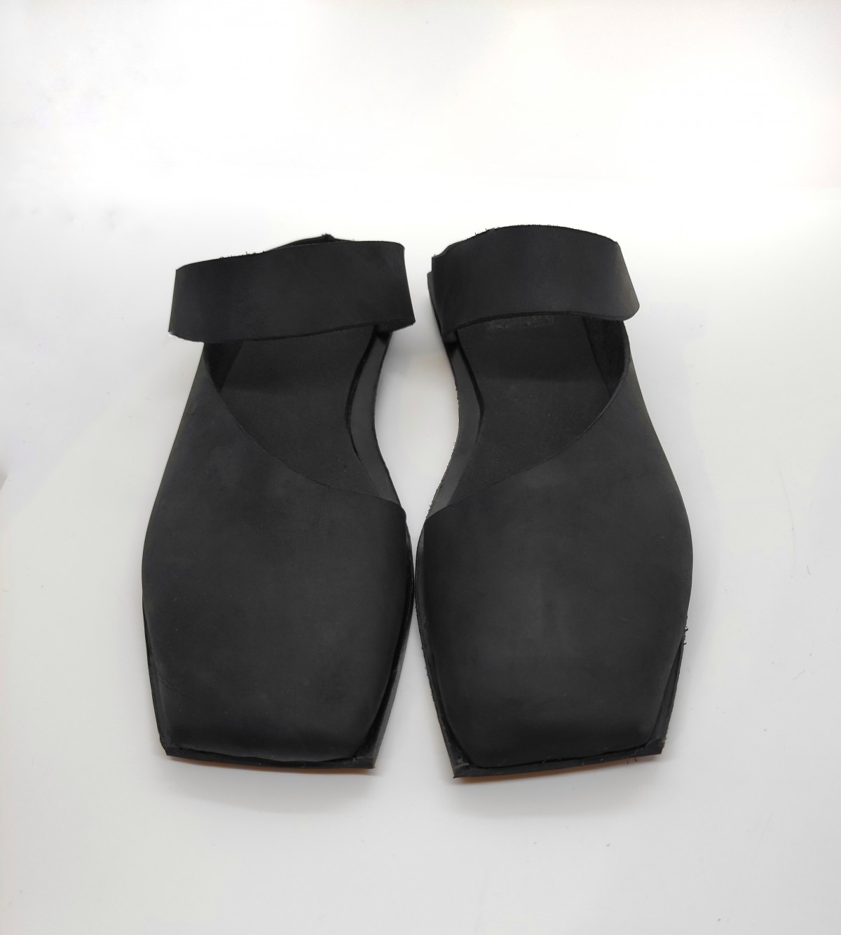 כפכף מרובע שטוח עם רצועה רוחבית ללא אבזם. רפידת ספוג גומי.