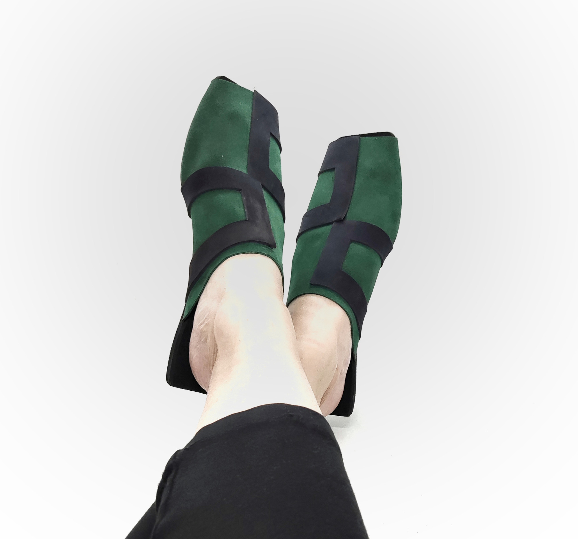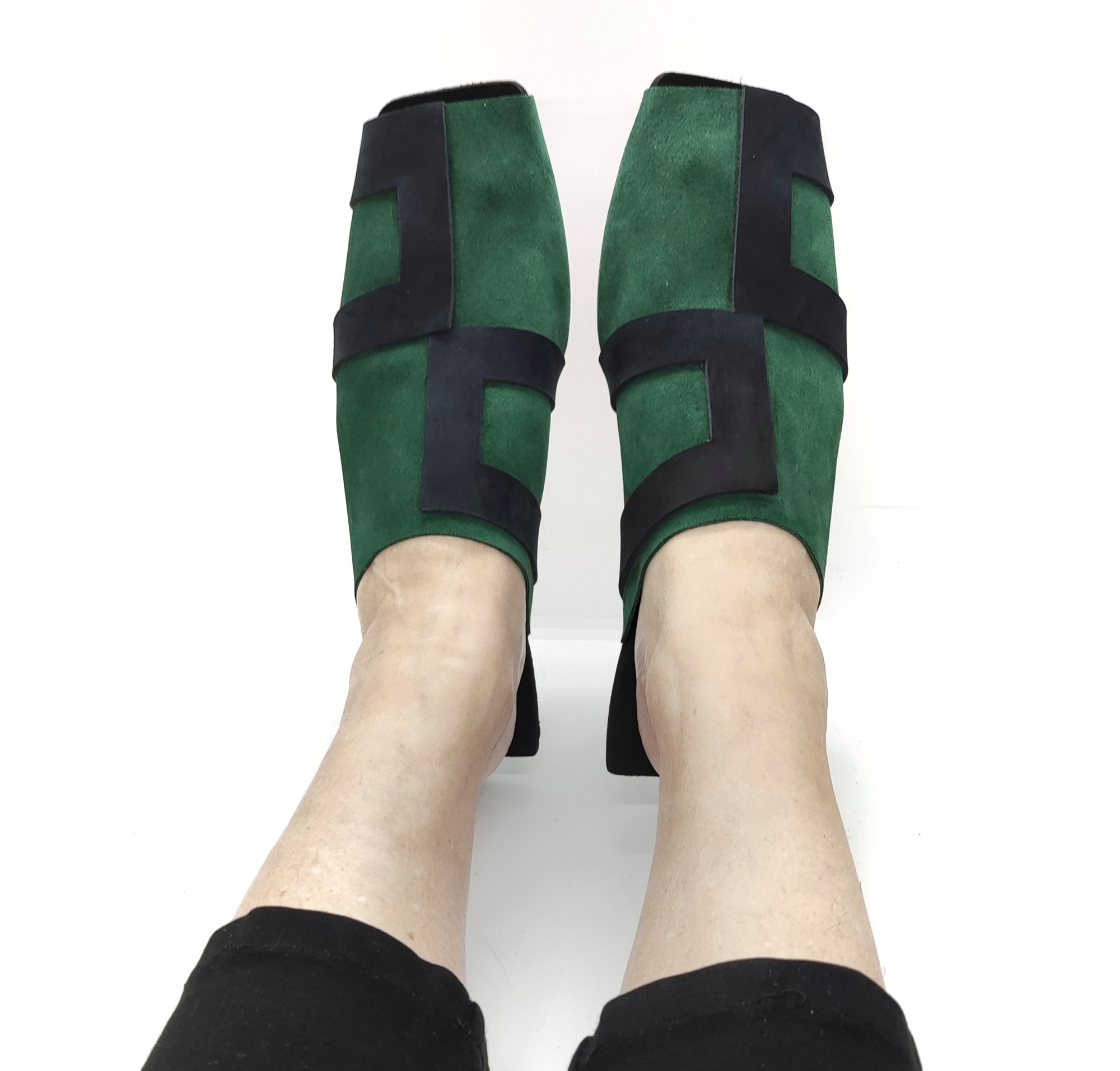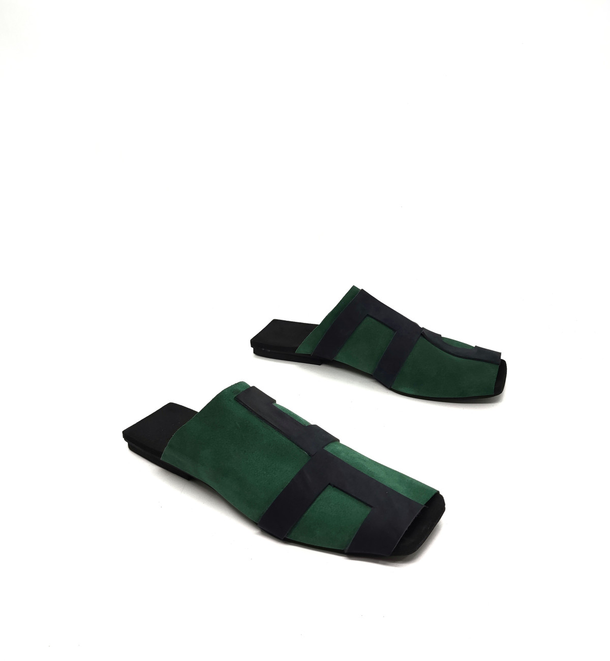 כפכף מרובע שטוח, קצה קדמי פתוח אבל לא רואים בהונות. רפידת ספוג גומי