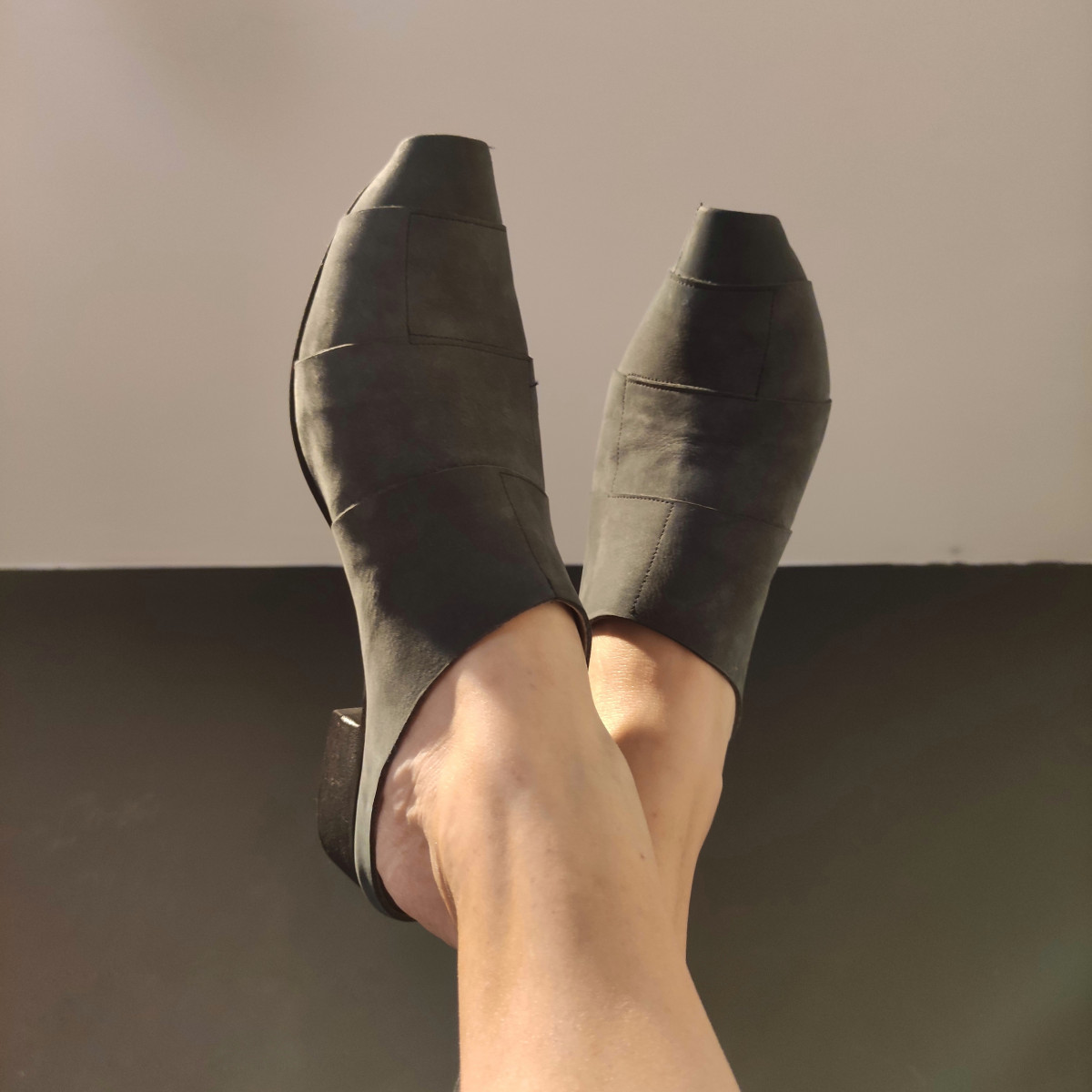 כפכף עם פתח מקדימה, לא רואים בהונות, על עקב בגובה 2.5סמ'. רפידת לטקס מצופה עור.
