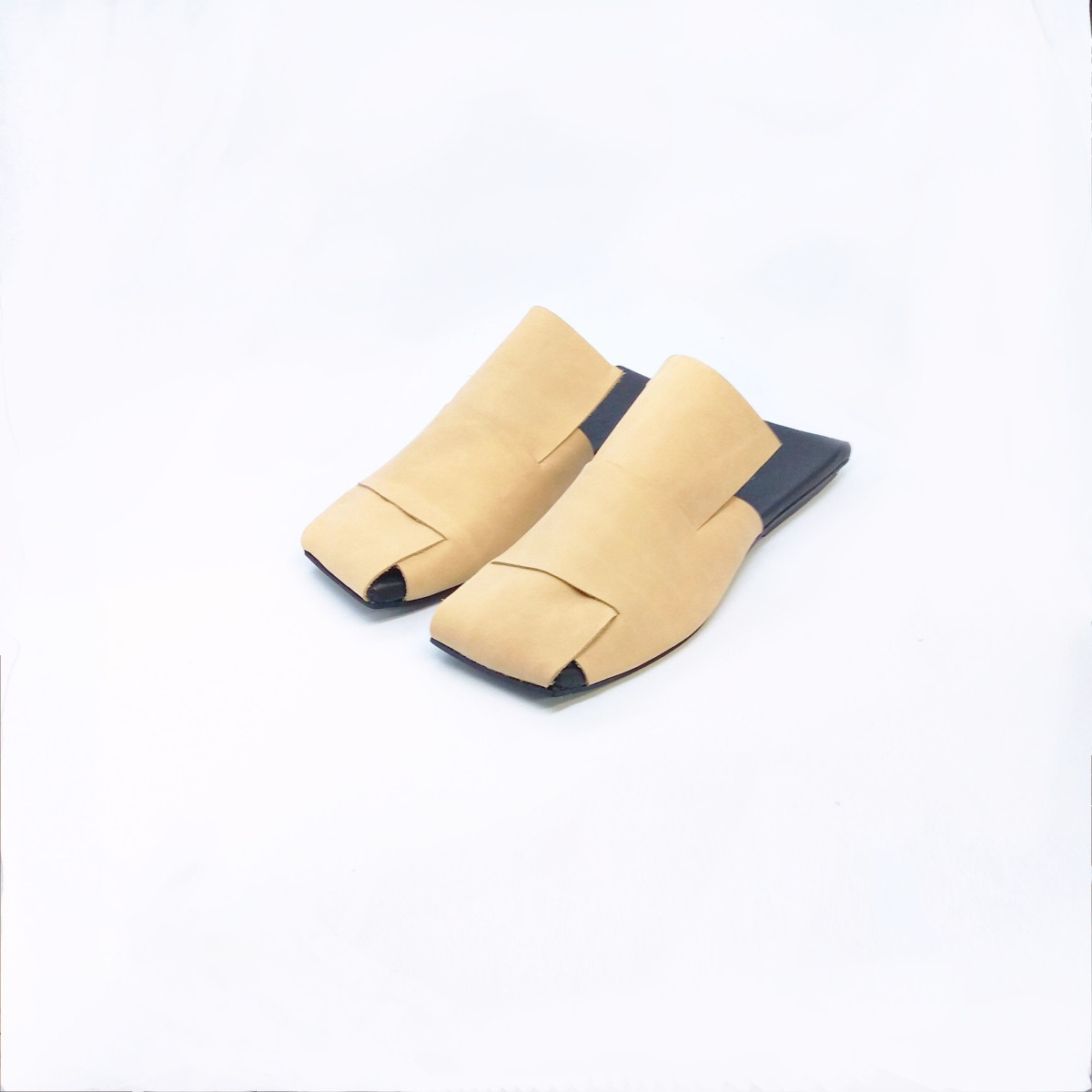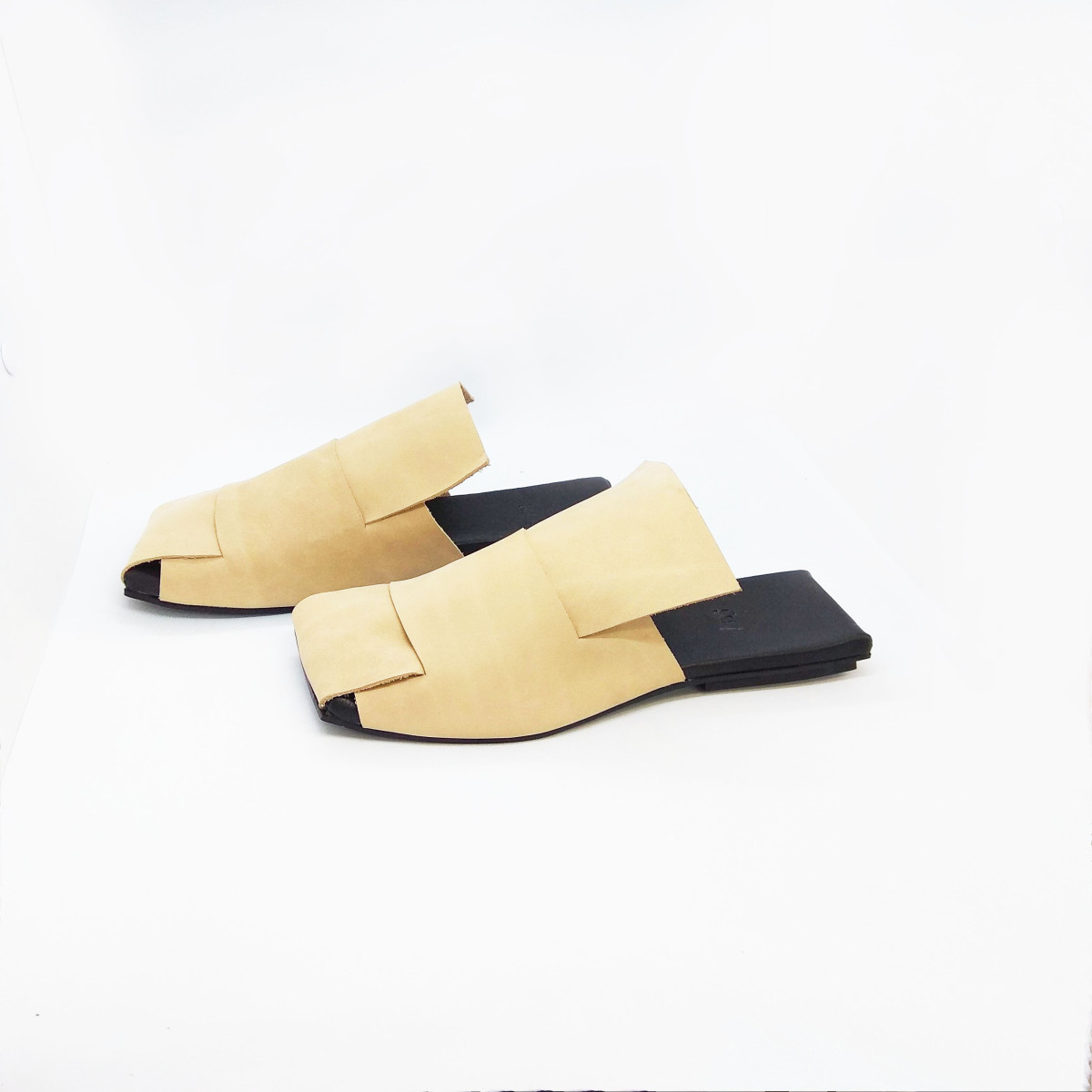 כפכף מרובע שטוח עם קליעה של רצועות רחבות. מידה קטנה.
