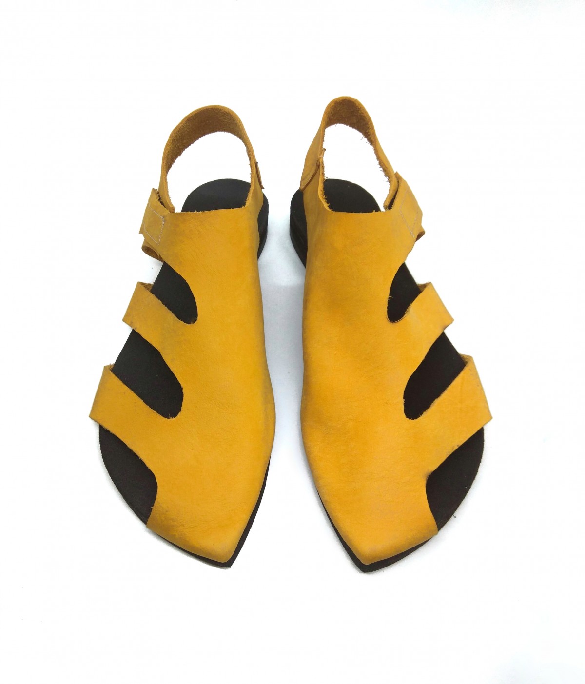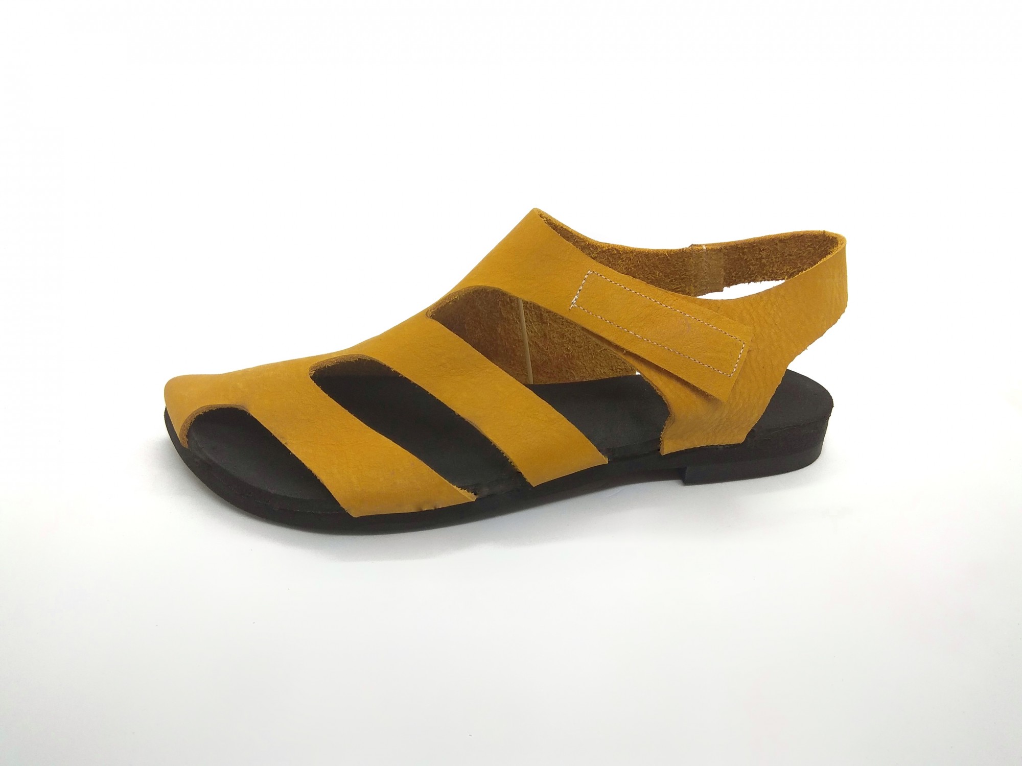סנדל שטוח עם כיסוי לבוהן הגדולה, סגירת סקוץ', רפידת ספוג גומי.