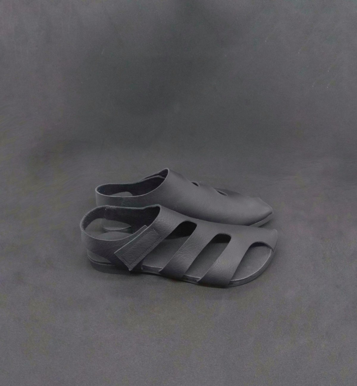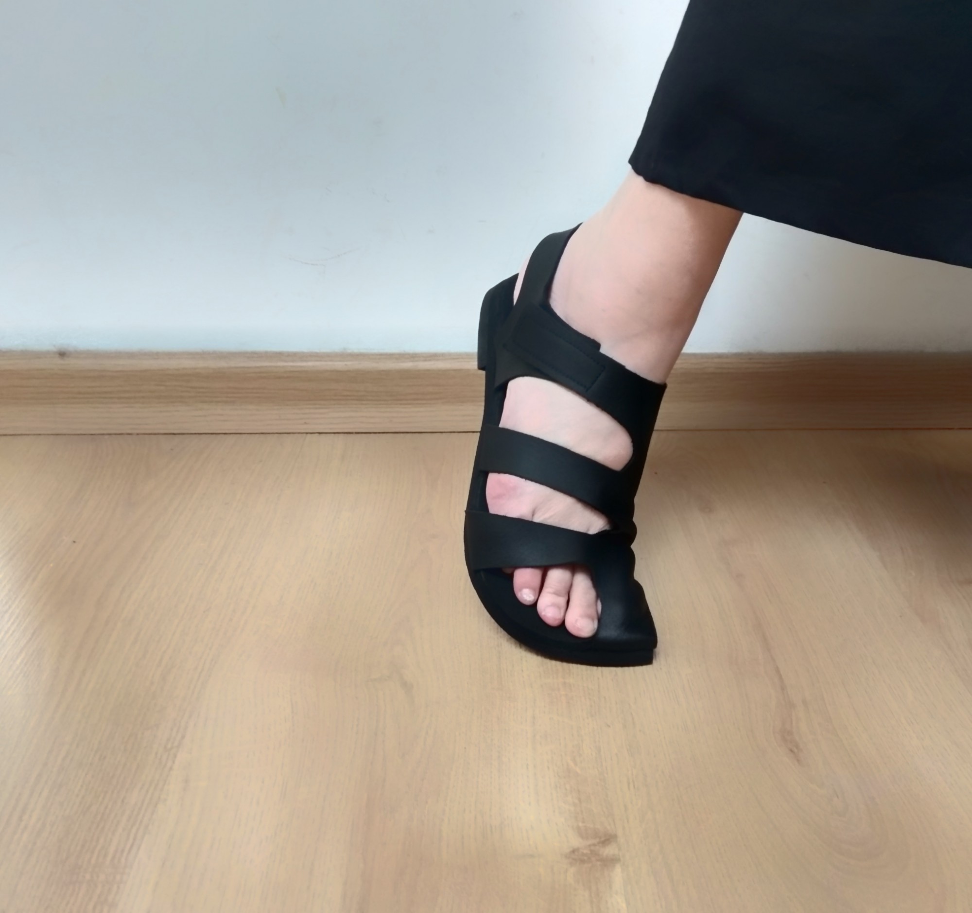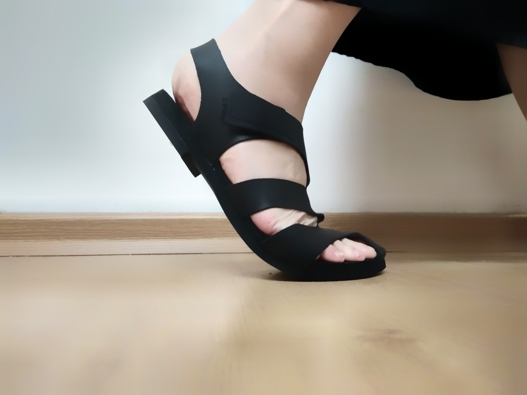 סנדל שטוח עם כיסוי לבוהן הגדולה, סגירת סקוץ', רפידת ספוג גומי.