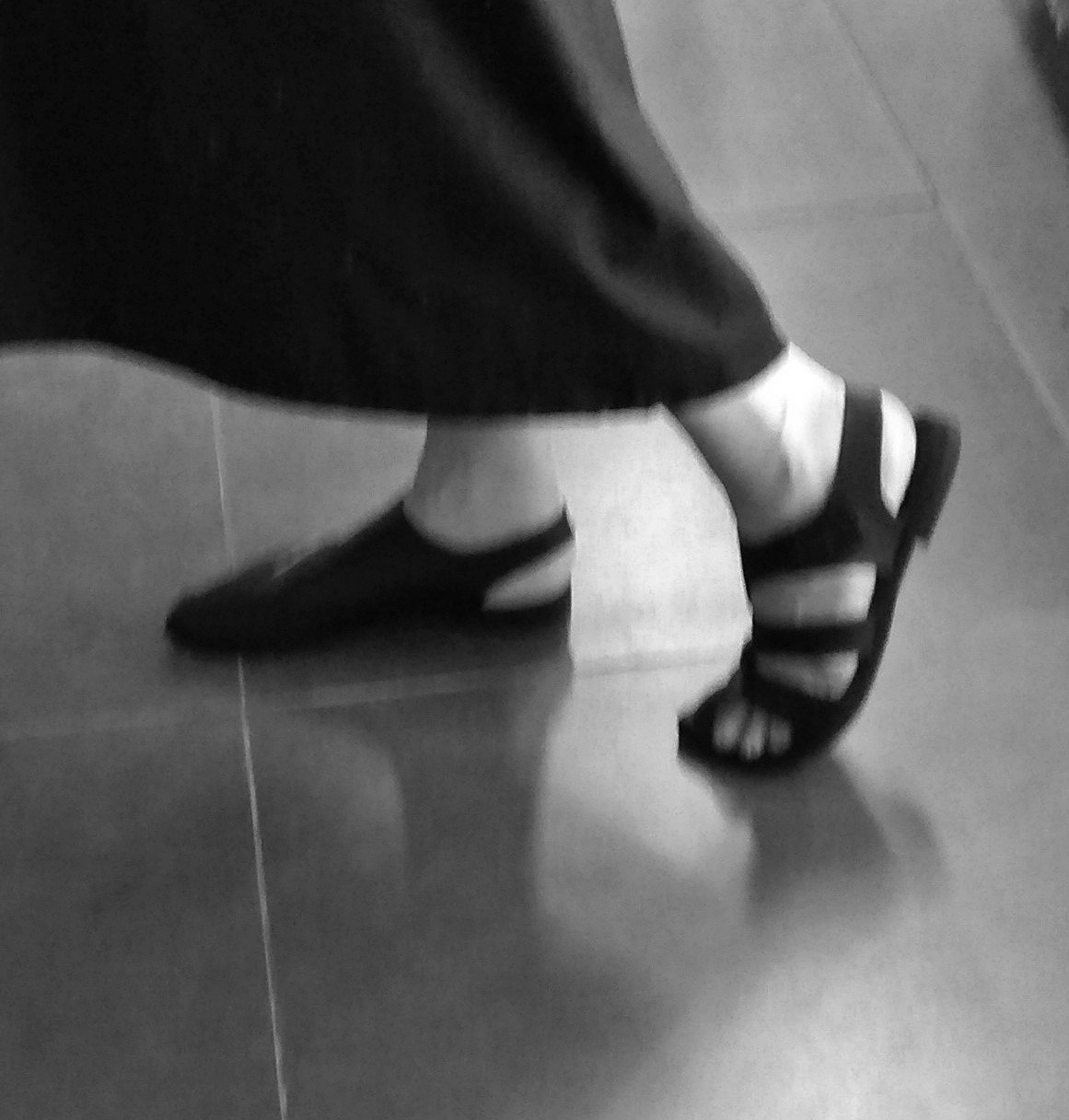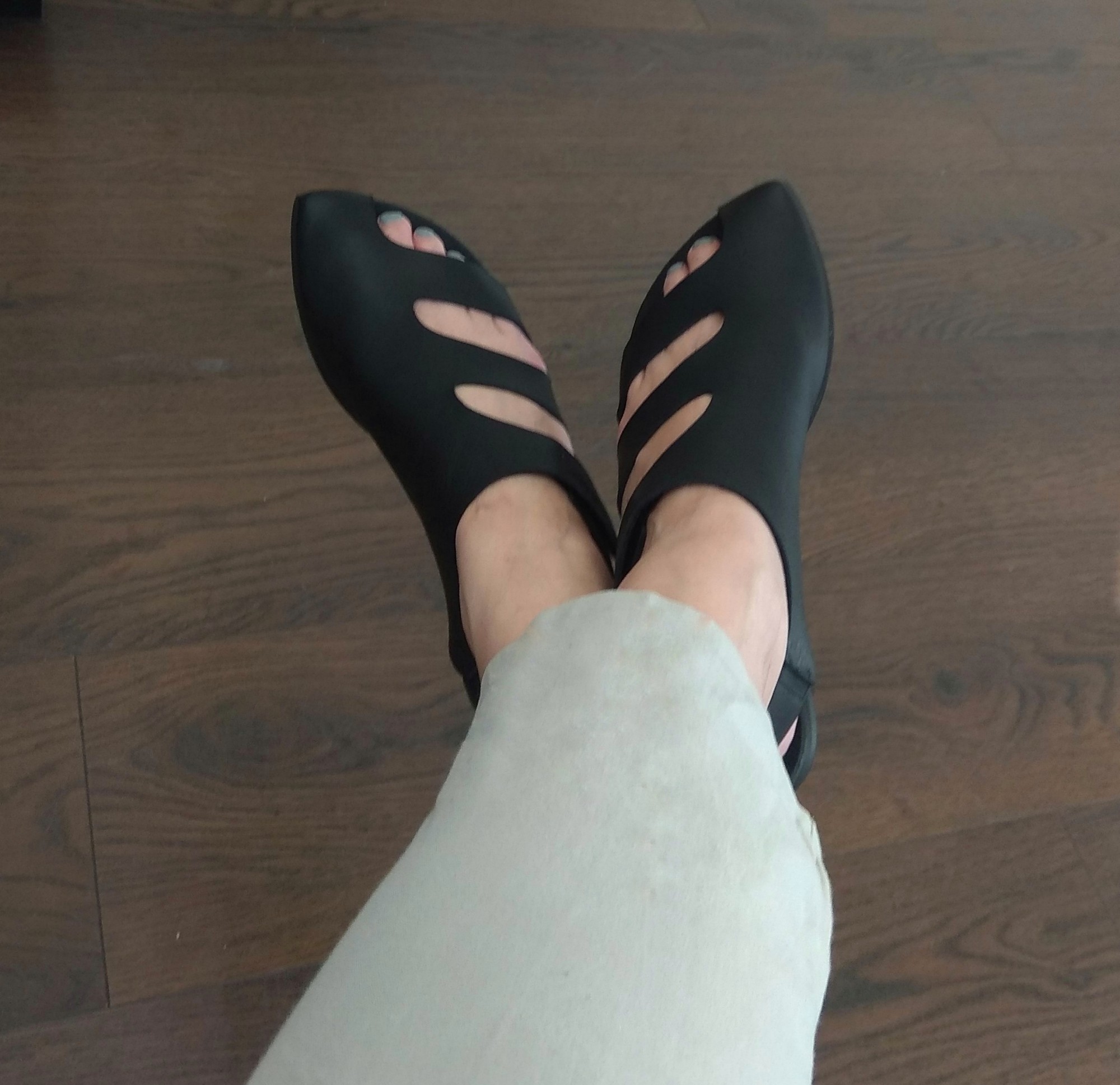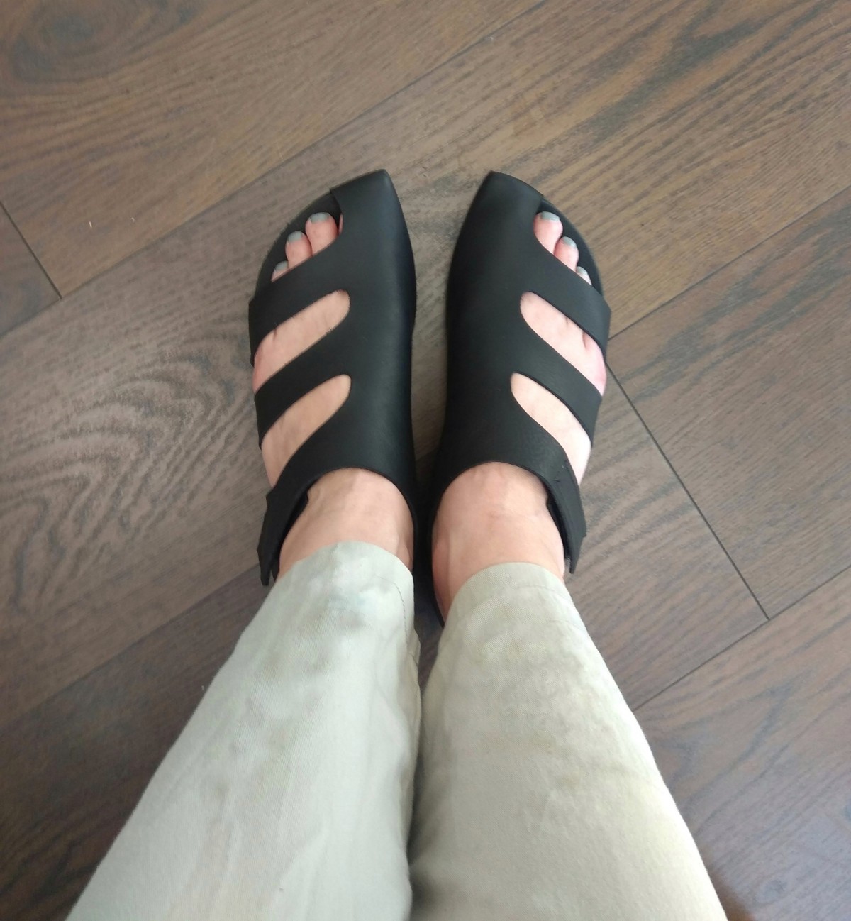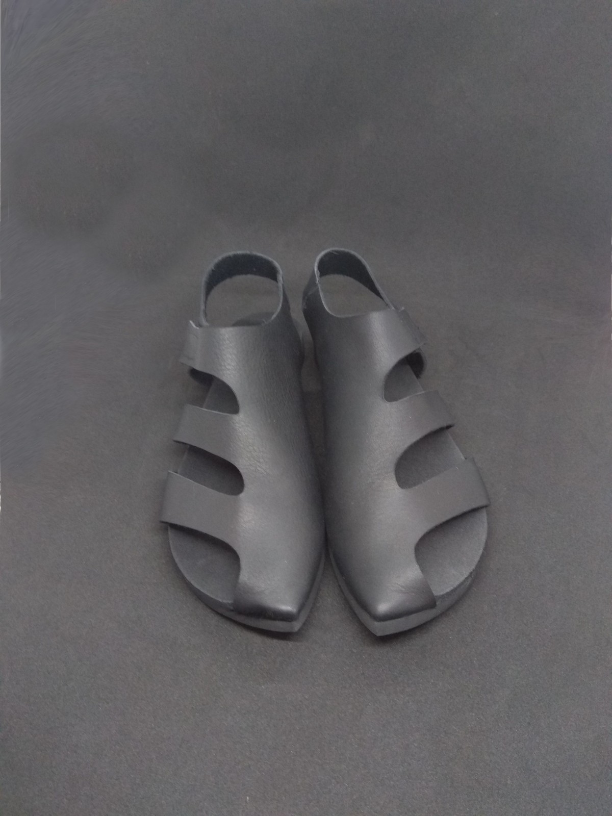 סנדל שטוח עם כיסוי לבוהן הגדולה, סגירת סקוץ', רפידת ספוג גומי.