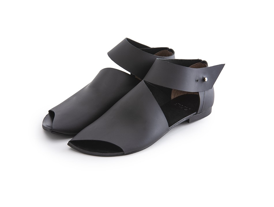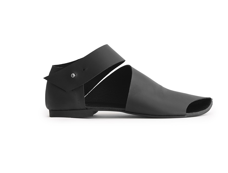 סנדל שטוח שמכסה חלק גדול מכף הרגל. בהונות מציצות. סגירה עם ניט משטרה, אפשר להחליף לסקוץ'. שימו לב! הסוליה היום עבה יותר מאשר הסוליה בתמונות. רפידת ספוג גומי.
