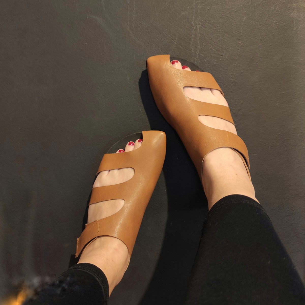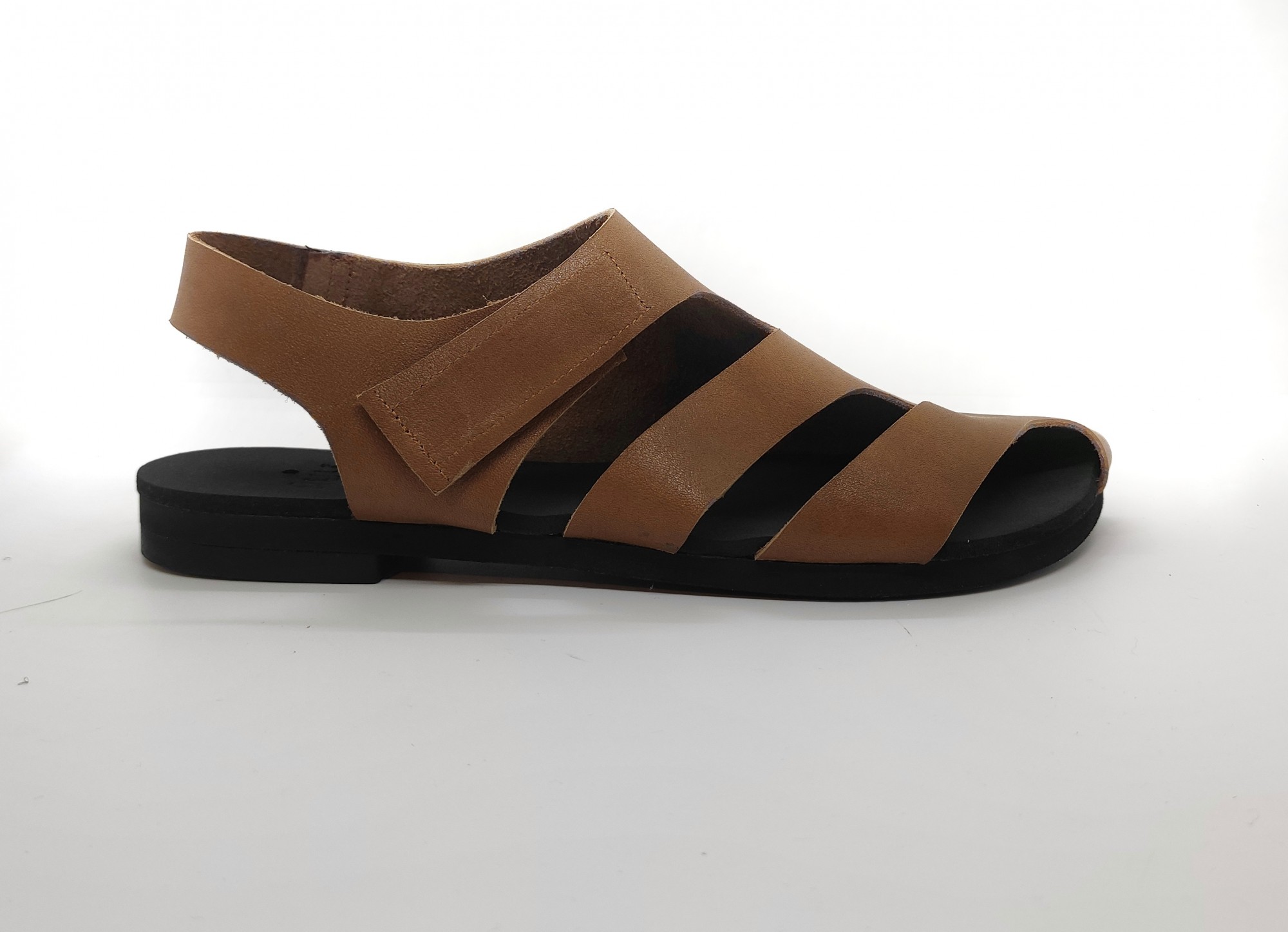 סנדל שטוח עם כיסוי לבוהן הגדולה, סגירת סקוץ', רפידת ספוג גומי.