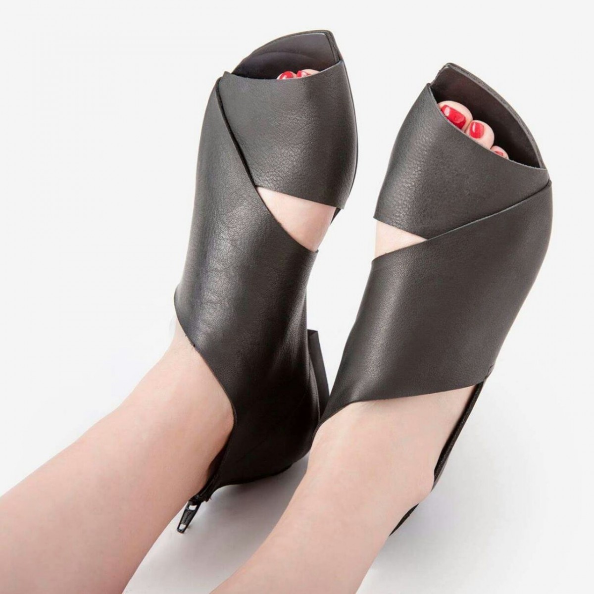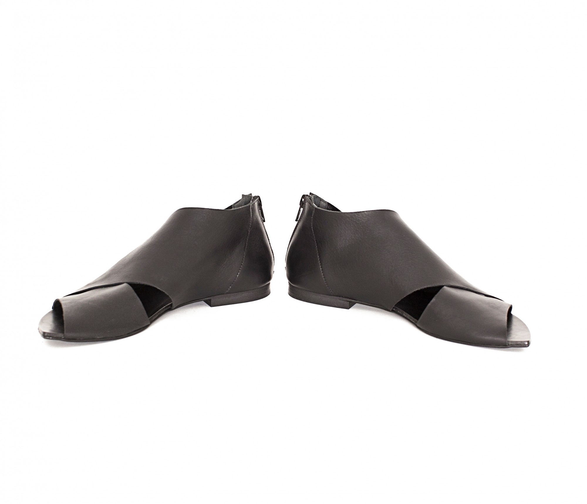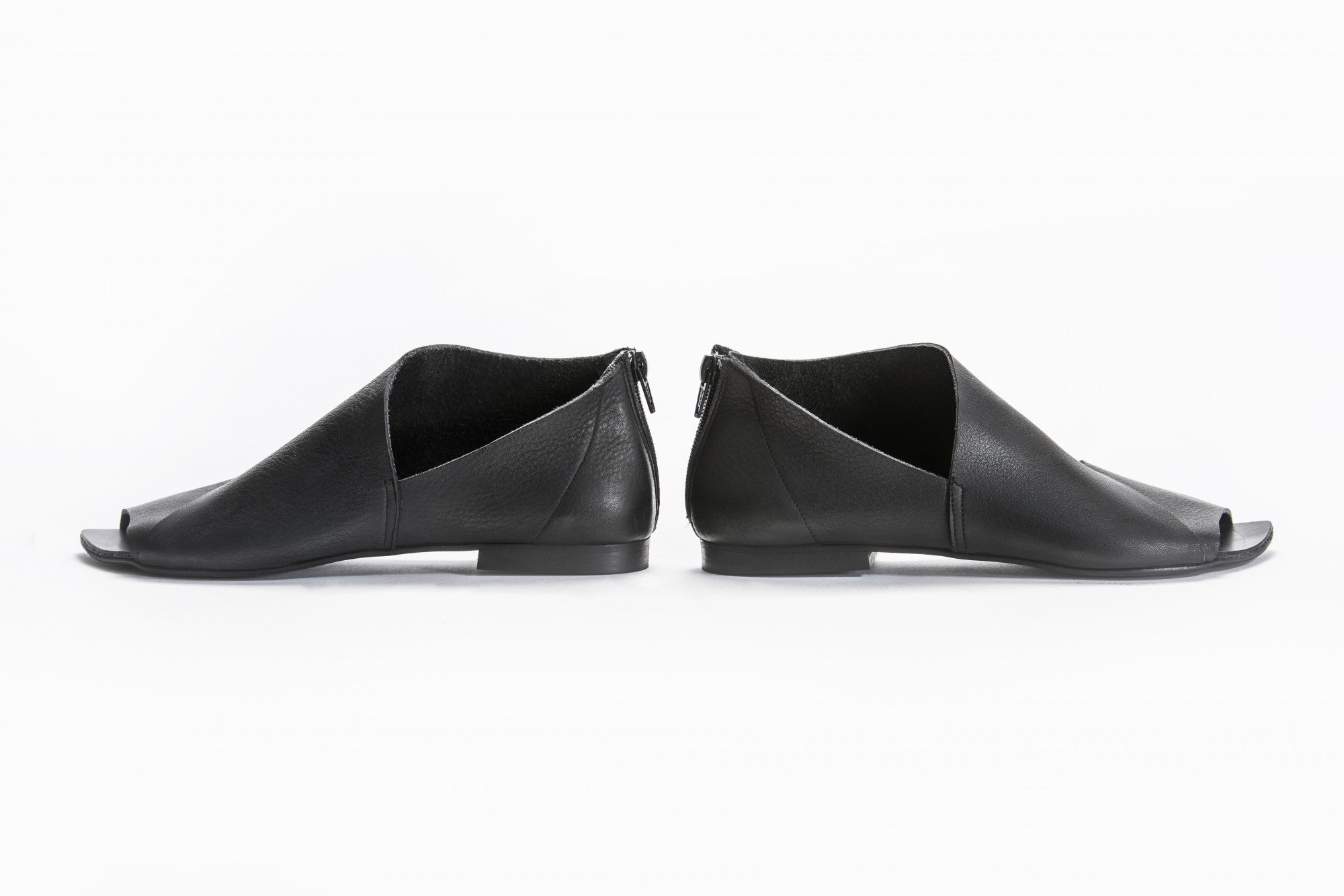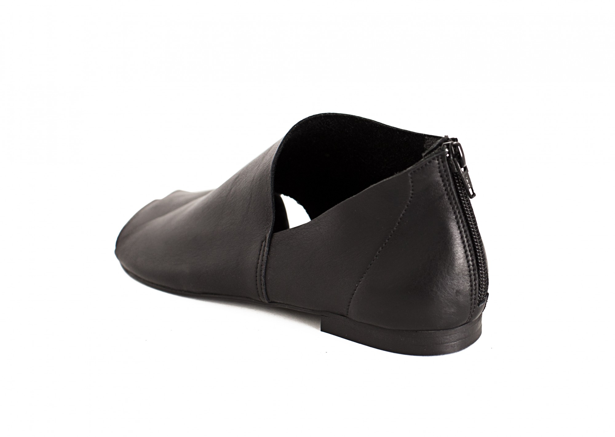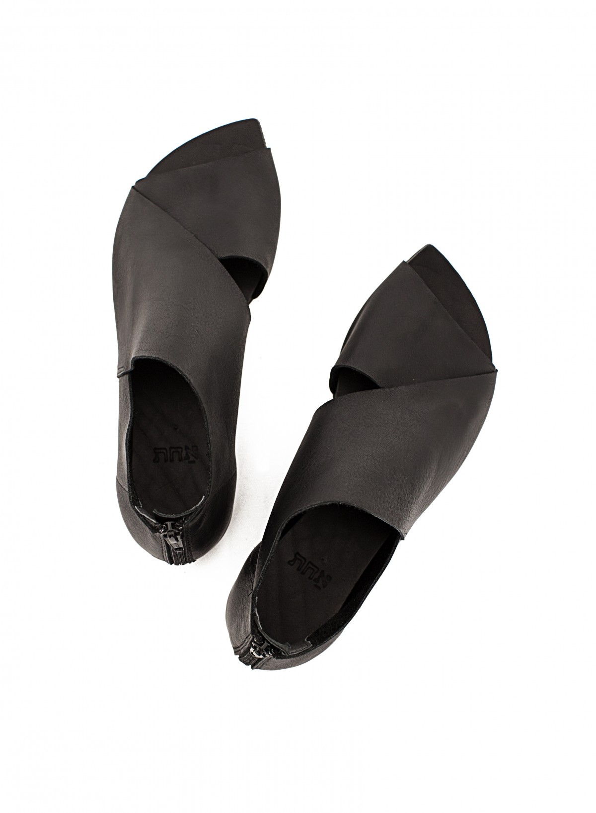 נעל שטוחה, סגורה בעקב ופתוחה מקדימה, עם רוכסן מאחור. רפידת ספוג גומי. שימו לב: הסוליה עבה יותר מאשר בתמונות.