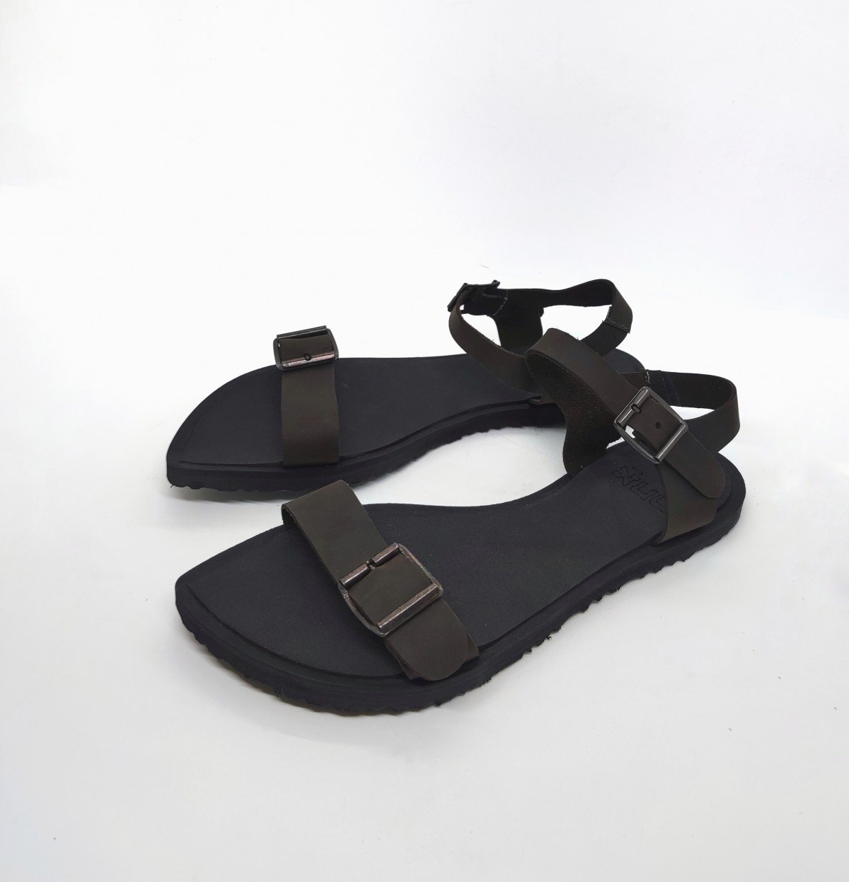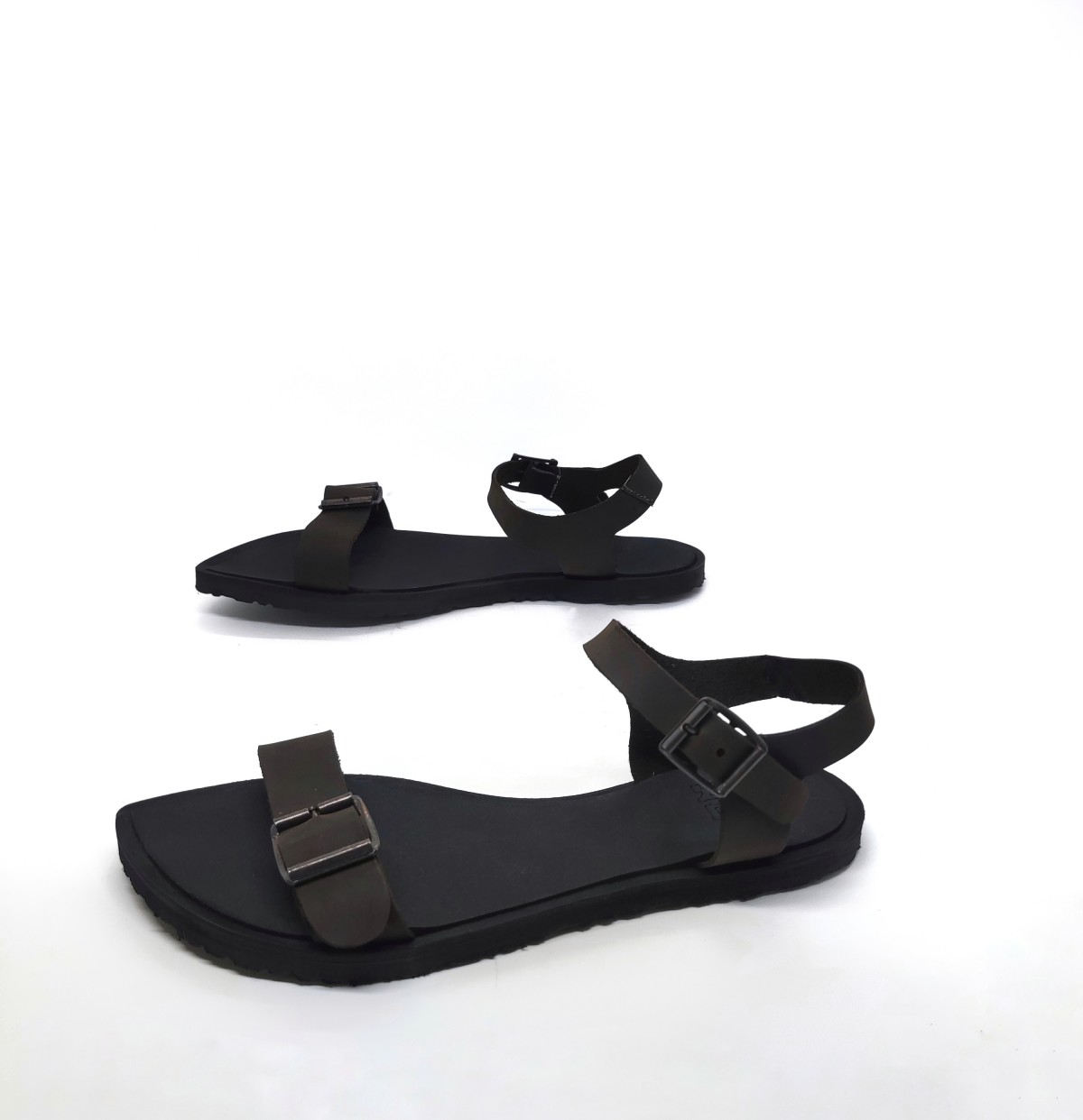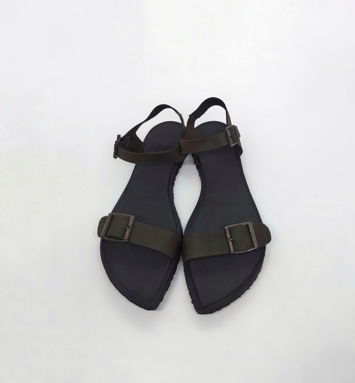 סנדל רצועות שטוח עם אבזמים, רפידת ספוג גומי, עור נובוק.