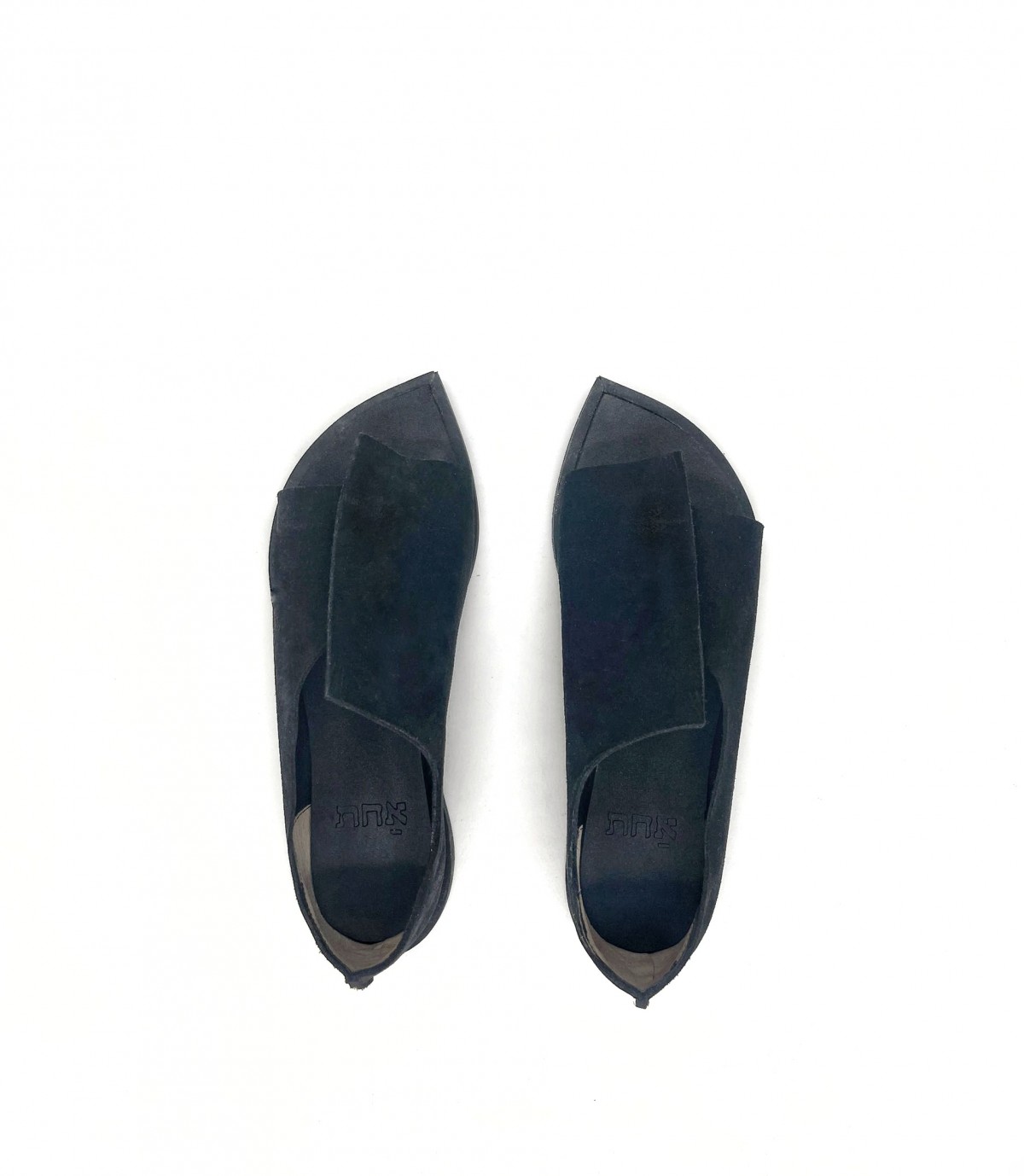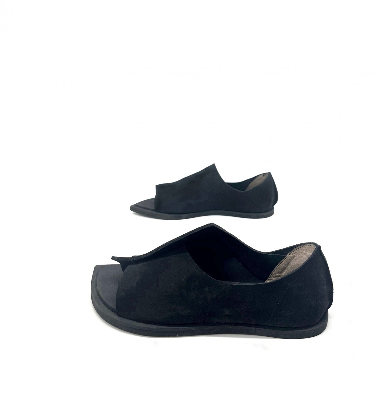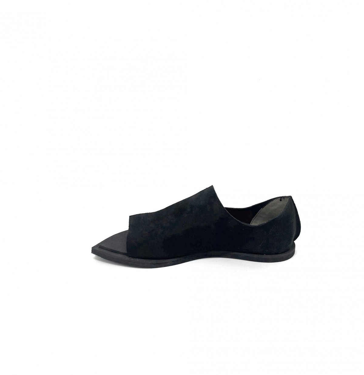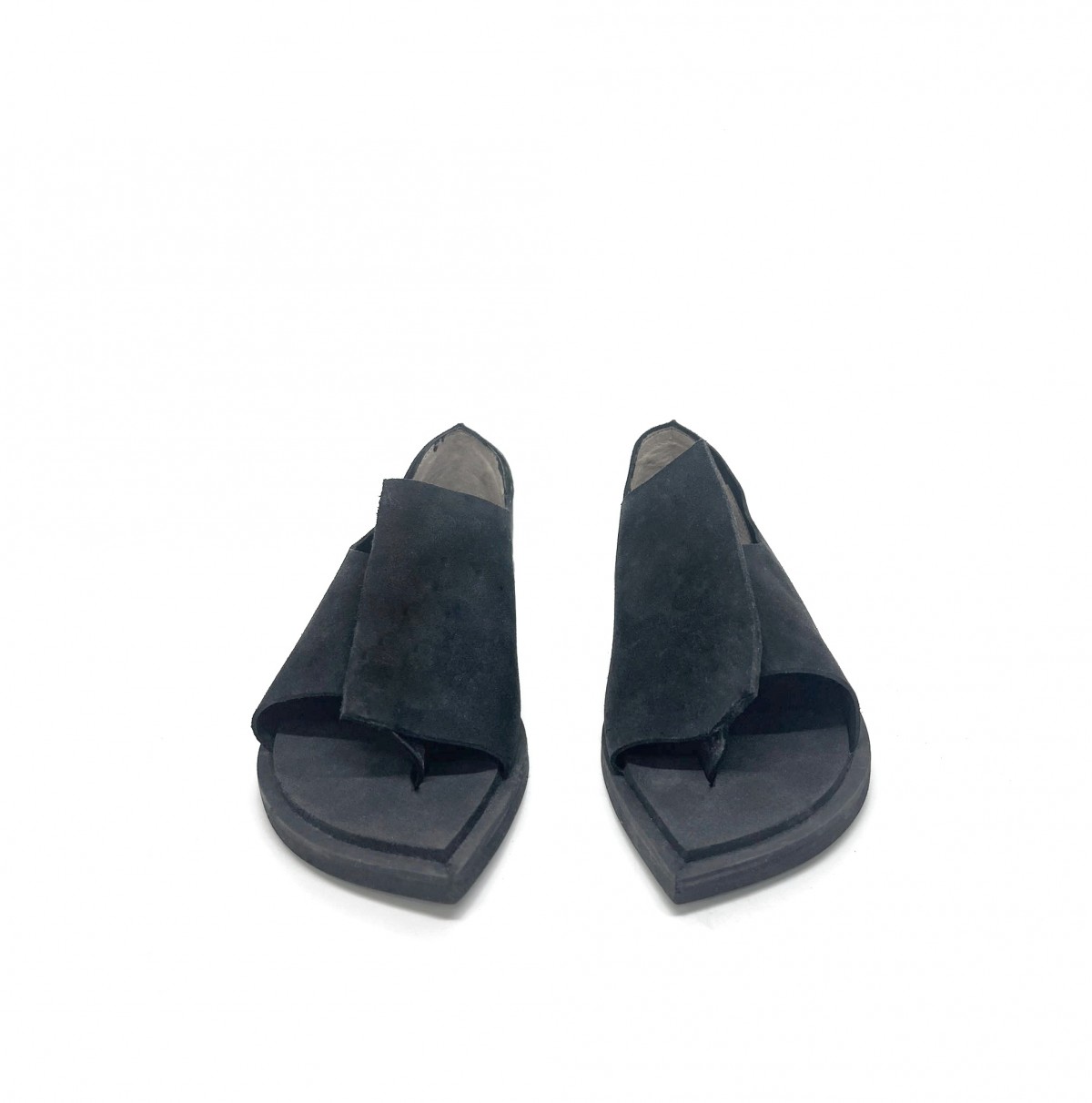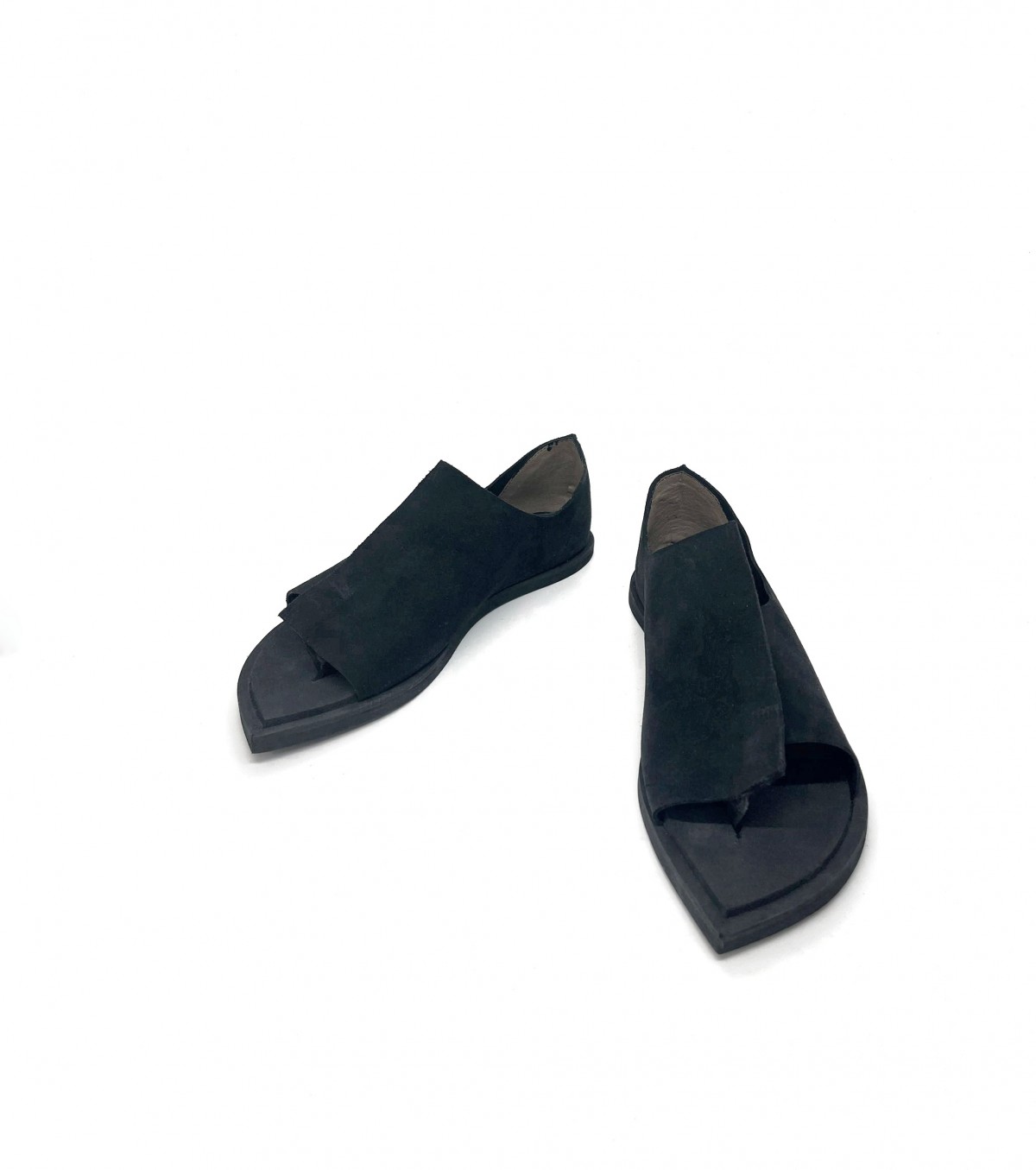 סנדל אצבע שטוח סגור בעקב, ללא סגירה, רפידת ספוג גומי, עור נובוק במראה קטיפתי
