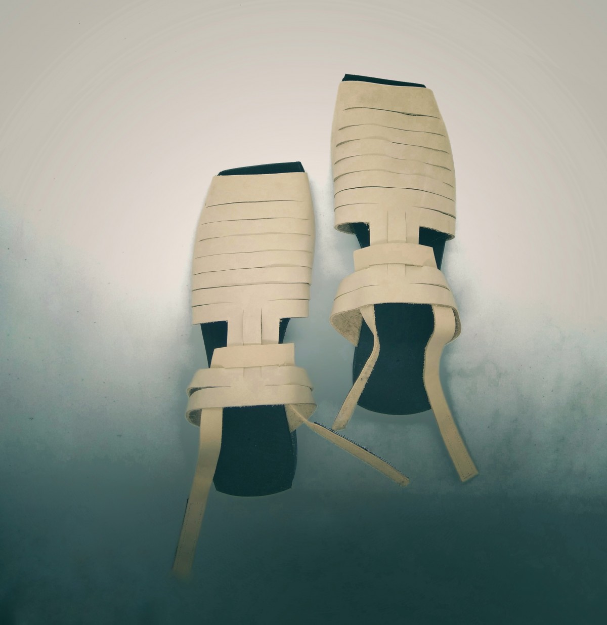 סנדל מרובע שטוח, שהופך לכפכף בשליפת רצועה. פתוח מקדימה אך לא רואים אצבעות. סגירת סקוץ'. רפידת ספוג גומי.