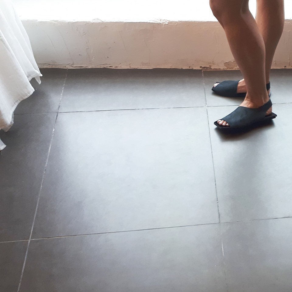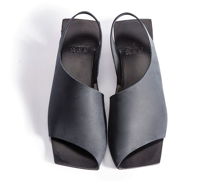 סנדל מרובע שטוח ללא סגירה, רפידת ספוג גומי, עור נובוק